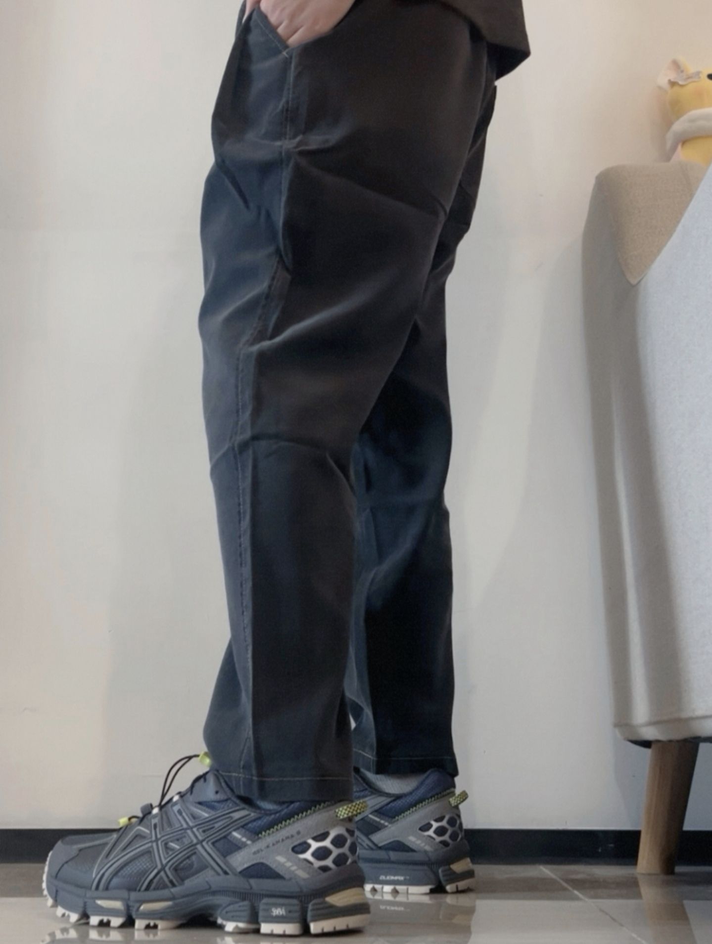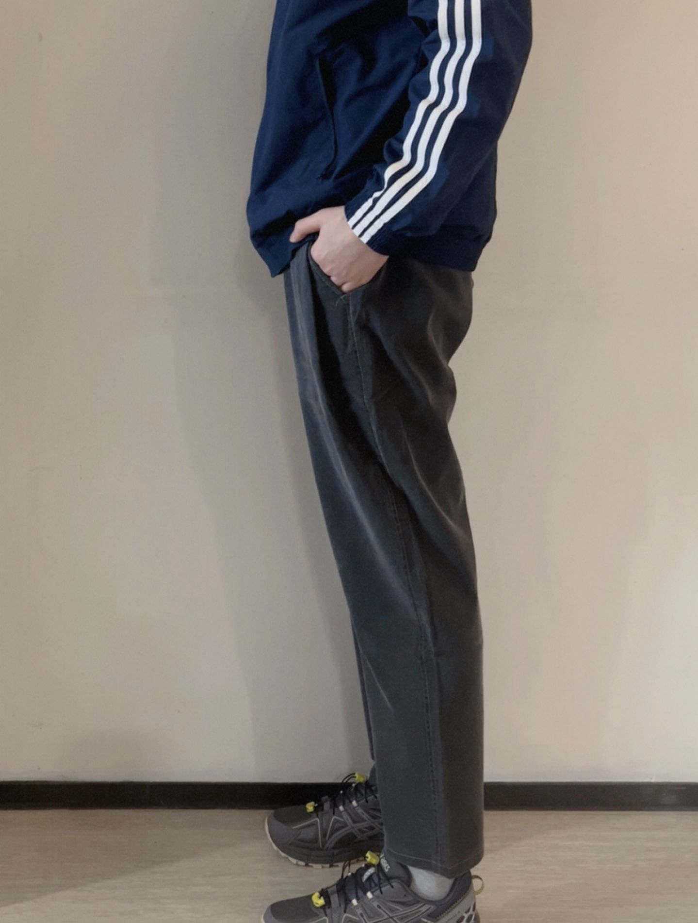 整体深色系,阿迪新款+复古哈伦裤+kahana8复古版,进可上山运动 退可通勤走亲访友。