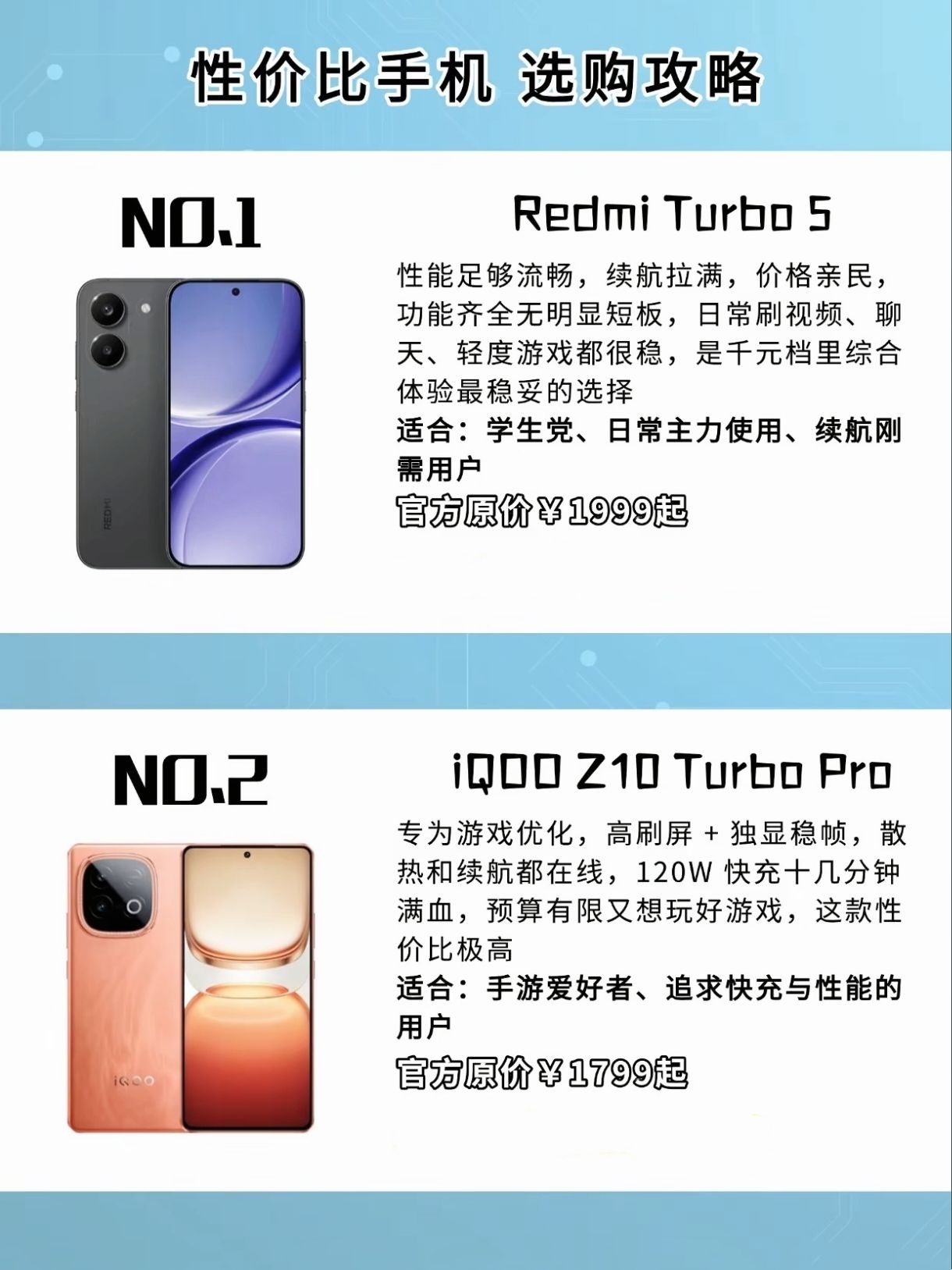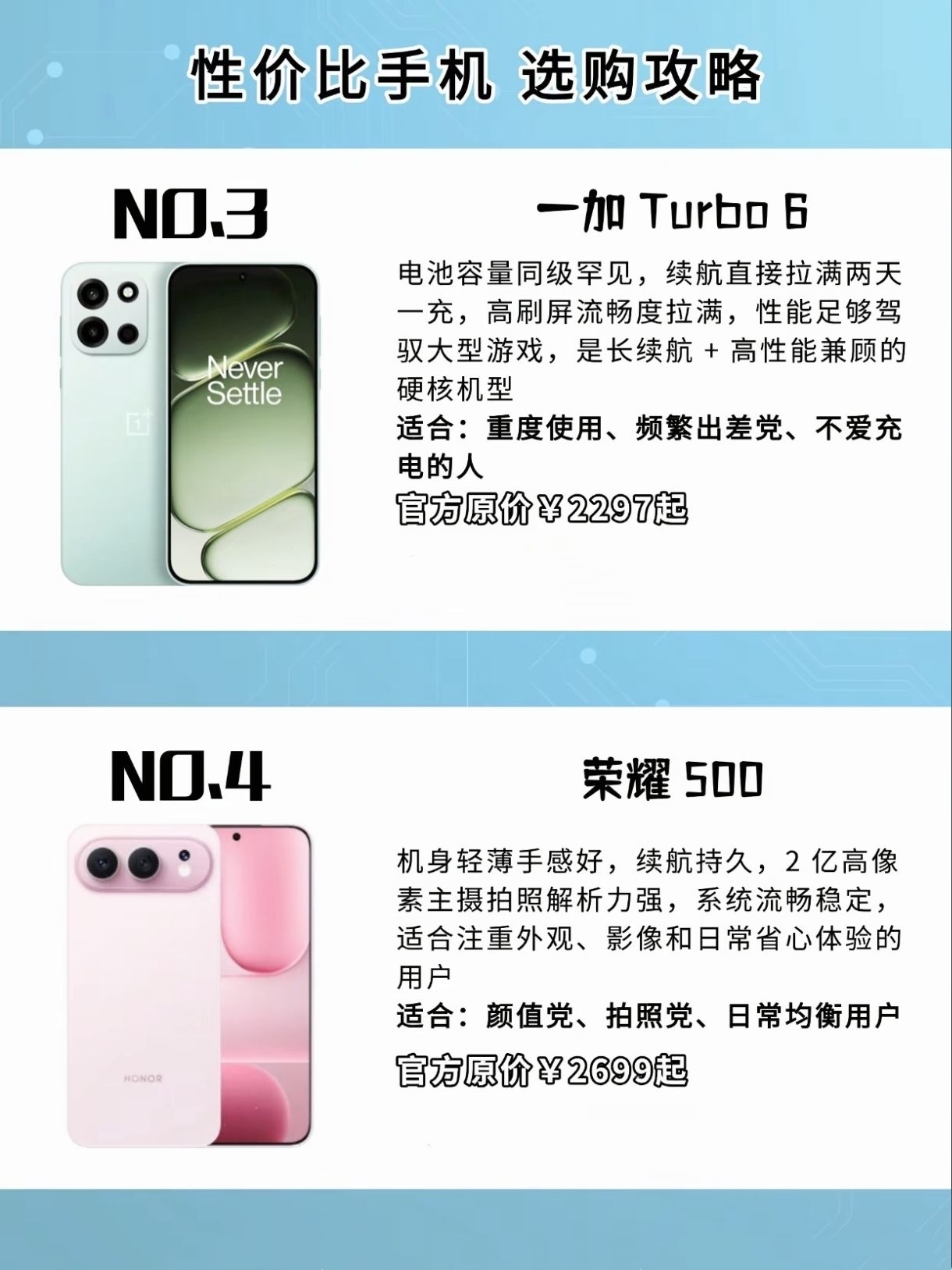 给最近想换手机的友友一个参考。这个价位段仔细看了一圈,发现有几款确实很顶。 Redmi Turbo 5续航和流畅度很稳,属于无短板的均衡款。iQOO Z10 Turbo Pro打游戏体验拉满,独显芯片和120W快充是亮点。重度使用或常出门的可以看看一加Turbo 6,电池太顶了。喜欢拍照和颜值的,荣耀500的2亿像素和轻薄手感不错。 如果既要游戏又要拍照,iQOO Z11 Turbo的双芯和百...