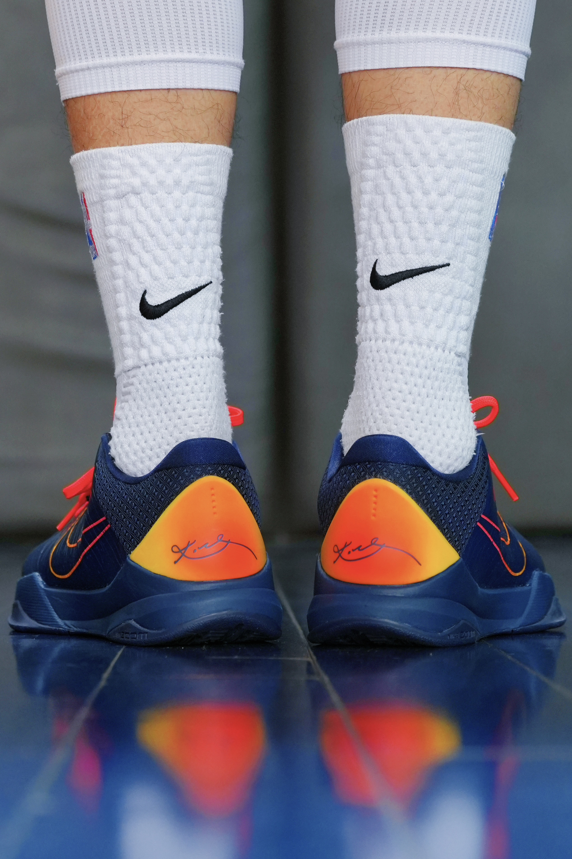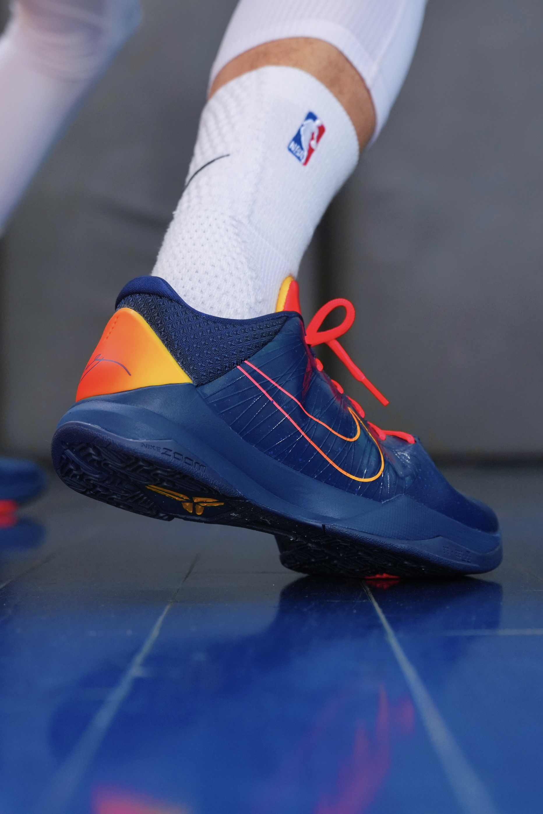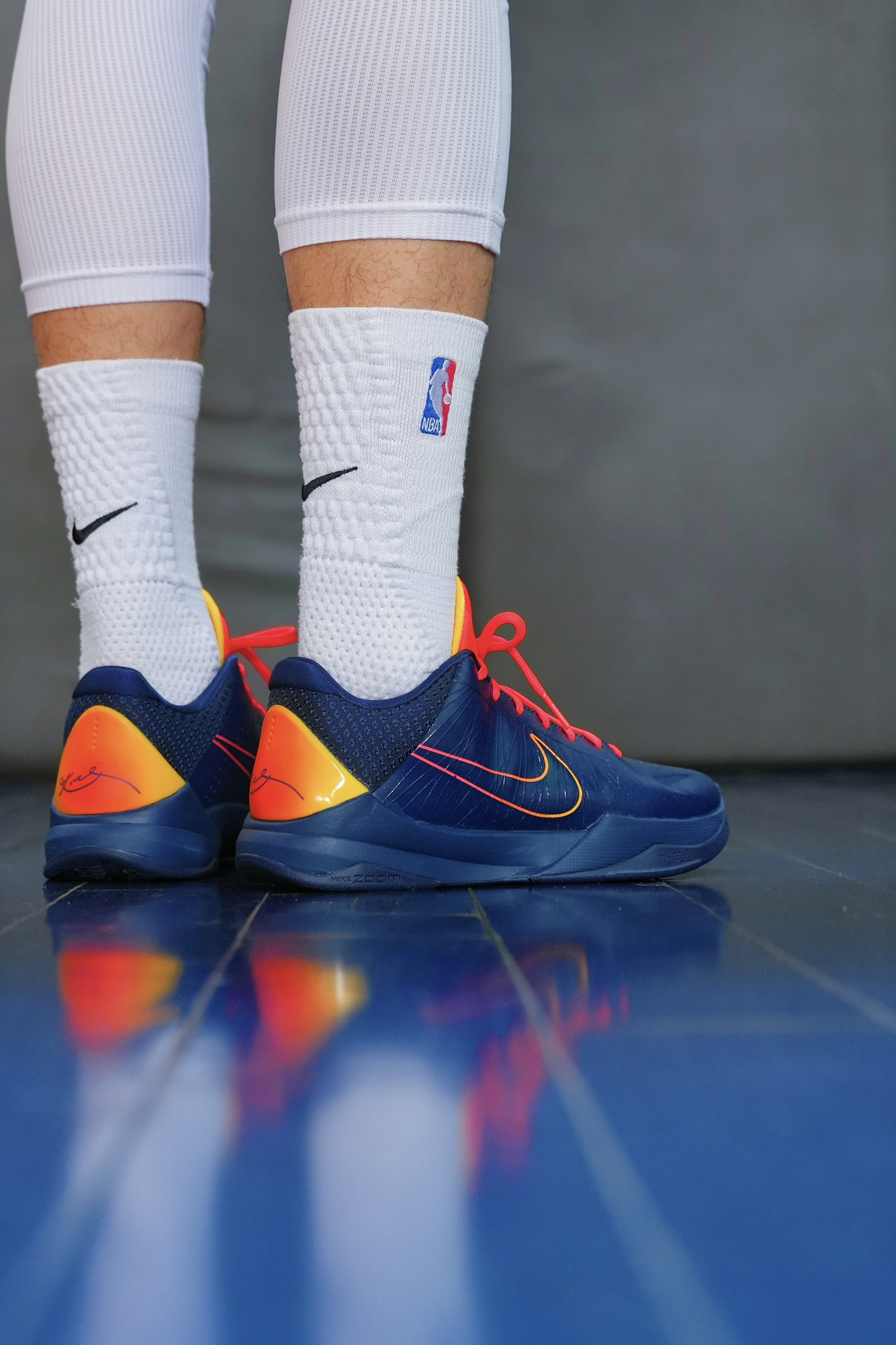 科比五的这双克拉克配色最近有部分黄金码有了小幅降价,如果有准备入手自穿的兄弟我是很推荐的,上脚的颜值是真的很帅,后面的TPU也很有霓虹落日的感觉。 关于尺码我建议正常脚瘦脚都正常选,到手之后立马换薄鞋垫!大宽脚的兄弟至少大一码参考。
