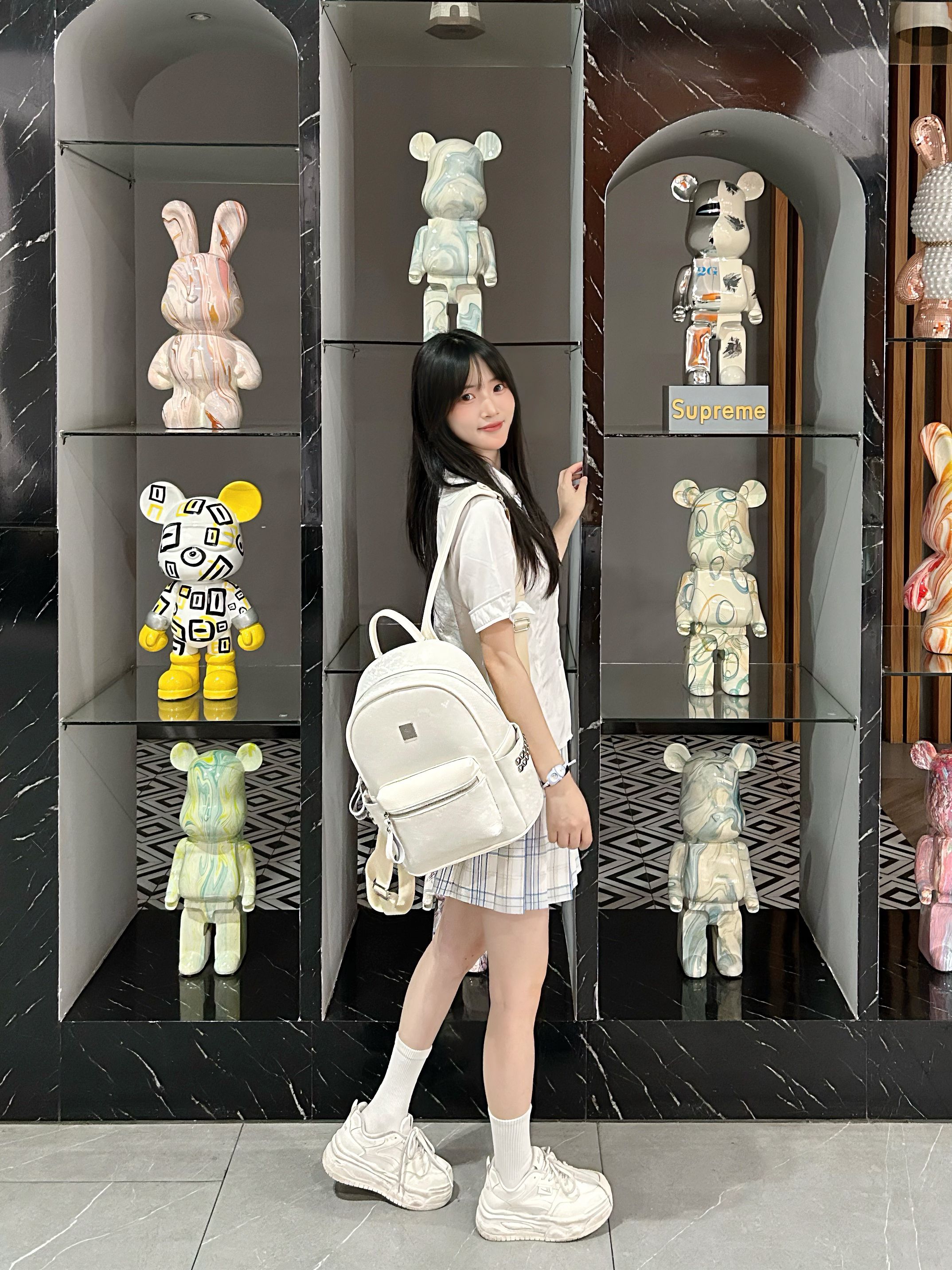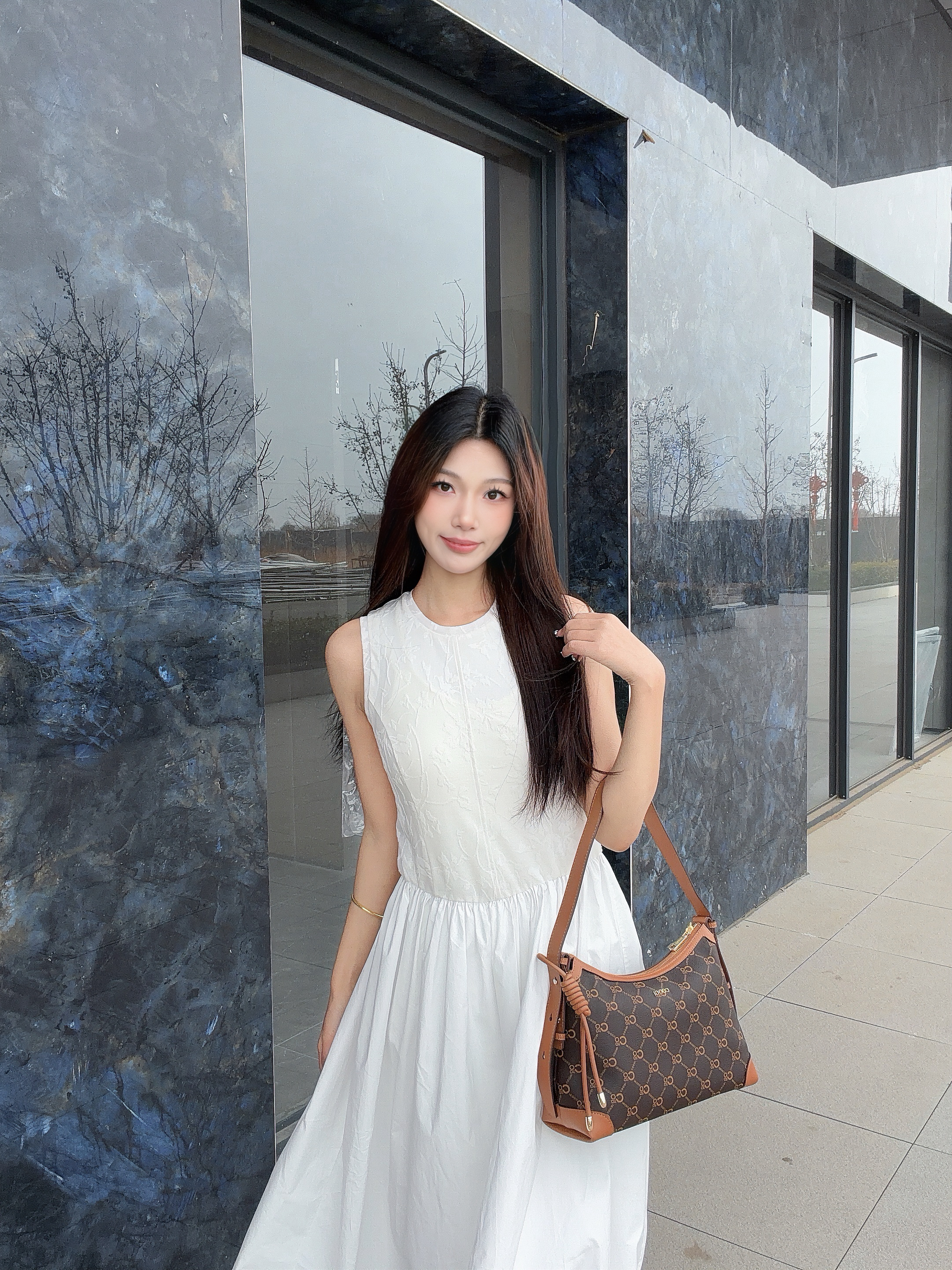 出门穿一身小白裙真的好温柔呀 搭配COOGI包包 太有气质啦 回头率超高~