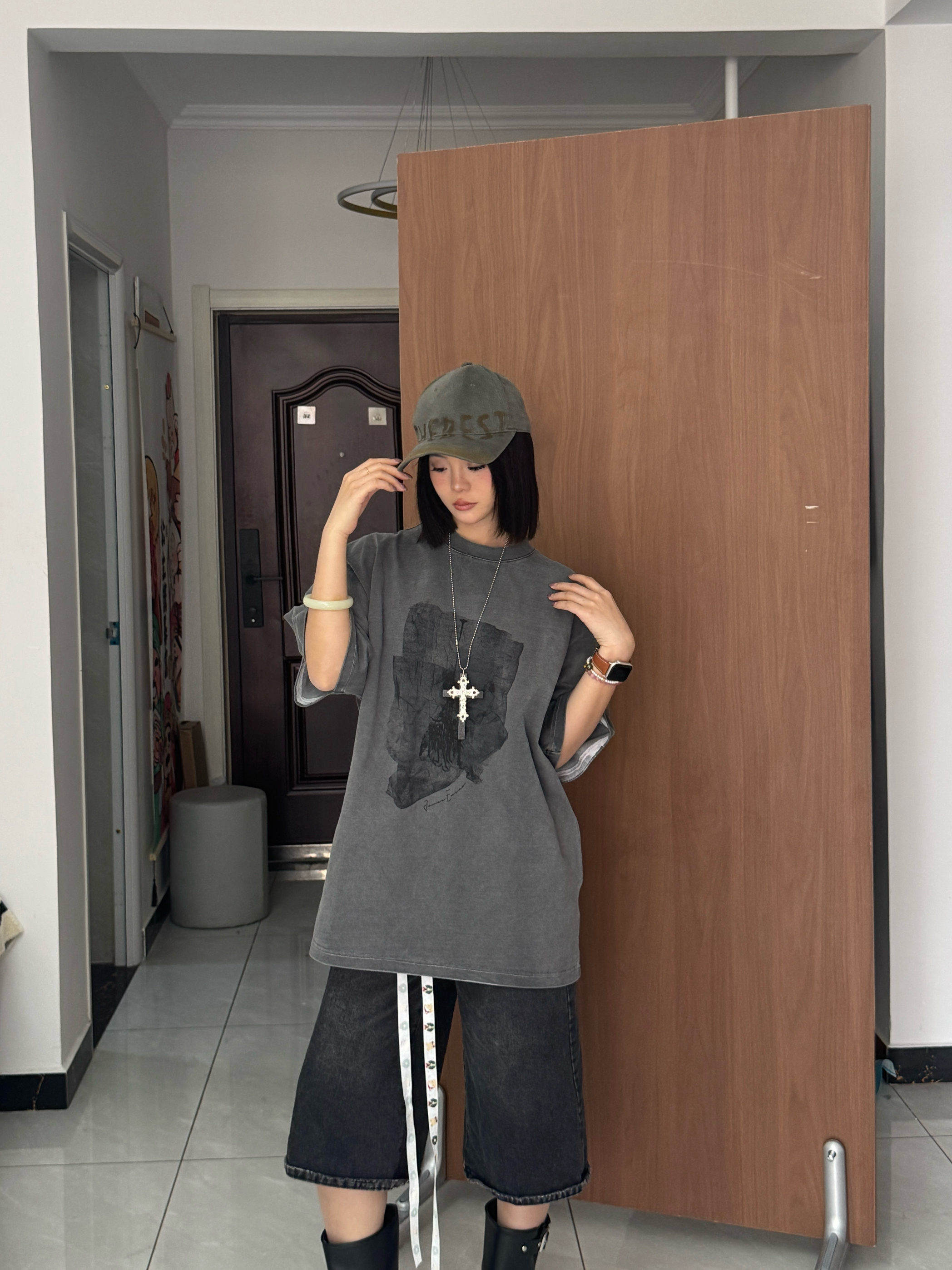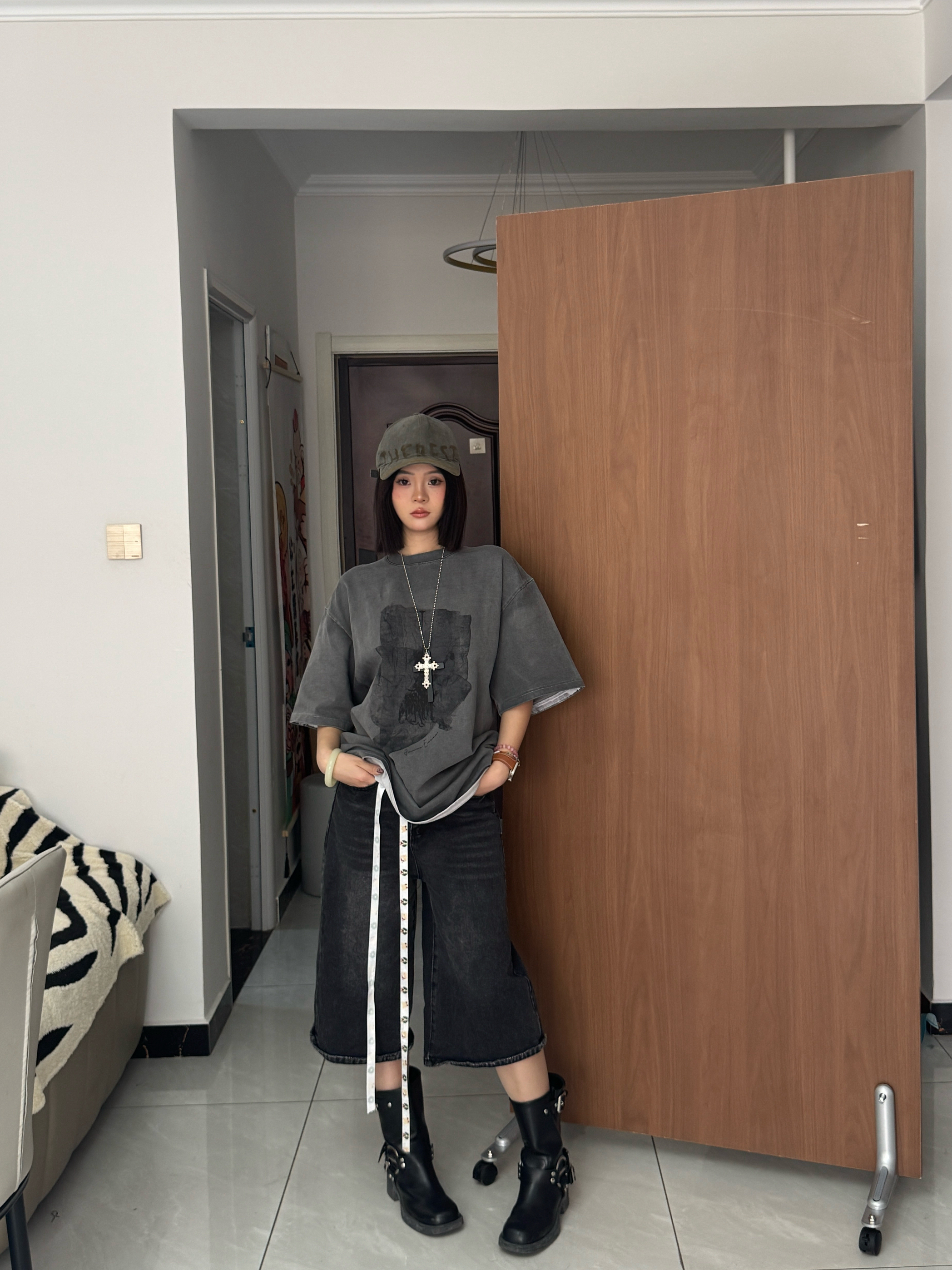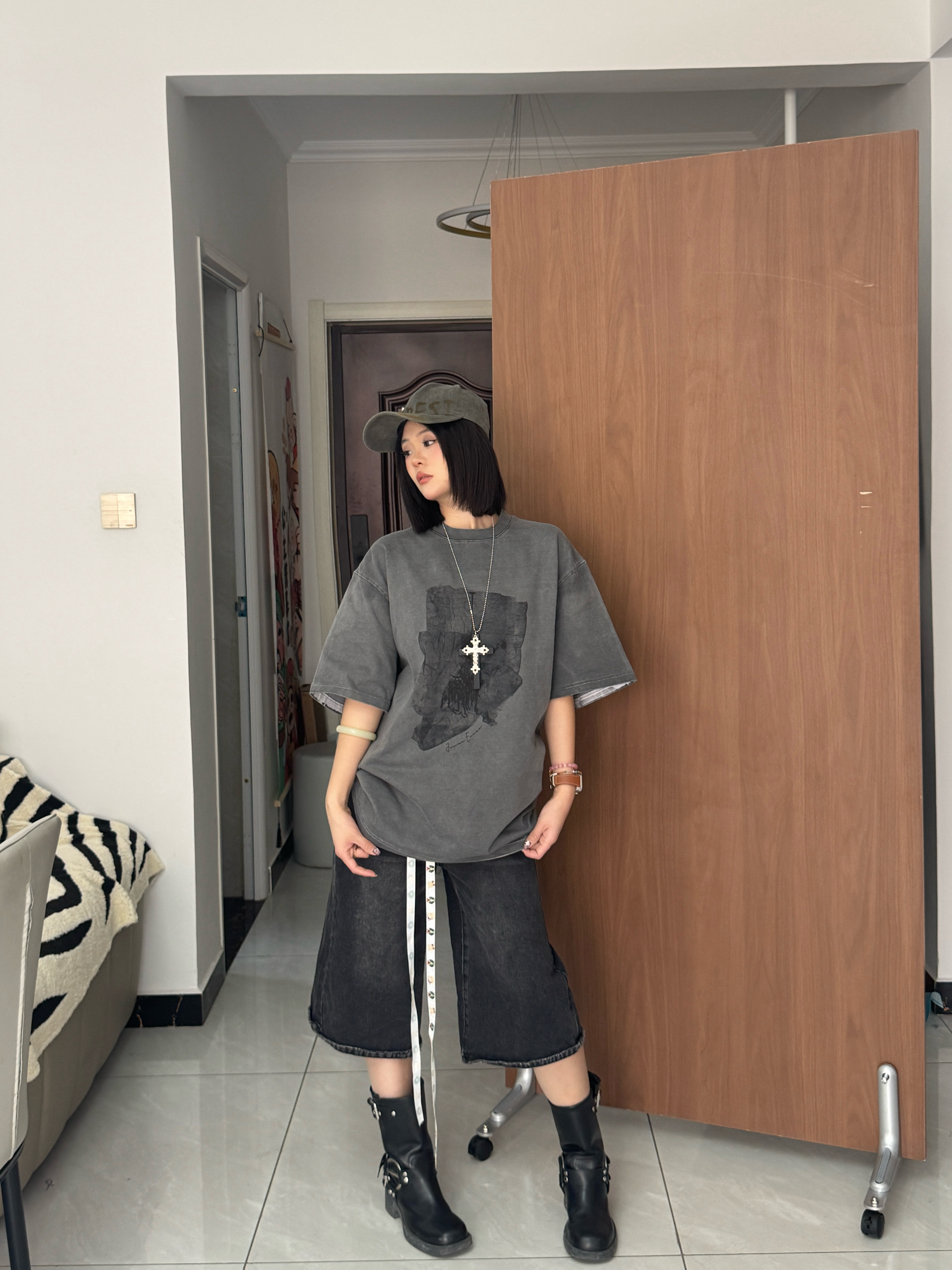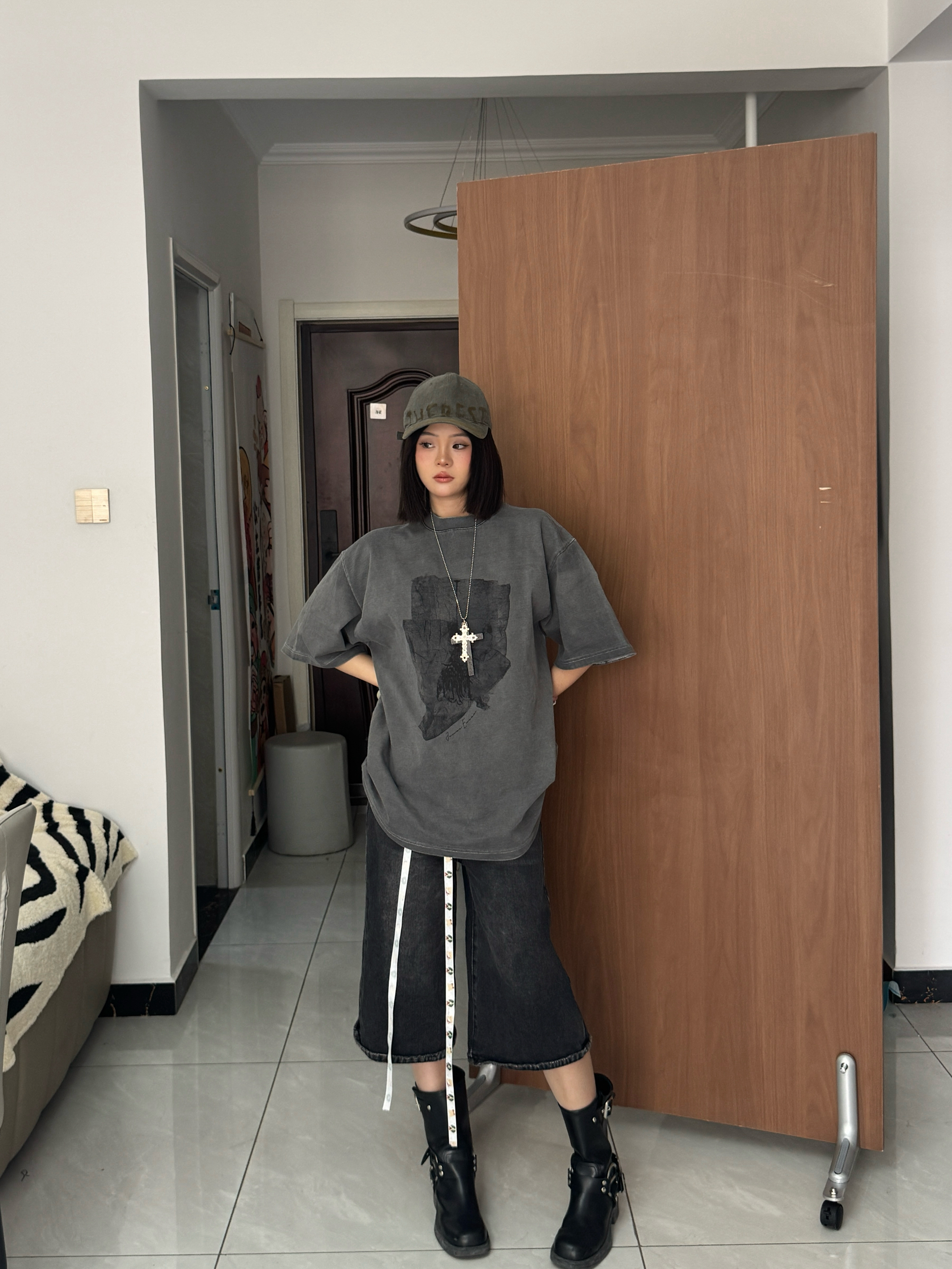 今年真的狠狠沉迷复古街头风!这件做旧水洗灰廓形T恤直接封神✨ 高街版型对身材包容度拉满,落肩设计弱化肩线,微胖姐妹也能轻松穿出oversize慵懒感。 做旧印花质感在线,搭配牛仔中裤和马丁靴,酷飒氛围感直接拿捏。不管是日常出街、打卡潮店,还是去看livehouse都巨出片📸 男女同款的设定,和对象搭情侣装也超有格调。 穿搭不用费脑,一件质感T恤就能解锁N种潮酷穿搭!