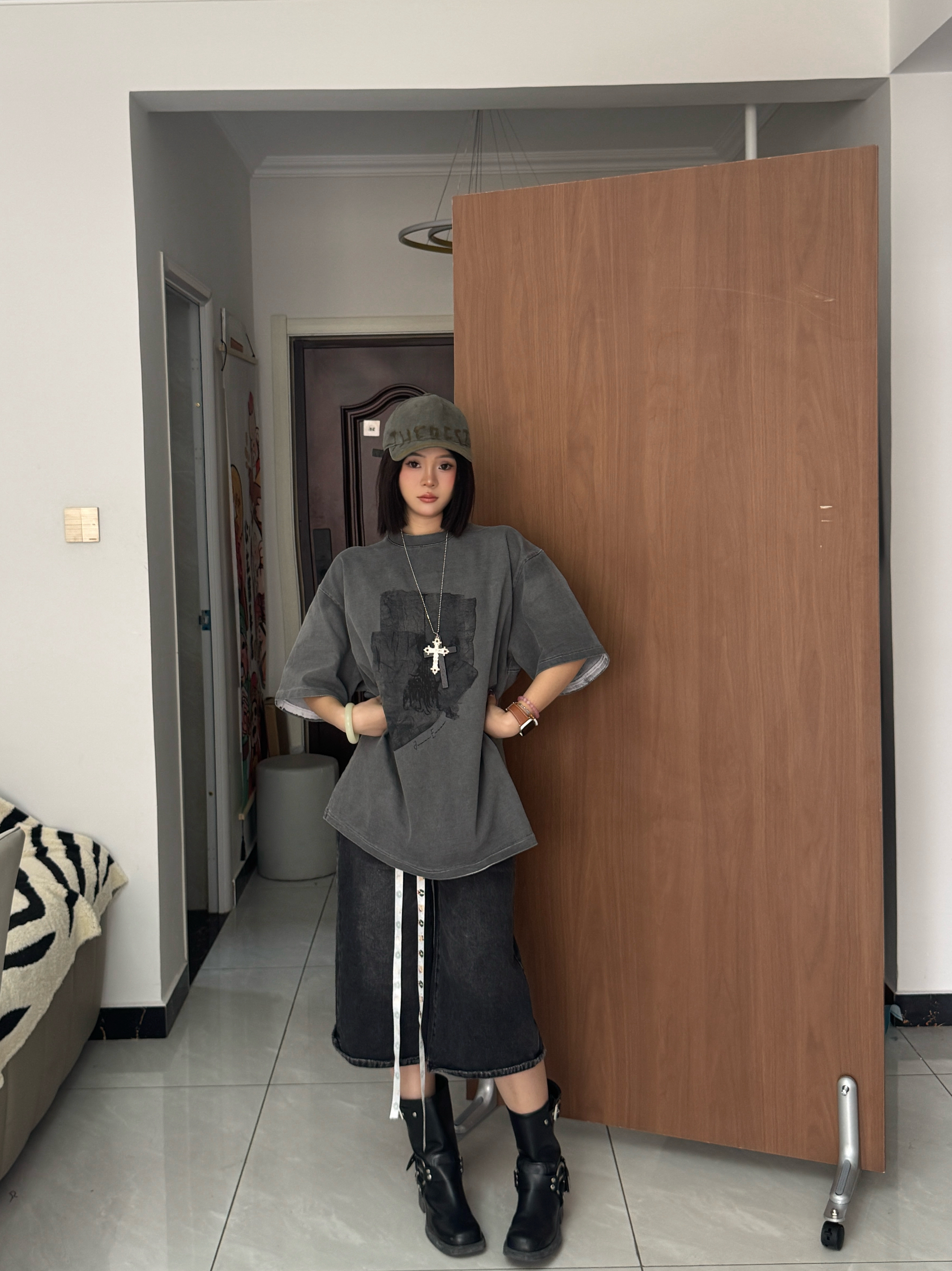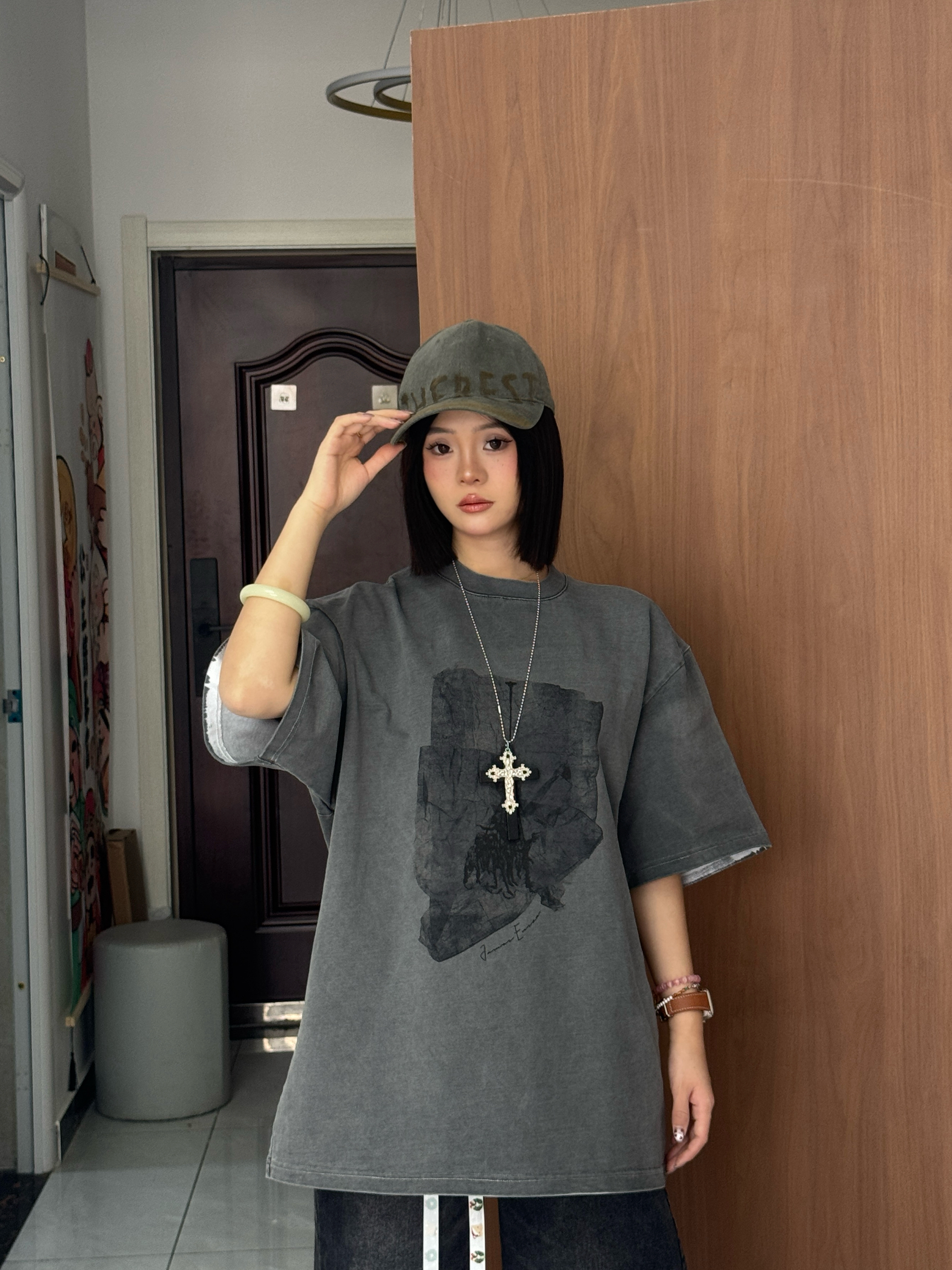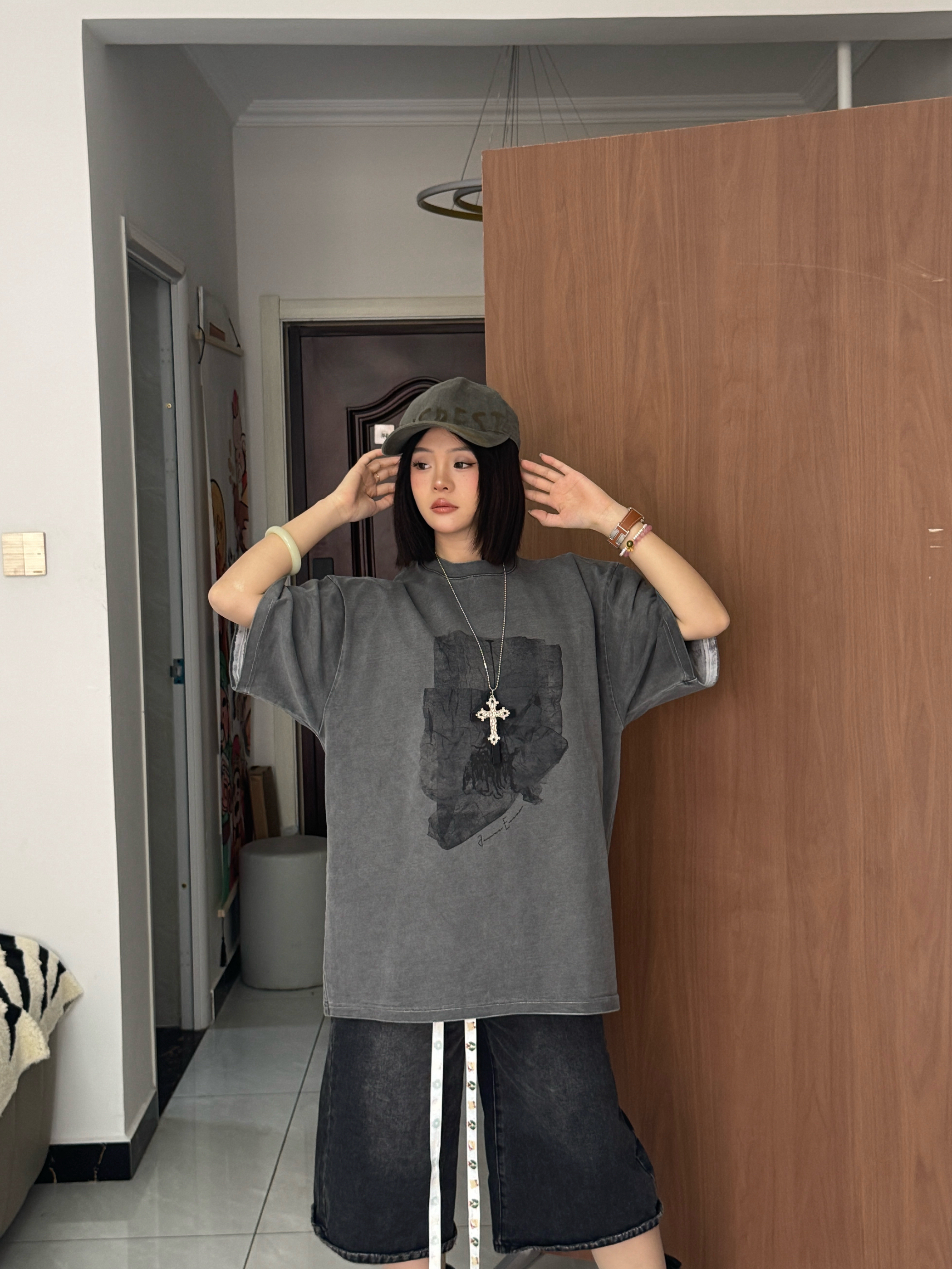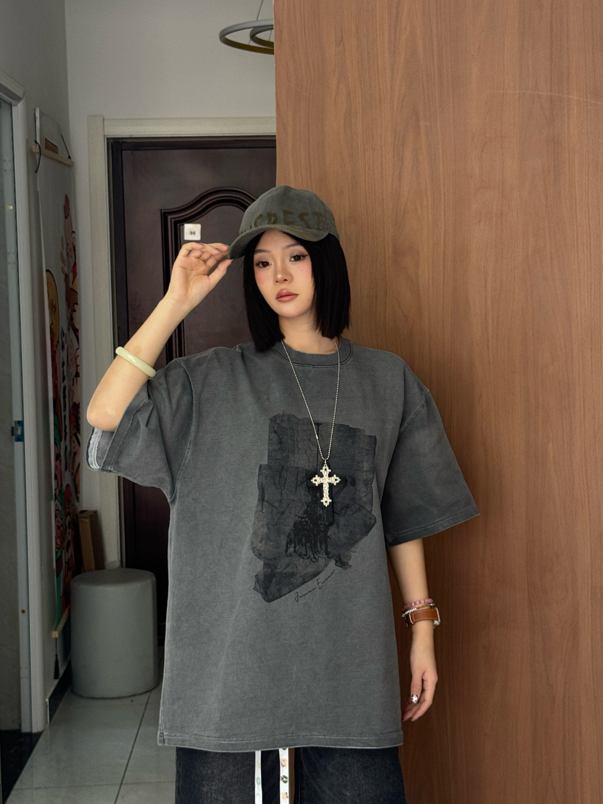 今年真的狠狠沉迷复古街头风!这件做旧水洗灰廓形T恤直接封神✨ 高街版型对身材包容度拉满,落肩设计弱化肩线,微胖姐妹也能轻松穿出oversize慵懒感。 做旧印花质感在线,搭配牛仔中裤和马丁靴,酷飒氛围感直接拿捏。不管是日常出街、打卡潮店,还是去看livehouse都巨出片📸 男女同款的设定,和对象搭情侣装也超有格调。 穿搭不用费脑,一件质感T恤就能解锁N种潮酷穿搭!