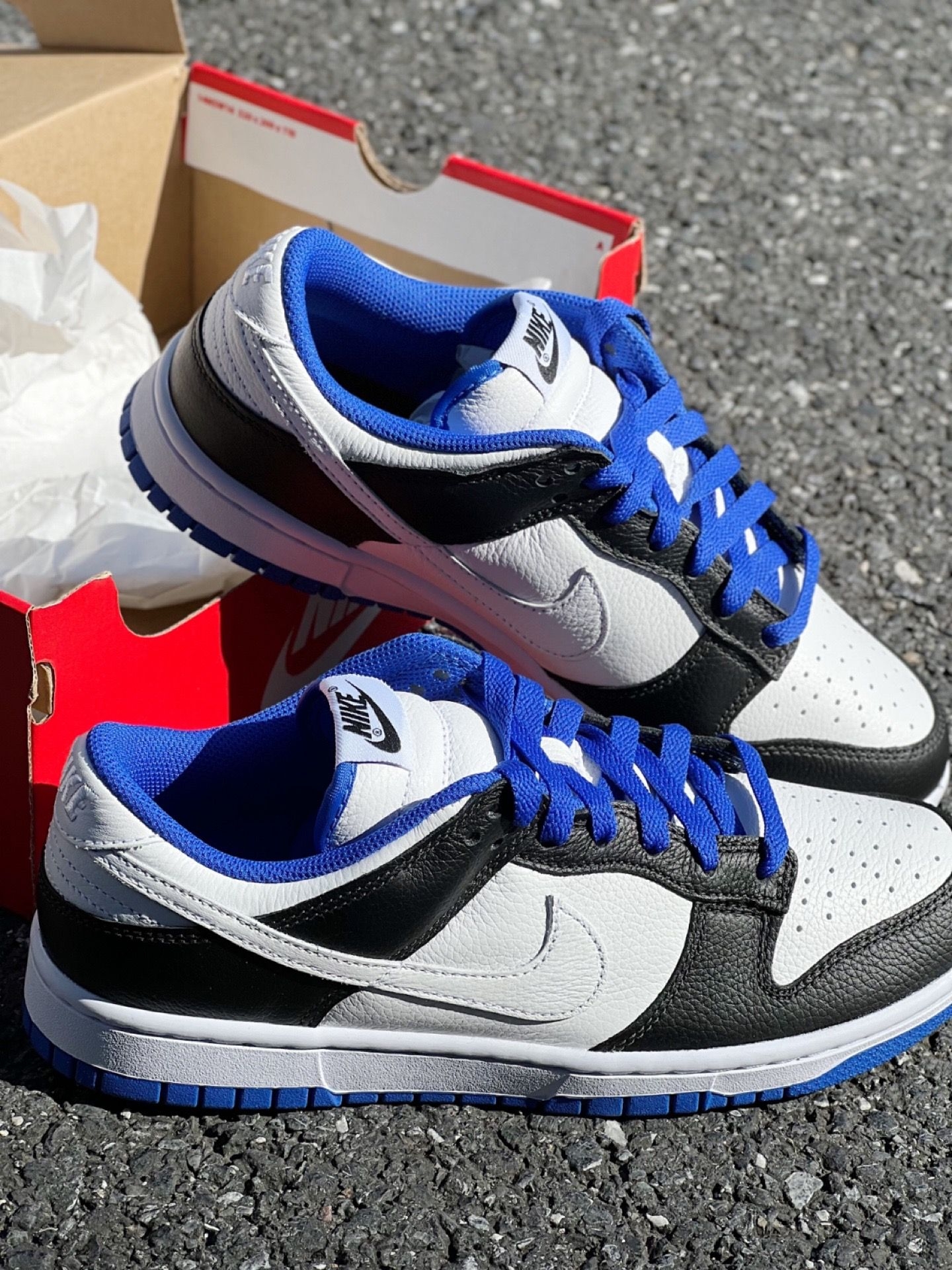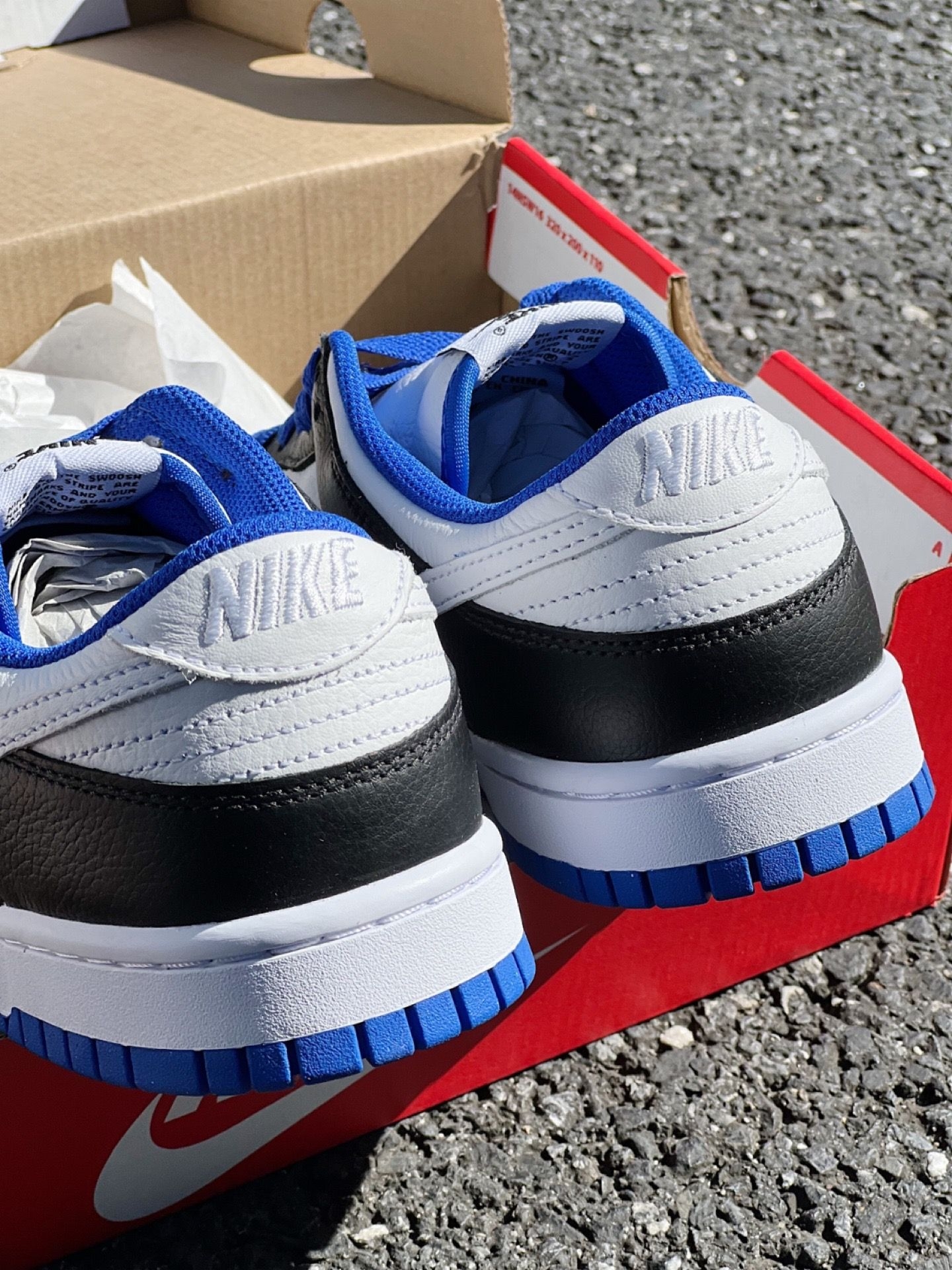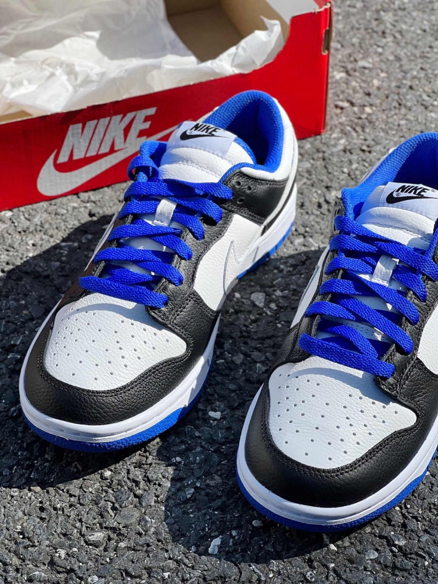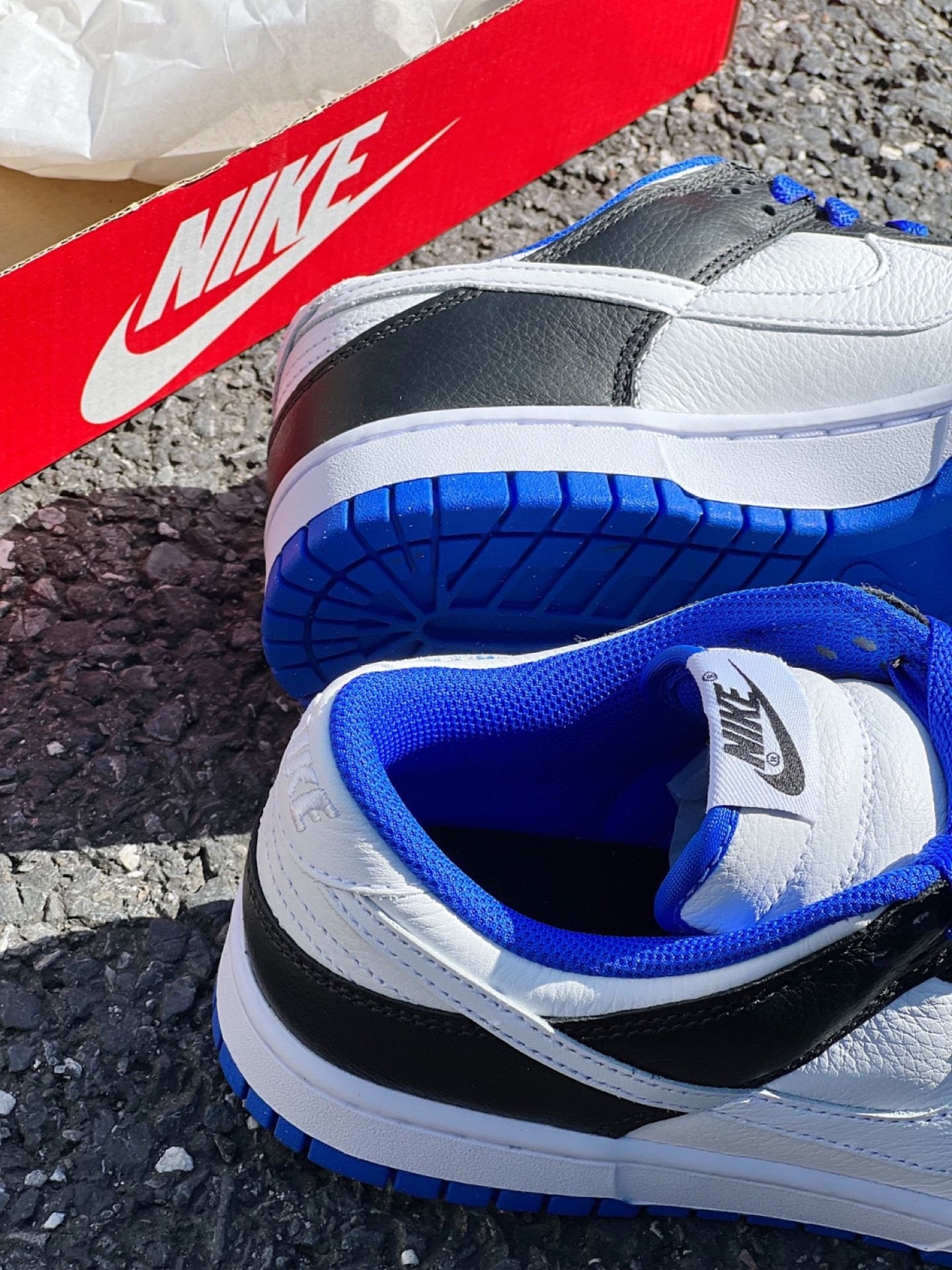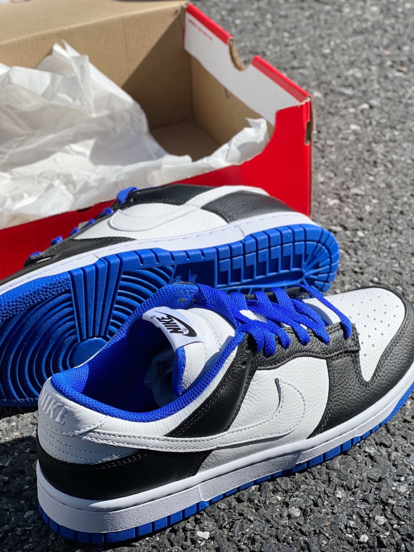 NiKE DUNK 情侣鞋百搭好穿呢|||黑白鞋身加上蓝底和蓝色鞋带的点缀 让鞋子的色彩变得丰富 搭配牛仔裤炒鸡出票呢 可以作为情侣鞋 男生女生穿都好看腻! #晒晒我的小蓝鞋 #看看我的时尚好鞋 #因为一个细节入了一双鞋 #开学穿这双好鞋