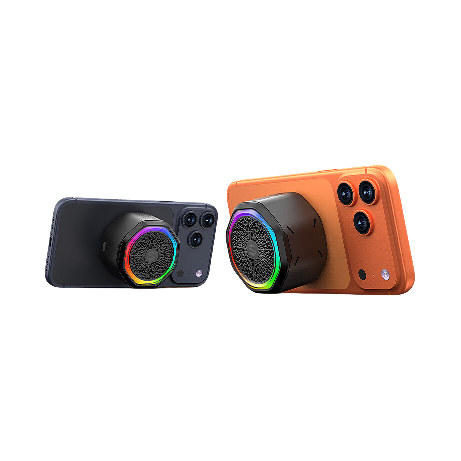 你不会以为我手上这小东西是散热器吧?它其实是黑鲨磁吸蓝牙音箱BS02。 当便携蓝牙音箱拥有了磁吸功能,沉浸听感就能随时跟你贴贴了。