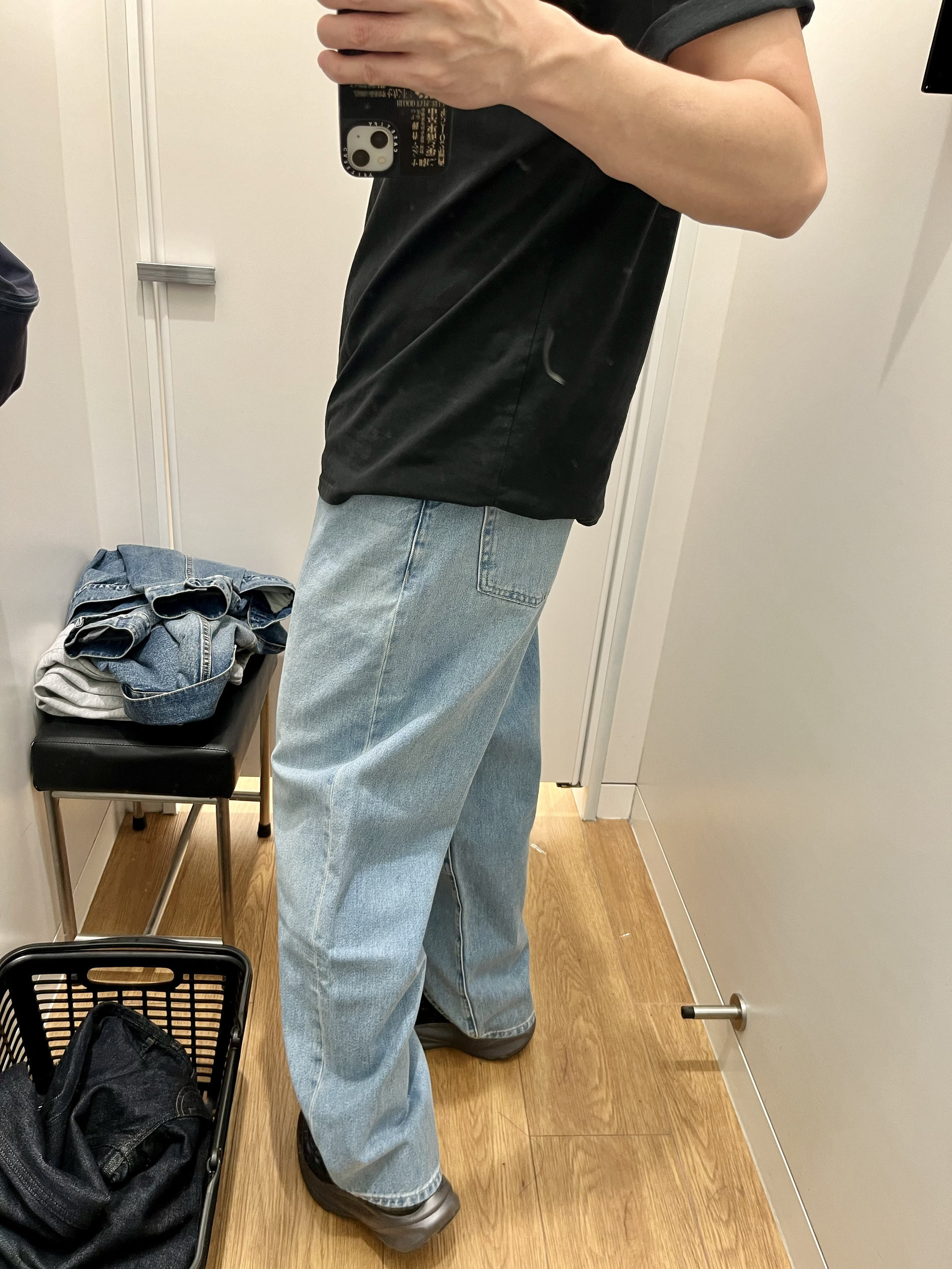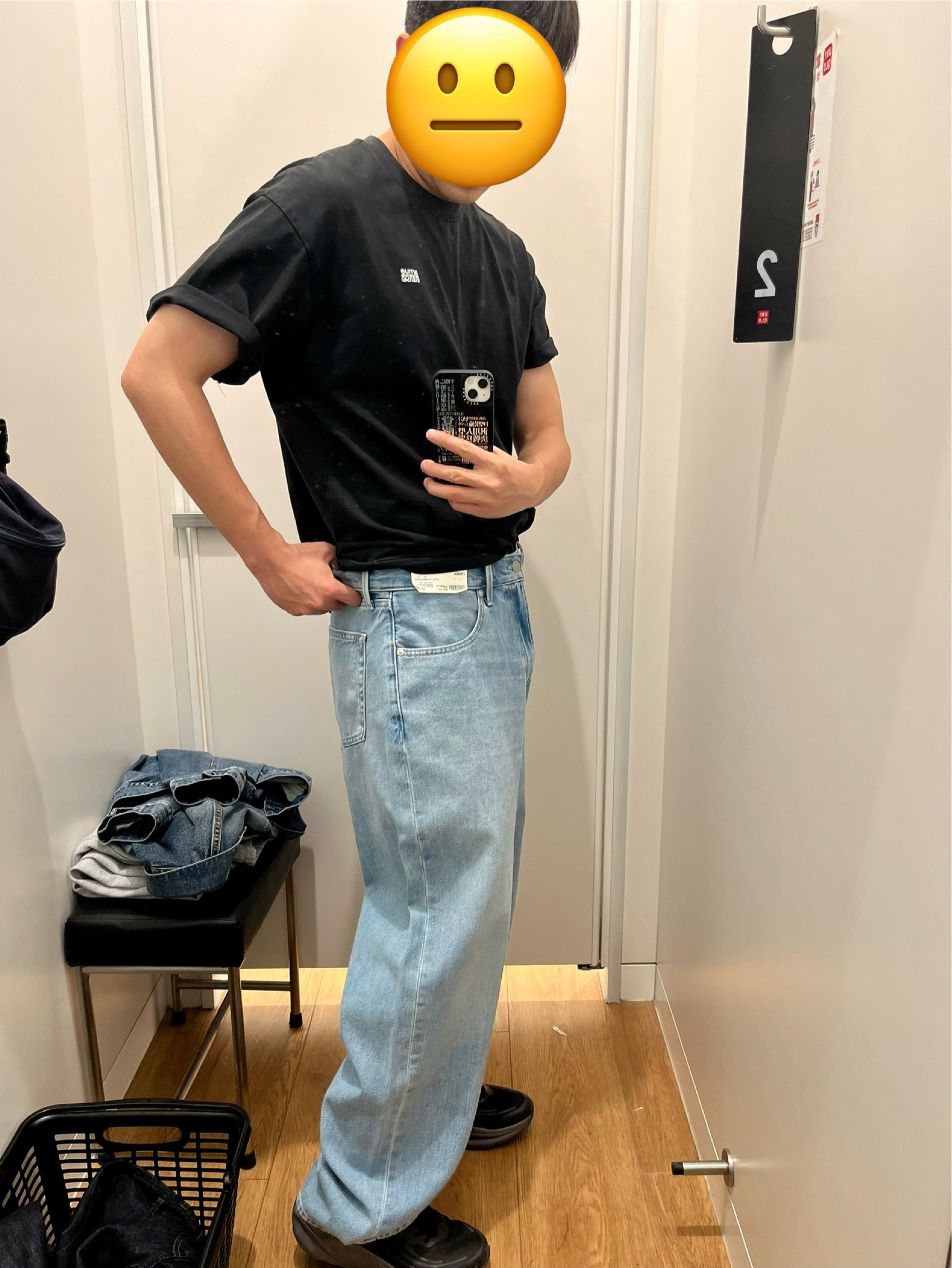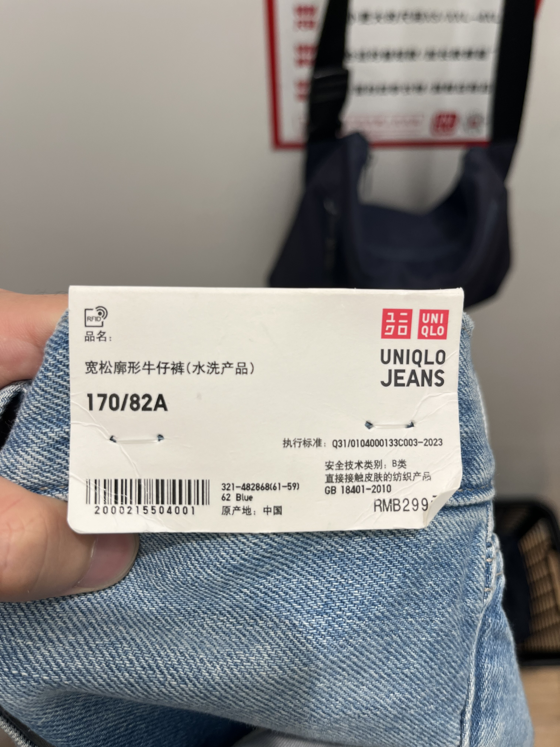 货号482868 ✅ 170/82A 上身。 本人身高179 体重75公斤 这条试穿腰围略微大一点 需要扎腰带 裤长和宽度没有问题 布料属于轻薄一些的牛仔裤 有弹性 上身很舒服 春夏穿没压力 水洗的颜色也不错 粉蓝色做不好就特别low 这条没问题 推荐 推荐