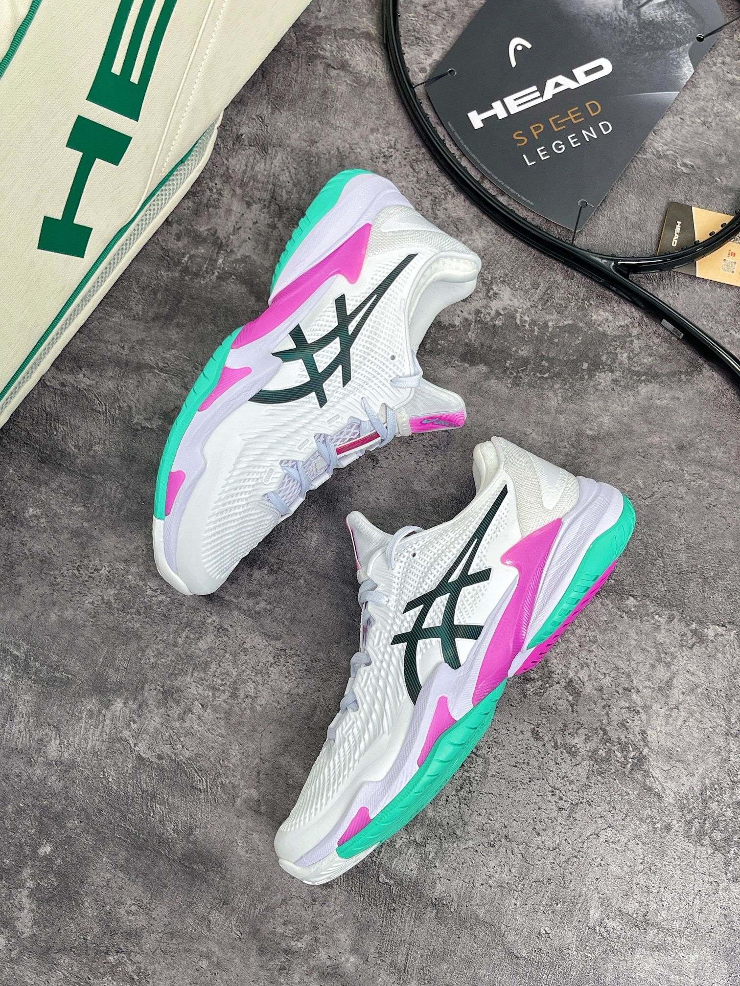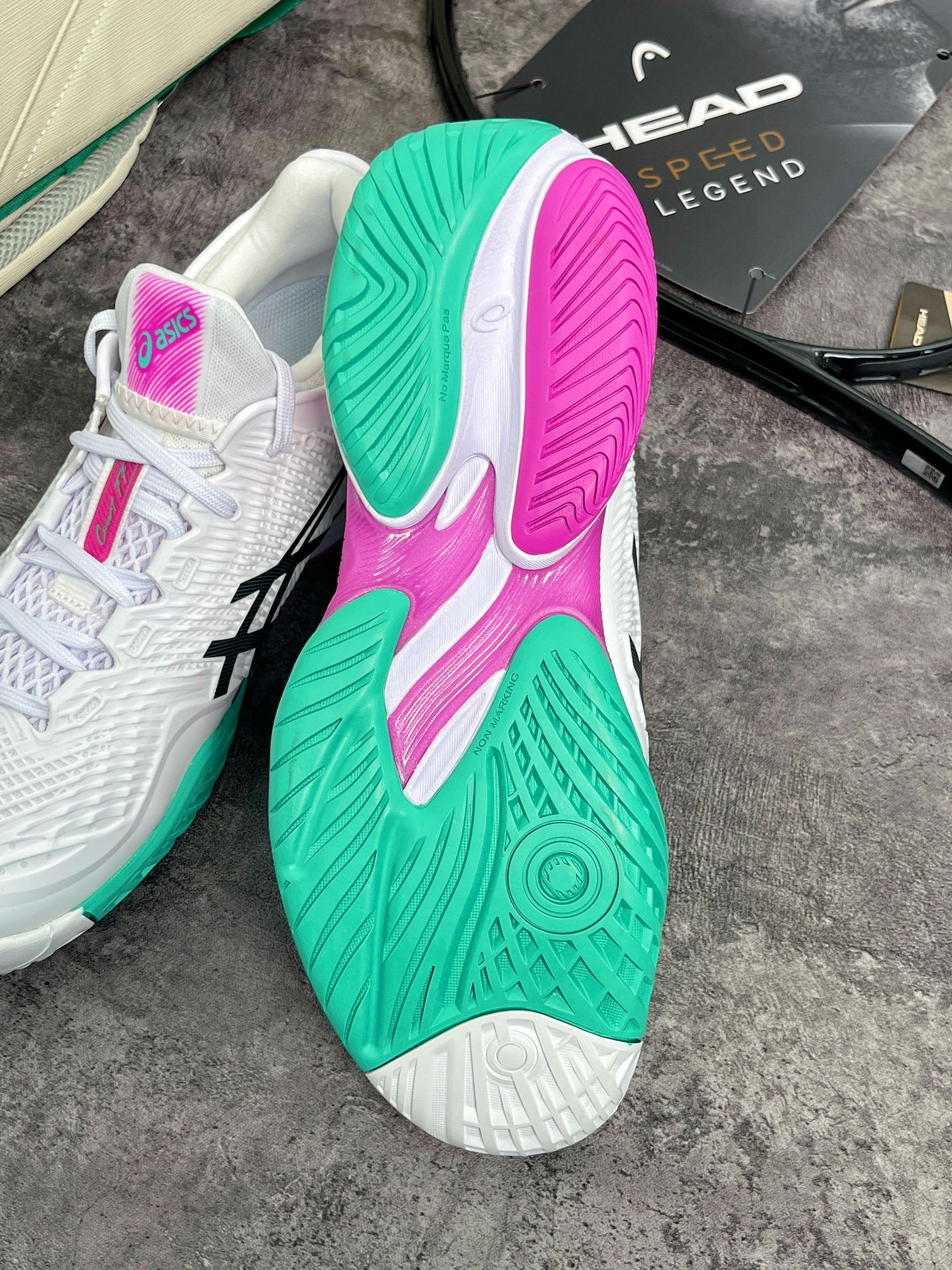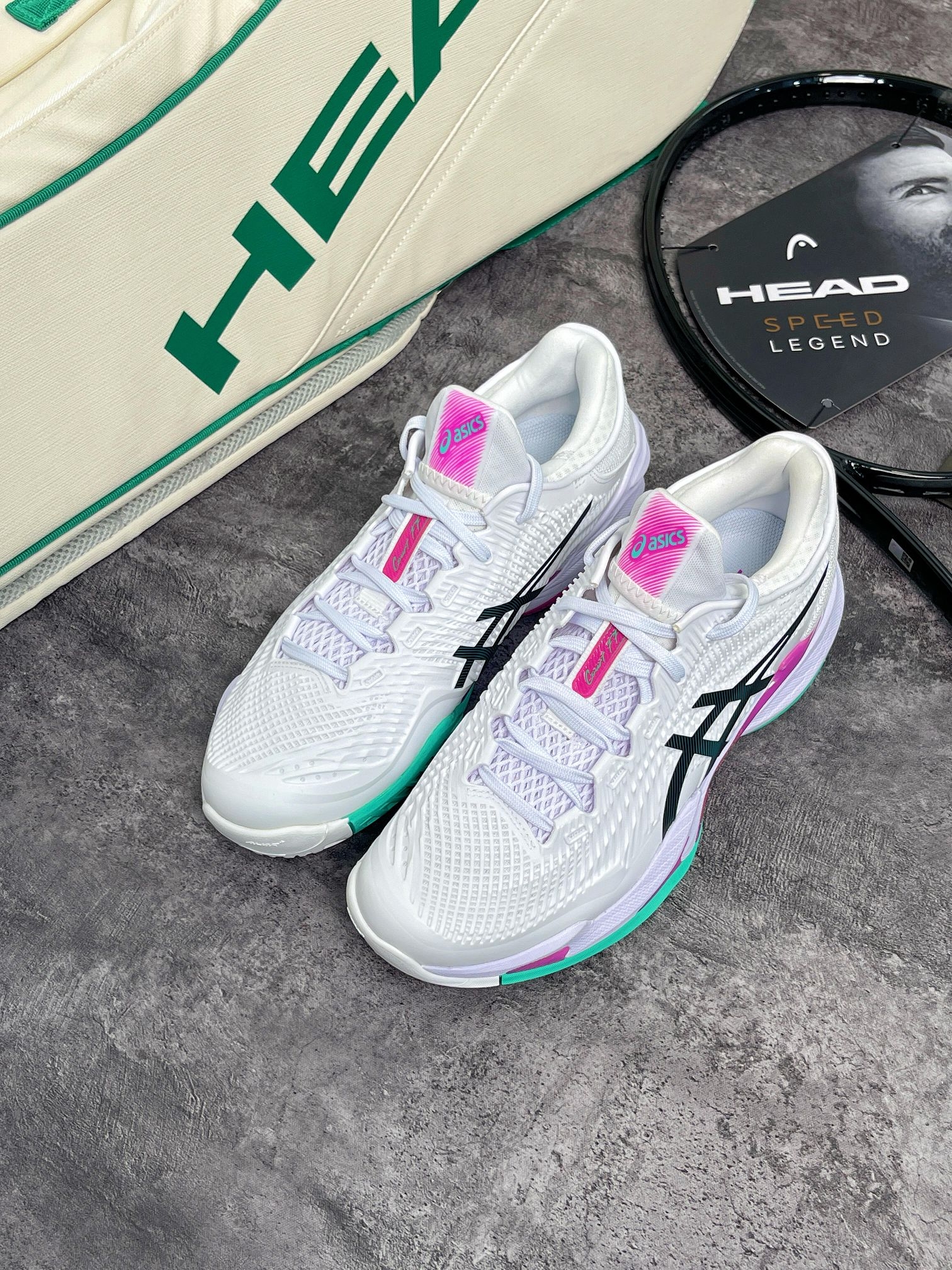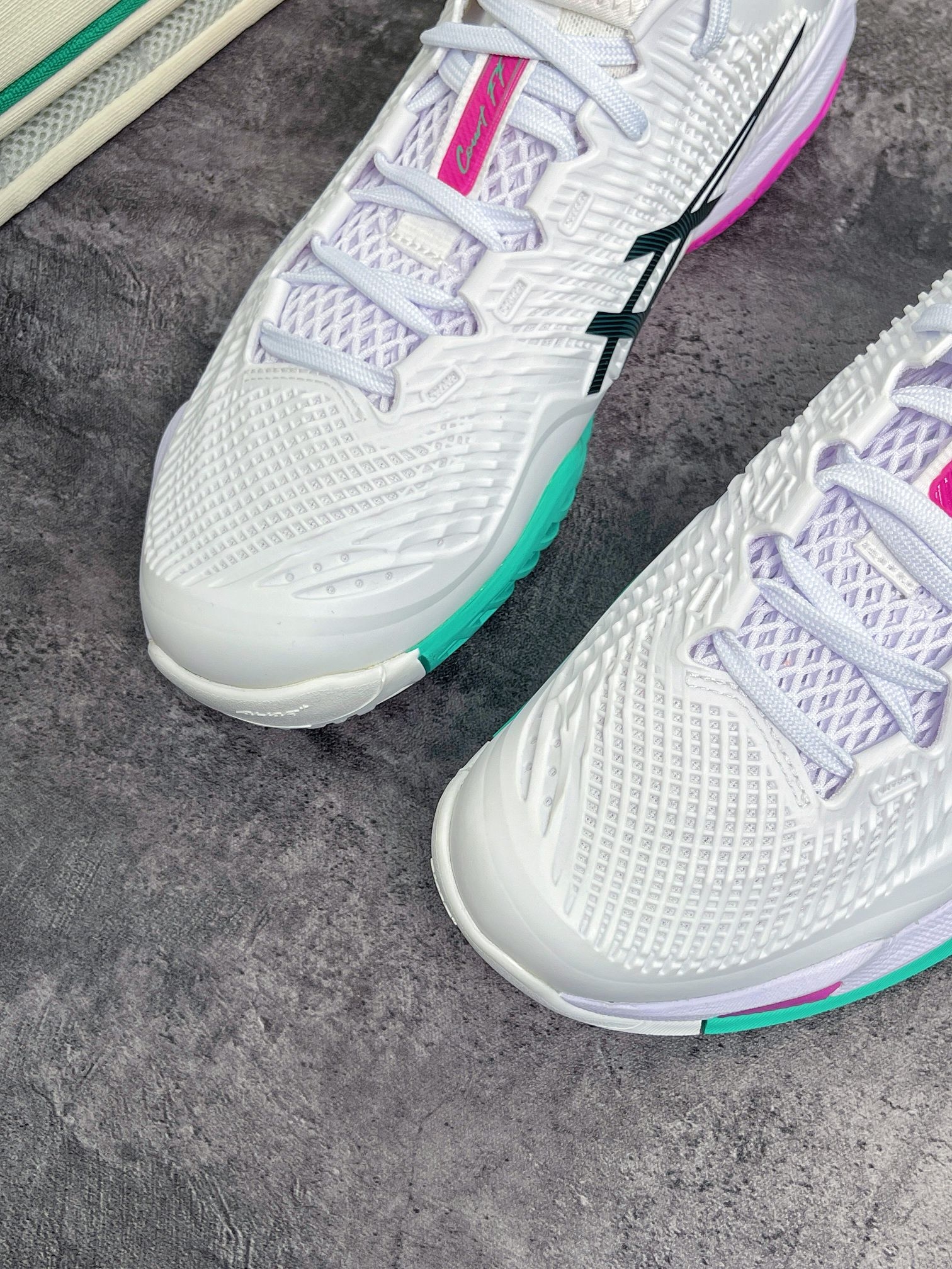 亚瑟士COURT FF3澳网限定款,白拼粉绿的清爽配色,上脚亮眼不浮夸,打球出片、日常 专业防滑大底抓地拉满,急停变向稳当 的缓震到位久打不累,网面鞋面透气不闷脚 新手到进阶都能穿。 颜值性能双在线,这双直接冲