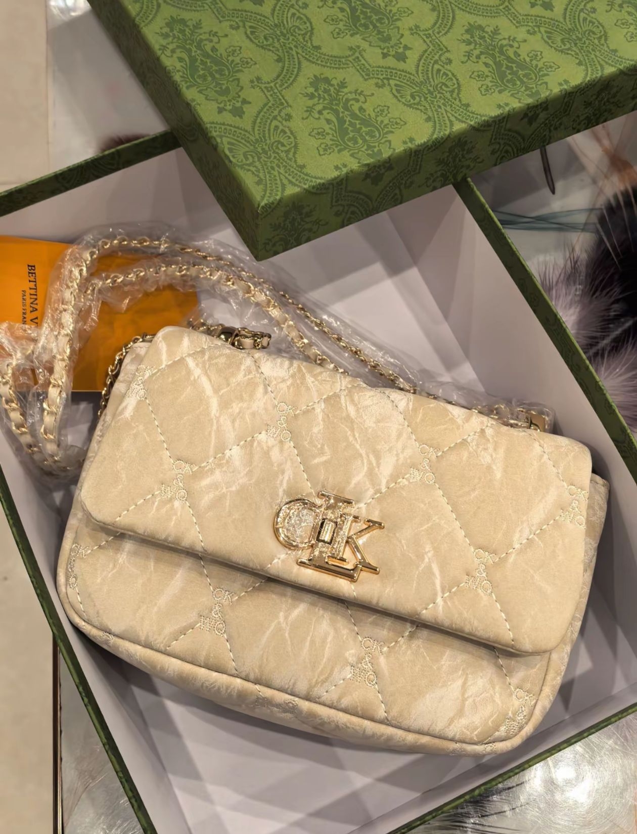 本篇笔记关联了BETTINA VIVIAN 常规菱格绣线PU斜挎包 【礼盒装】米杏色 等商品,为用户提供真实的使用体验和购买参考。