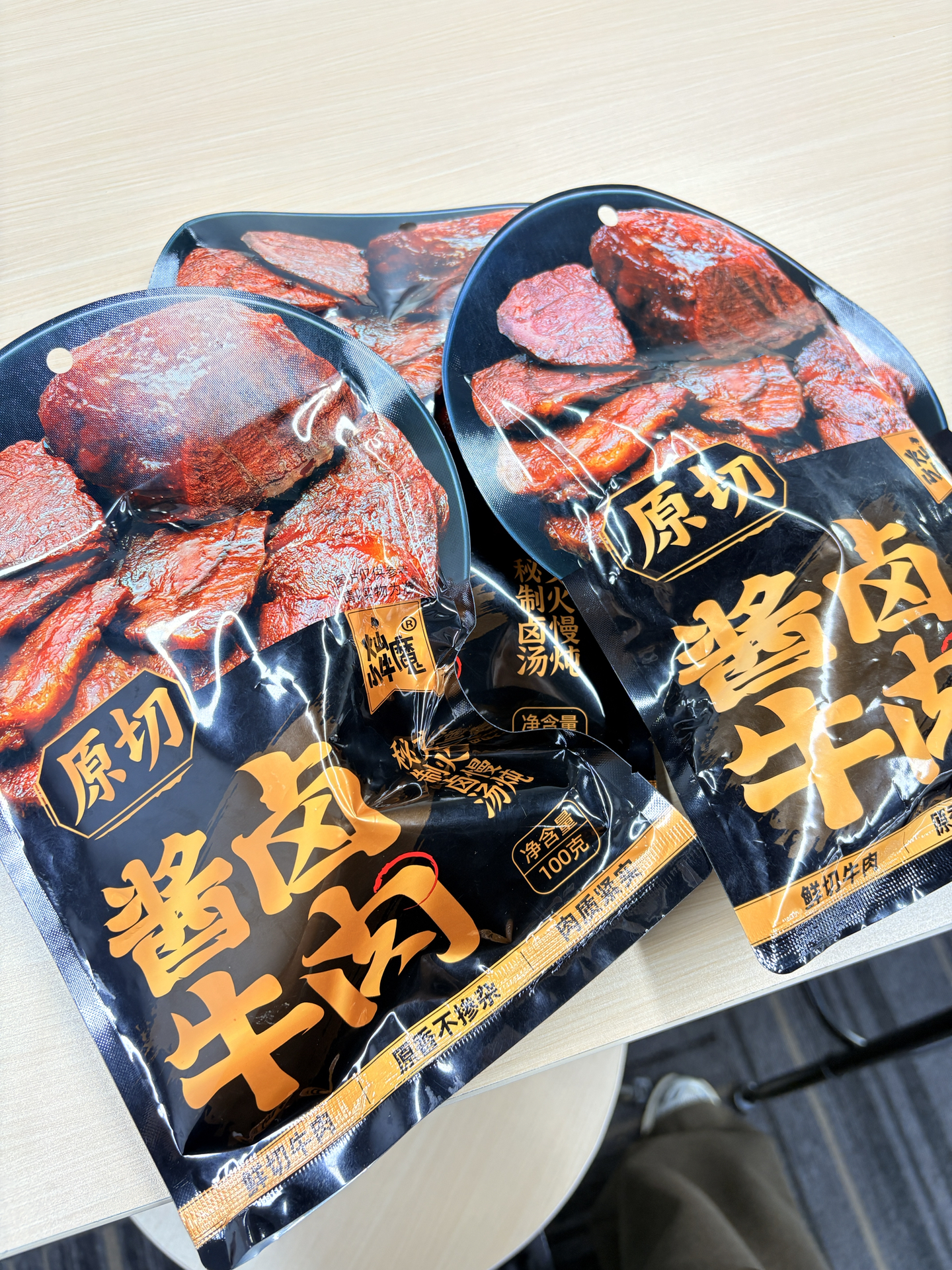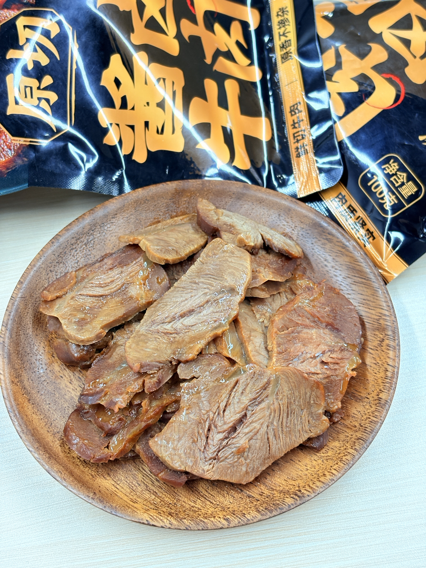 最近泡图书馆全靠它续命!📖独立真空包装撕开没声音,完全不会打扰到别人,酱香闻着不冲,只有肉香慢慢散开。肉质是那种紧实的原切感,嚼着超满足,一袋吃下去能扛到闭馆都不饿。唯一小缺点是量不算大,得备个两三袋才够瘾!学生党减脂期也能放心冲~