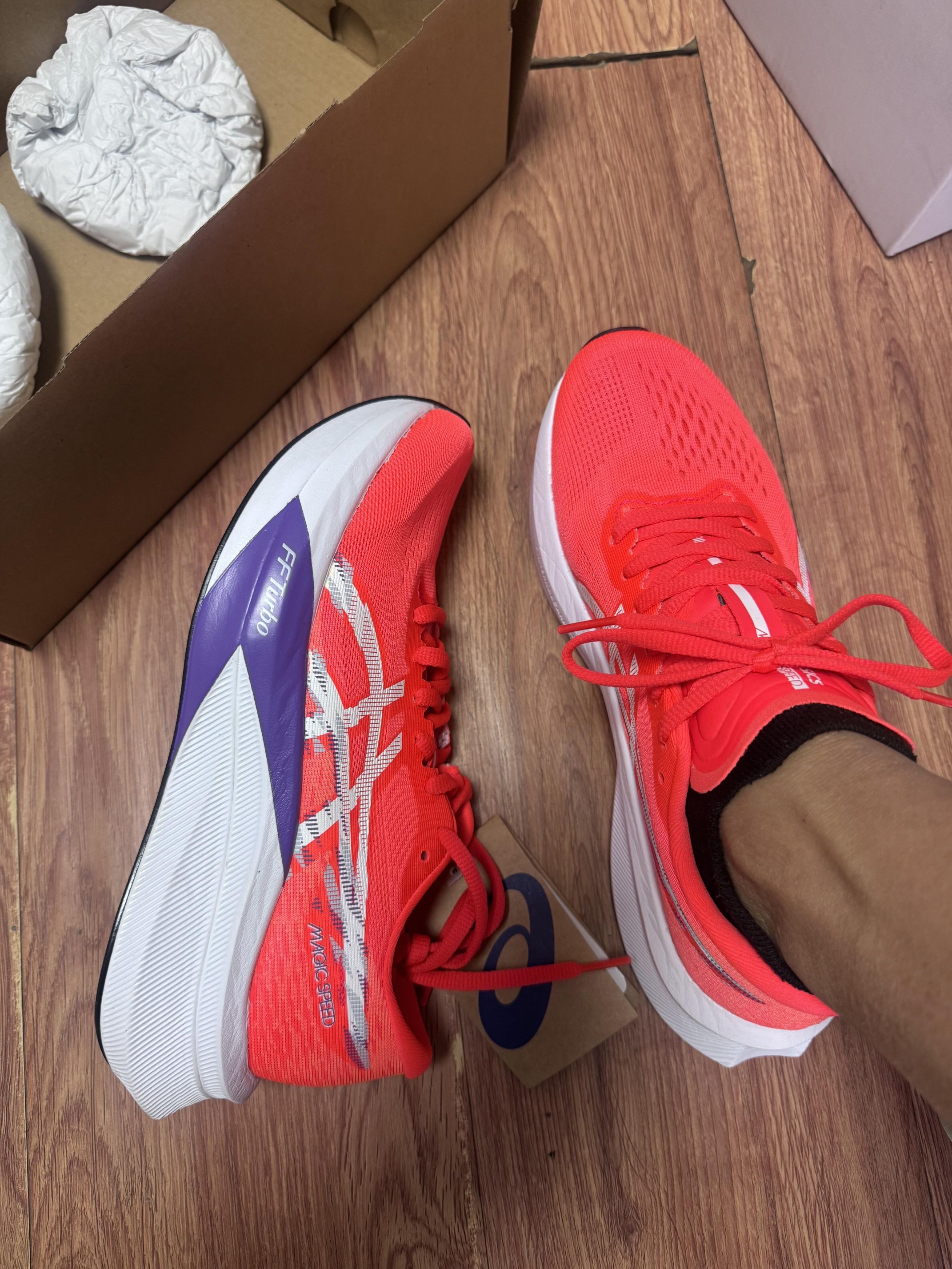 穿起来非常轻盈,感觉弯道会有一点不舒服,跑得快的话,能力不太好的人,800米在后城可能会有一点吃力。