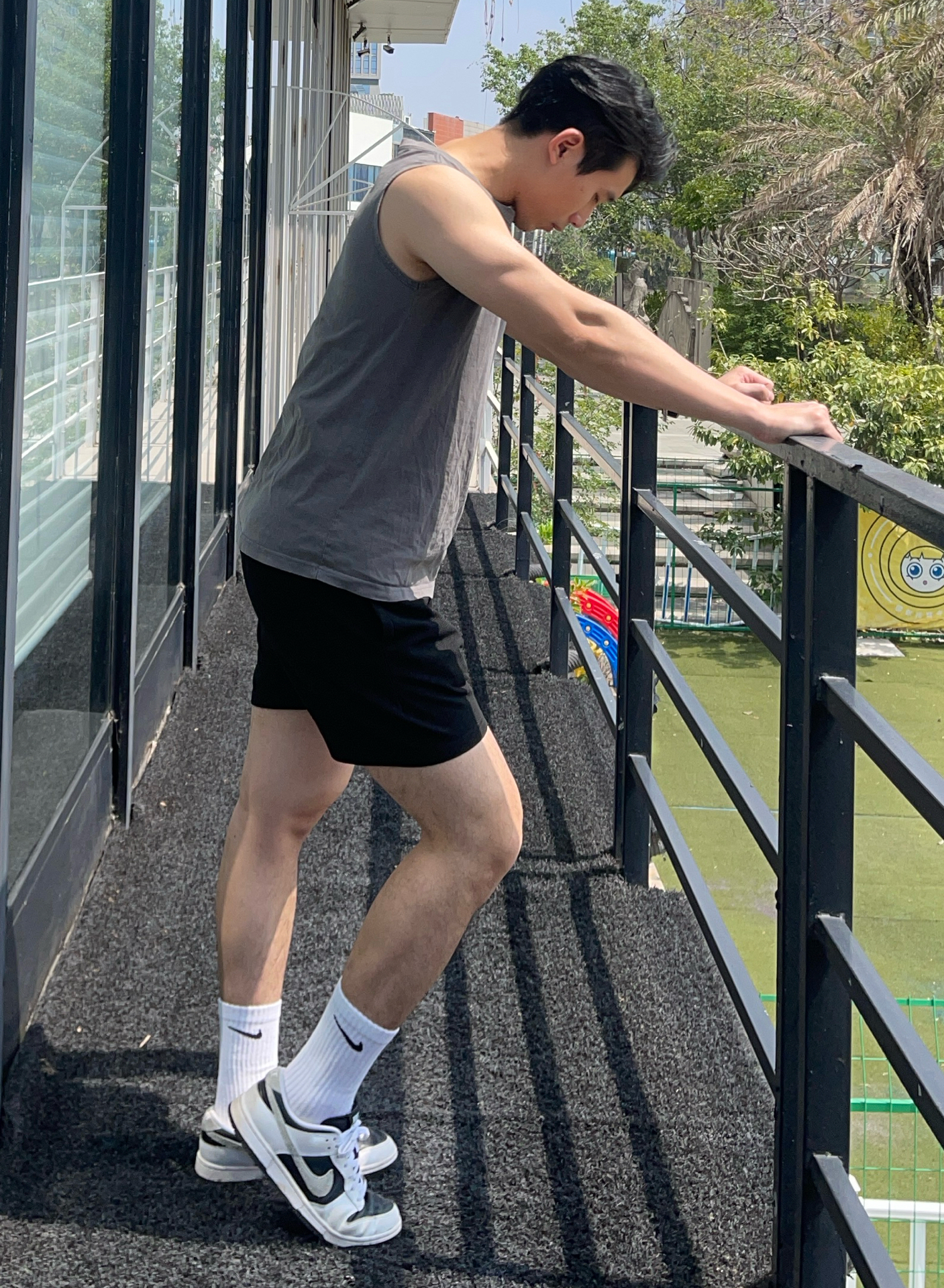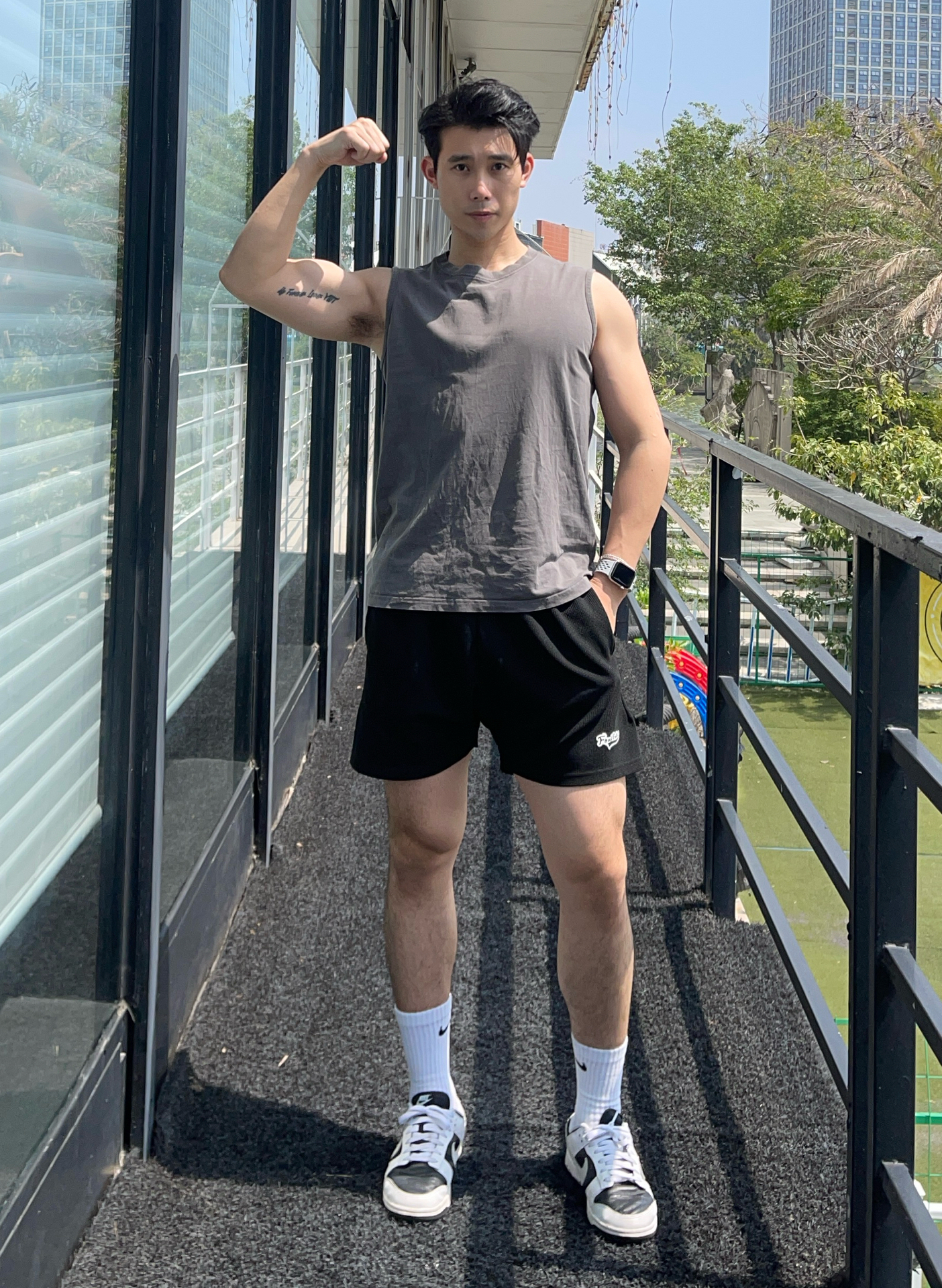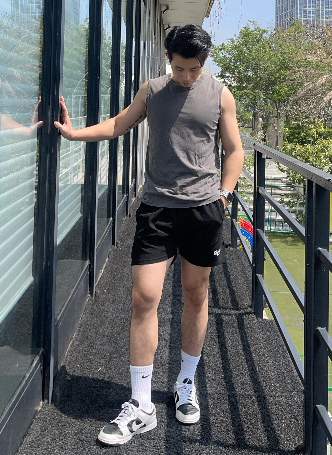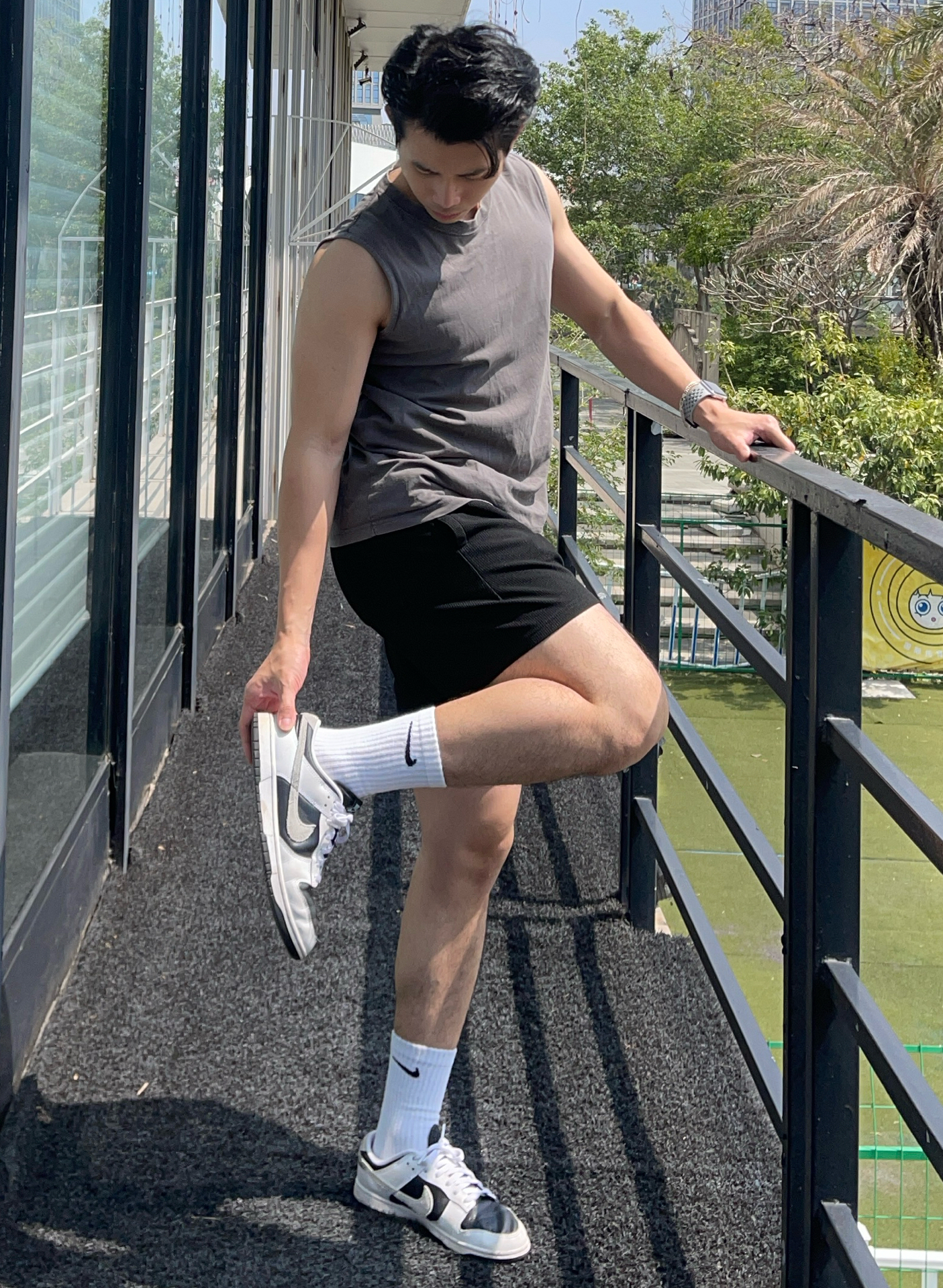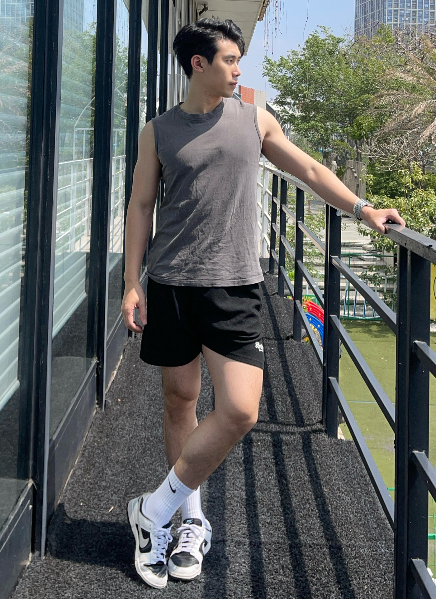 今天上脚的是耐克 dunk 熊猫配色 是一双穿起来很舒服的鞋子 鞋底也不会很硬,很适合训练穿搭 无论四季都是很不错的搭配单品 你穿任何裤子都可以搭配一双 身高 180|体重 76|鞋码 43 👕:运动背心 👖:休闲三分裤 👟:耐克 dunk
