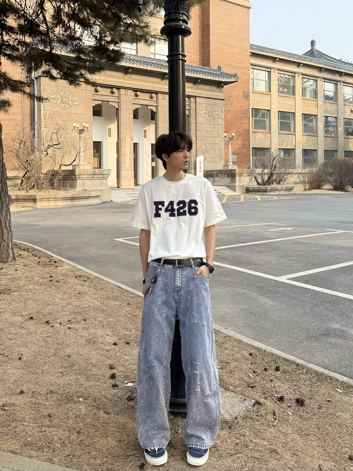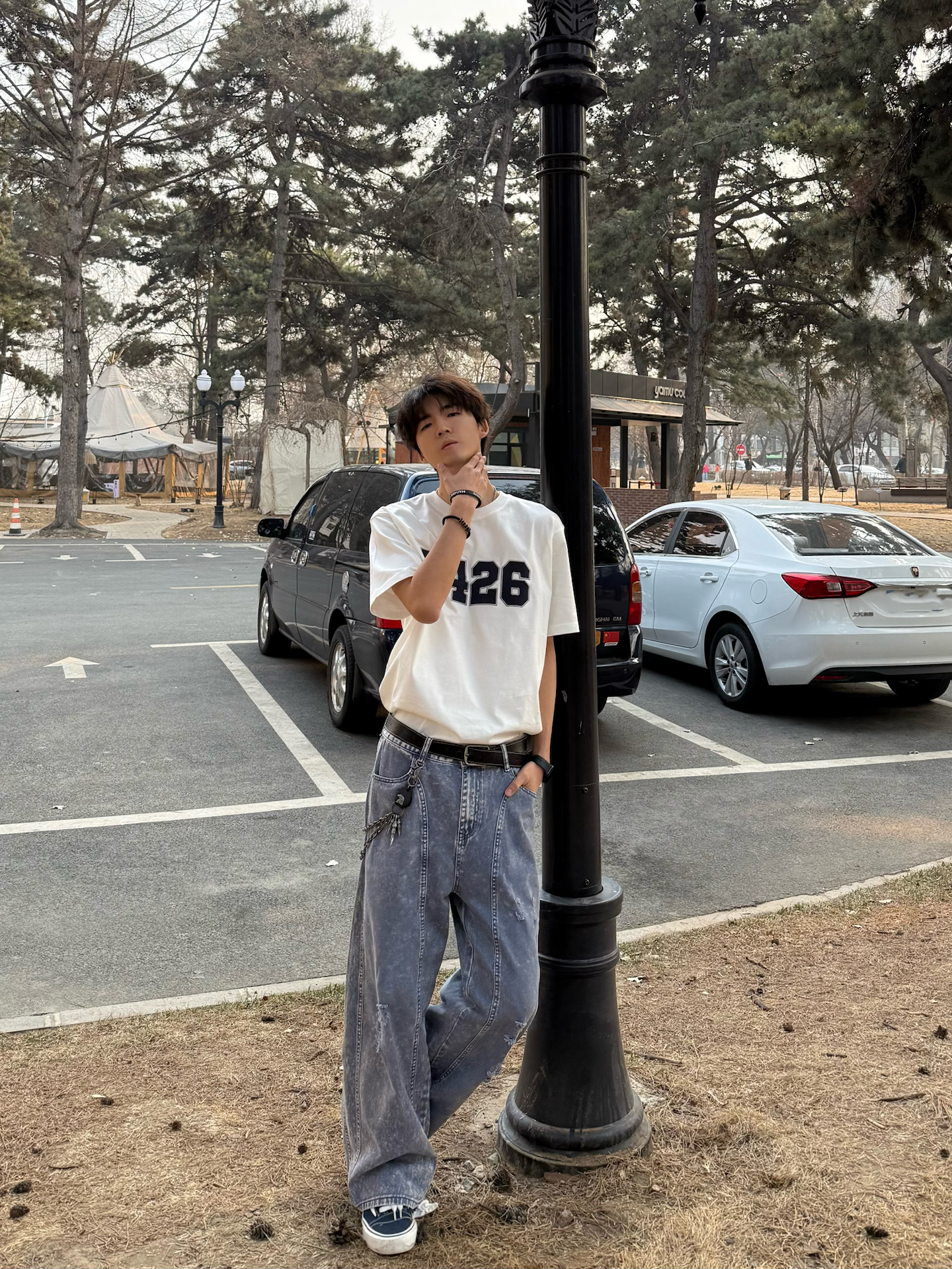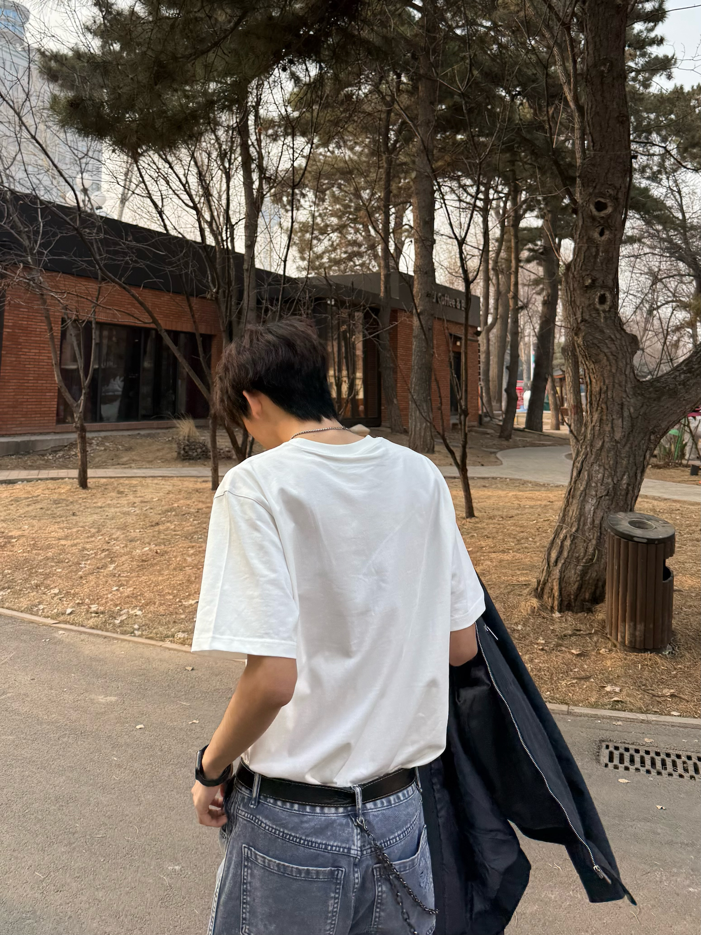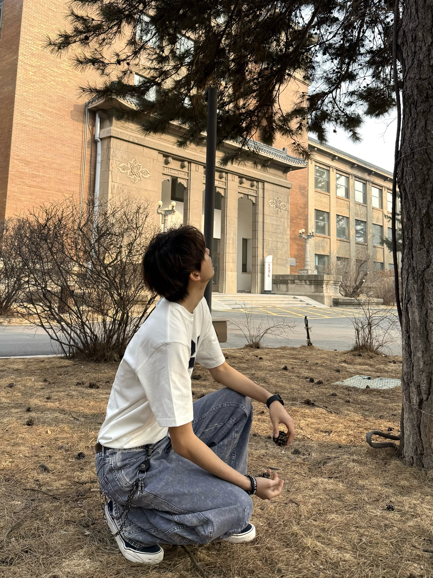 春天太适合在公园闲逛了🍃 今天没安排 刚好揣着手机出去走走 穿了件F426的印花T👔配上水洗破洞裤 在踩双帆布鞋👟不用过度选择搭配 整身简约为主 刚好利用上浅下深技巧✅腰带卡住腰线 既保证了比例 又不会显得很刻意 在树下捡捡掉下来的松果🌿看看公园里的行人 还是这种面无目的的生活状态 更舒适