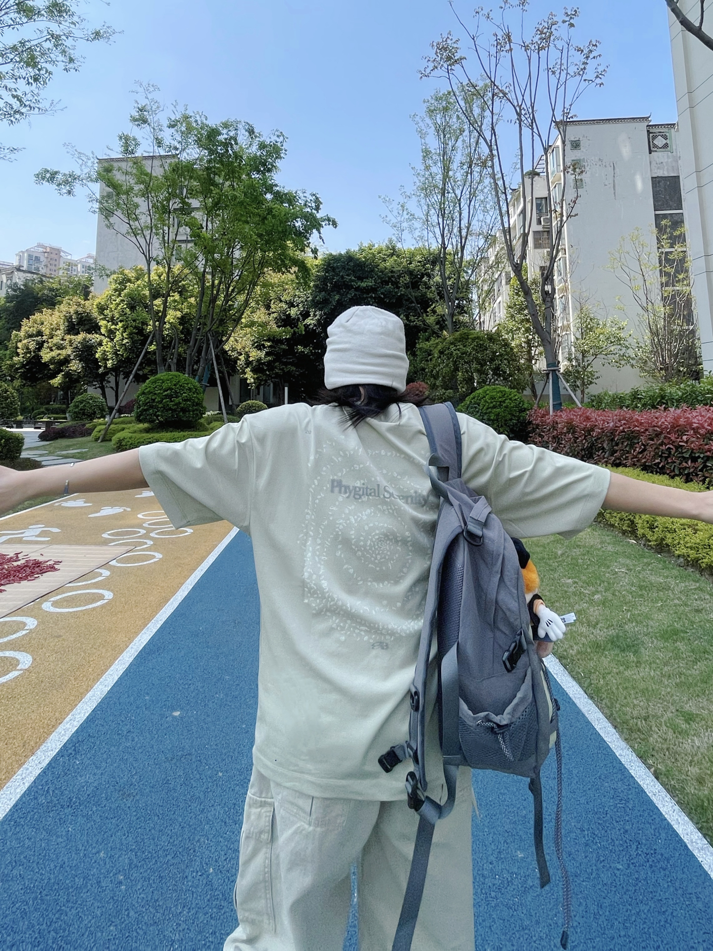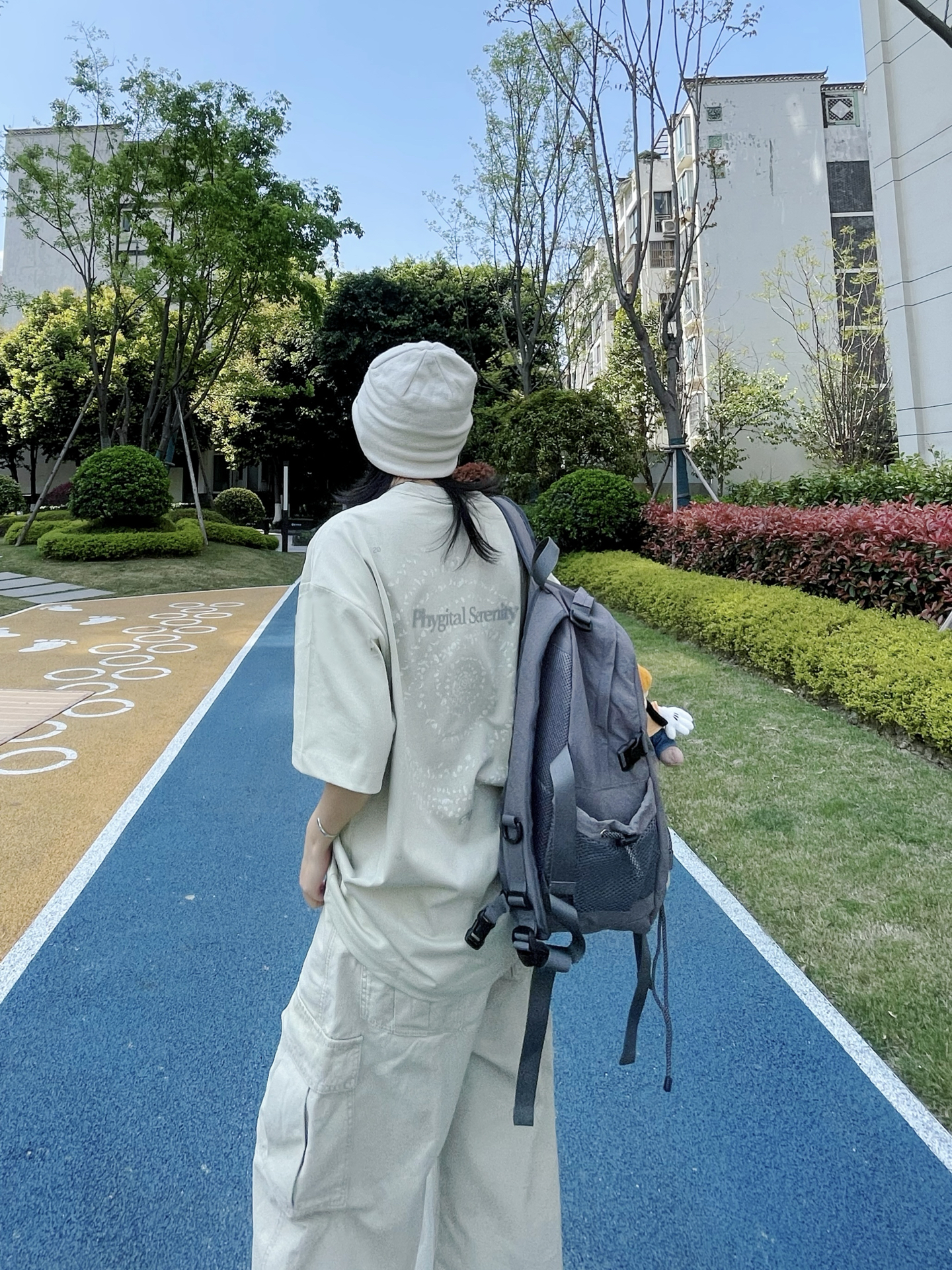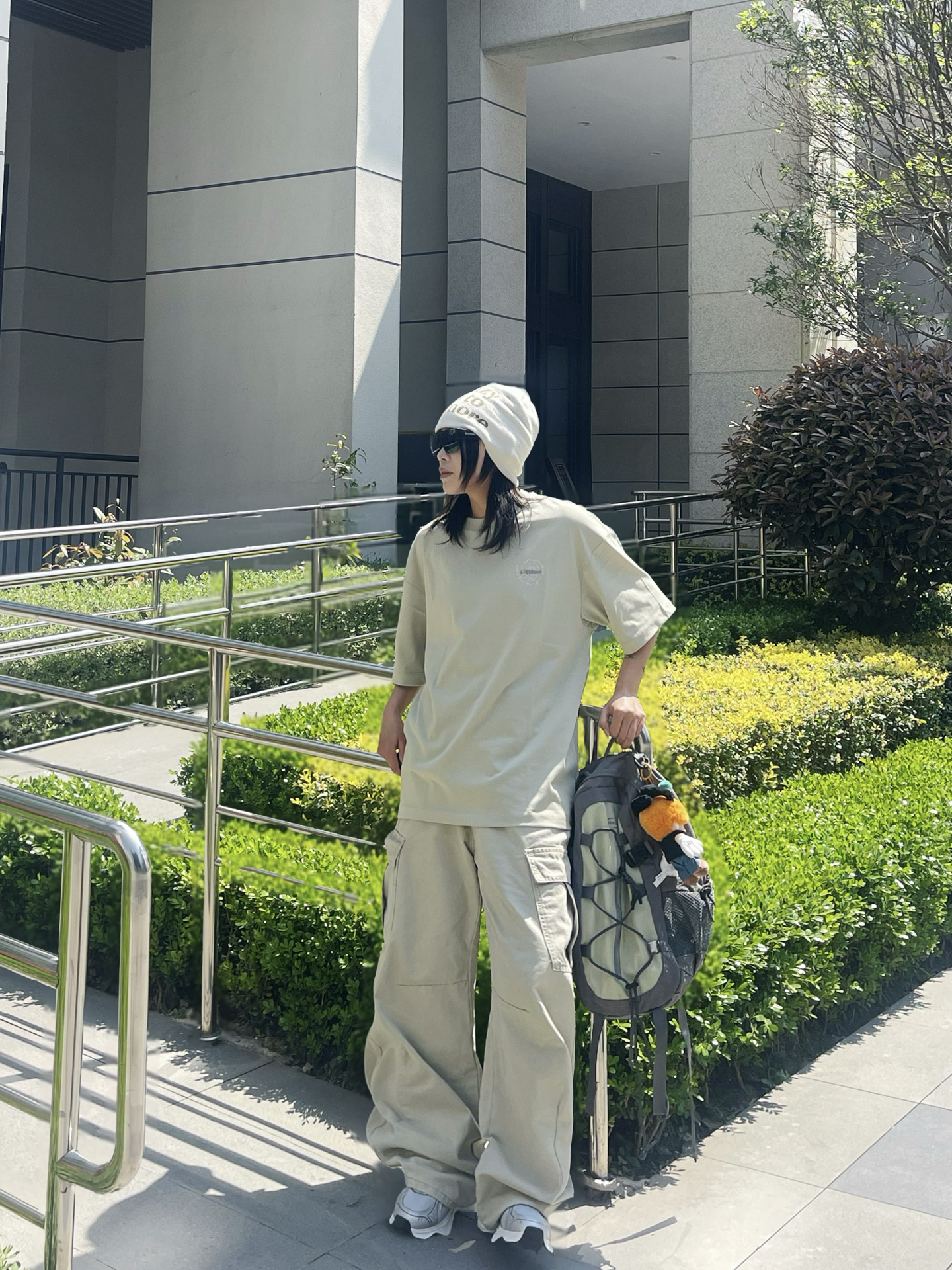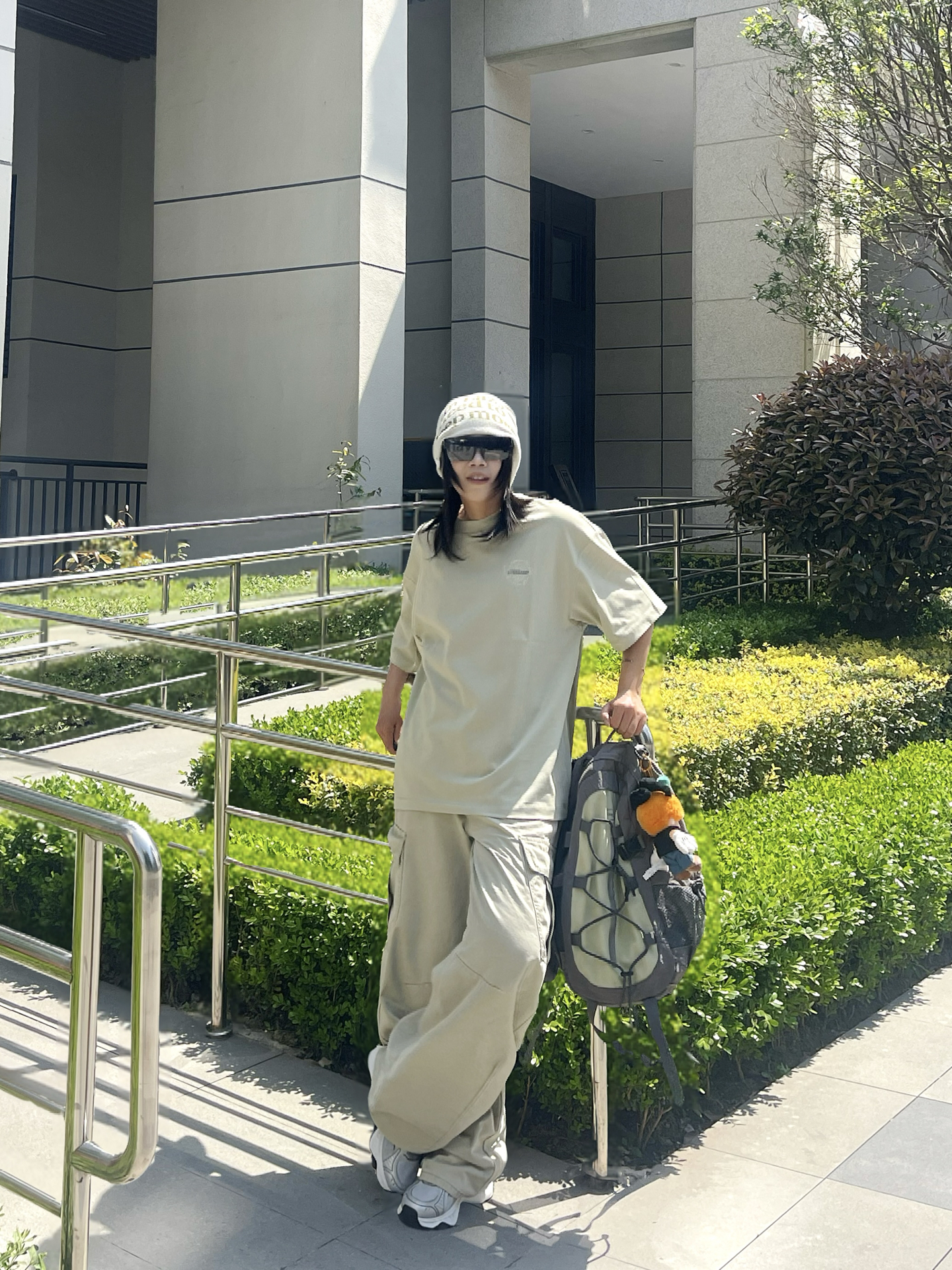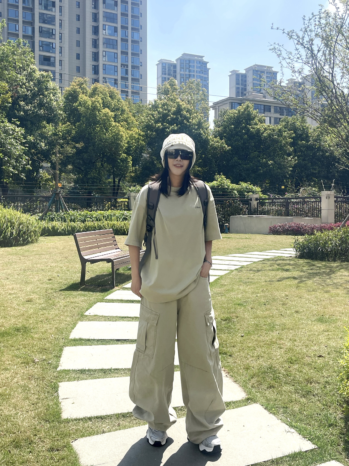 春夏就爱这种不费力的松弛感穿搭 oversize短袖搭配阔腿工装裤 浅卡其同色系搭配就很chill T恤是冰冰凉凉吸汗垂感版型的 不论日常运动还是通勤出街我觉得都不错 搭配针织冷帽 墨镜一戴 再背上我的“宝藏背包”,潮酷休闲又随性 溜达时随手拍都出片👌🏻