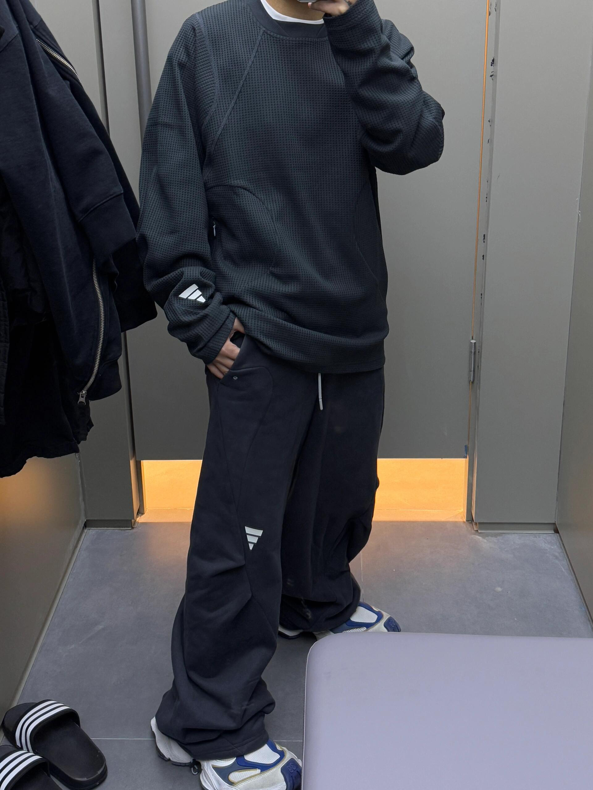 第一件就是这个华夫格打底,我一上身就知道:稳了! 面料超级舒服,透气感真的绝,夏天穿也不闷,贴身穿巨亲肤。 剪裁更是亮点,版型微微收身,不显肉、不显壮, 外穿当上衣、内搭打底都很酷,怎么搭都不翻车。 裤子更是直接锁死🔒 当季最新的款式,后腿位置的抽绳细节我真的爱住! 可以按自己喜好松松紧紧,想显腿细就抽紧,想随性就放松。 厚度刚刚好:不薄不飘,上身是那种挺括又不硬的质感。 内里是较厚的毛圈布,摸...