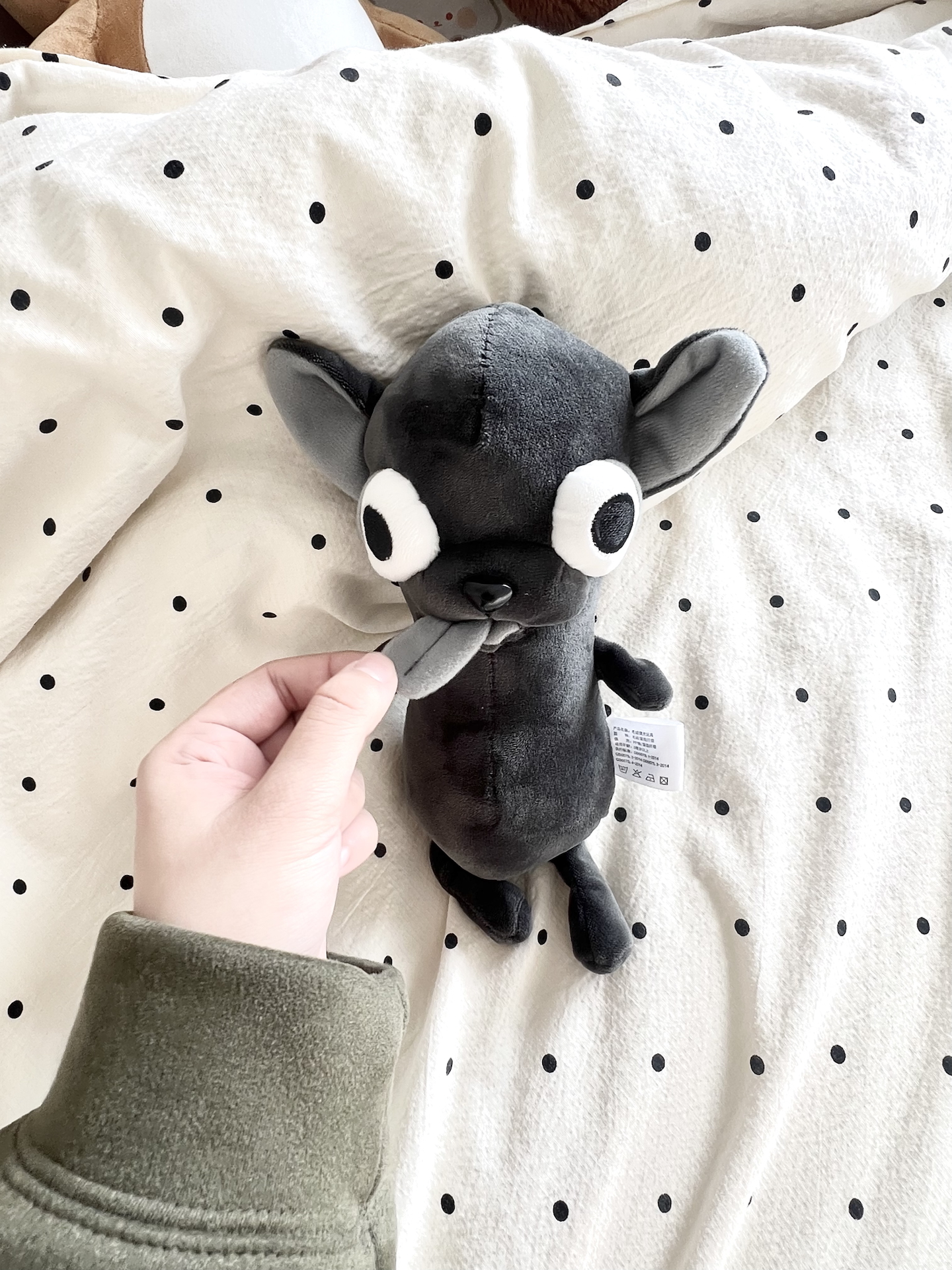 朋友送的这个小挂件真的戳中我了👀!黑糊糊的吉娃娃造型,大舌头耷拉着,越看越上头🥹!软乎乎的料子捏着超解压,晚上放枕头边,真的有种被守护的安全感~就是挂在包上有点小,不仔细看容易被忽略😜