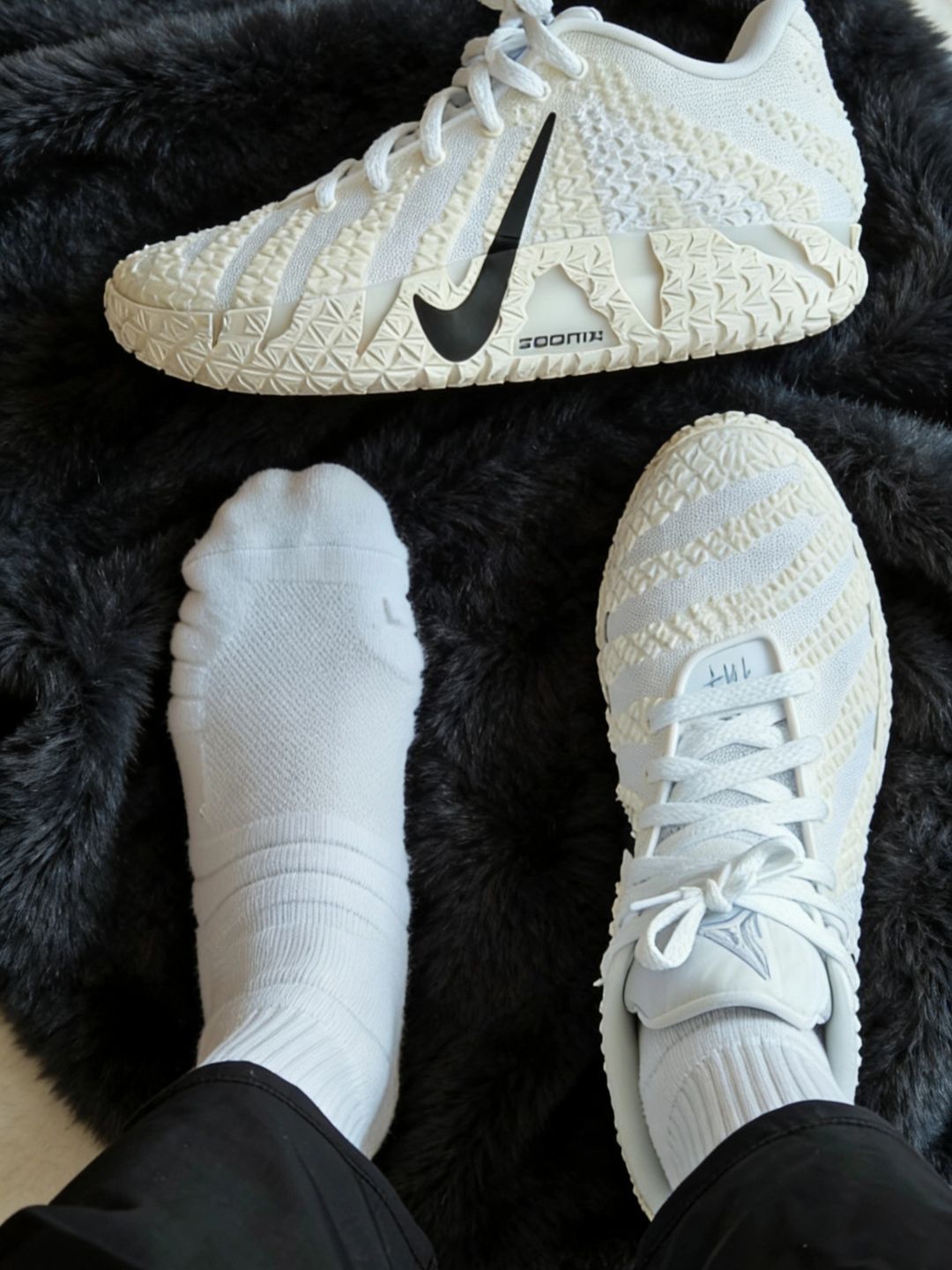 这双JA3莫兰特3代鞋打篮球真的太舒服了!(脚掌宽的兄弟建议试穿)全方位包裹住脚。颜值也超高。鞋面是透气网布,前面的纹路设计完美的对应跑步时的弯曲度。鞋底弹性特别好,落地缓震很稳,急停变向也跟脚。颜值和脚感都在线~😌 穿它打篮球绝对让你成为全场焦点
