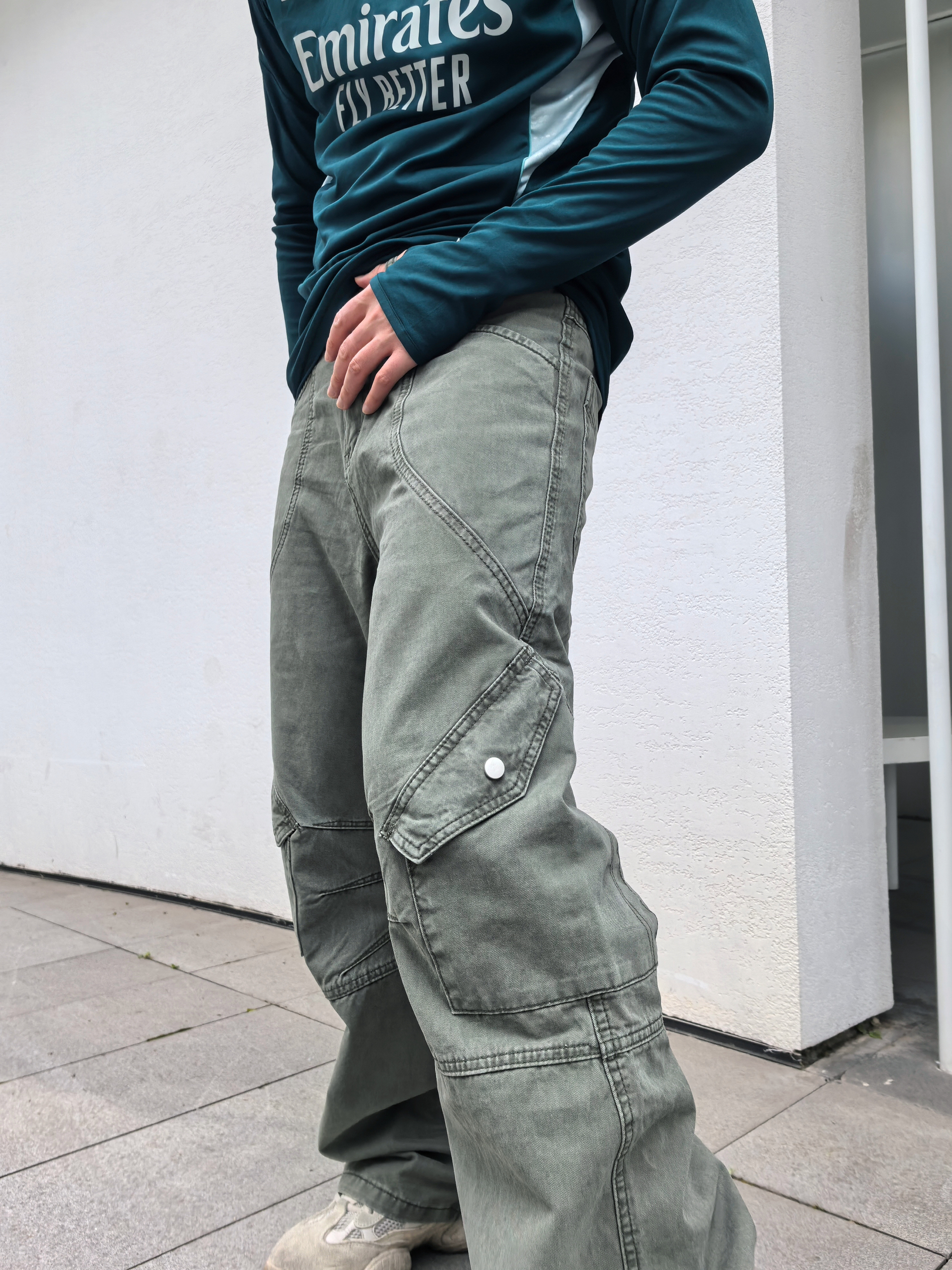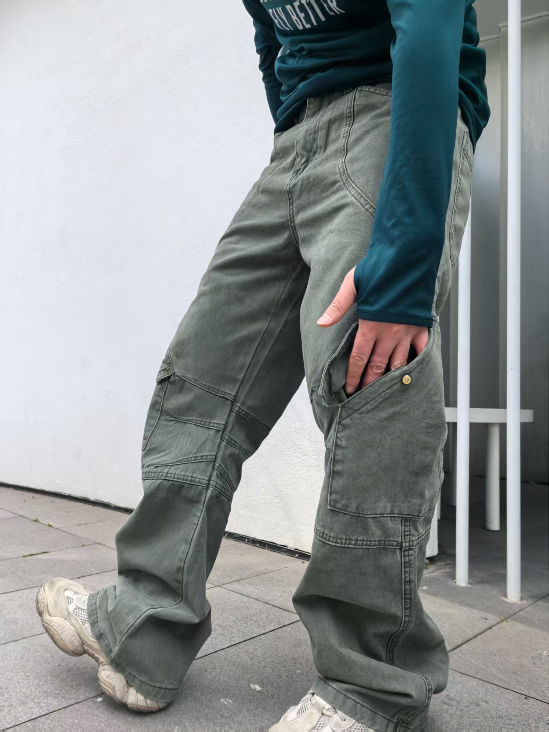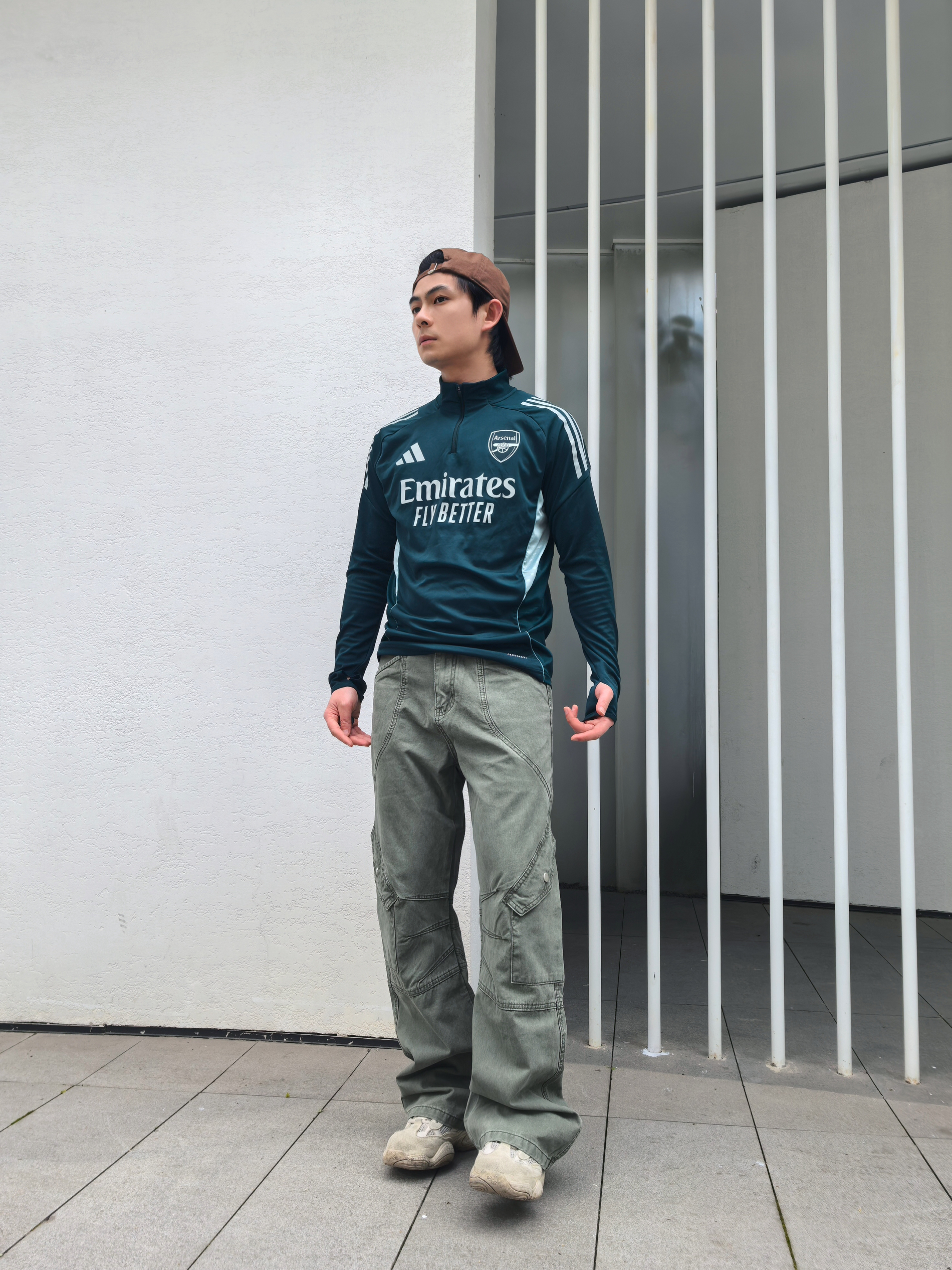 感觉今年春天绿色和我杠上了! 🏃今天上身这条FIVE CM的工装裤,版型是微喇阔腿的,不用担心小腿粗,它的版型刚好能够遮住 美式复古感挺到位的,近看会有一点点做旧水洗感,但不是特别明显,挺括有型,侧边大口袋+按扣设计,自带街头痞帅感 👾我随便搭了个运动长袖以及老爹鞋就很出片,如果是搭复古风的短T效果会更好些 🏷️我的身高175体重135,穿的XL码,宽松