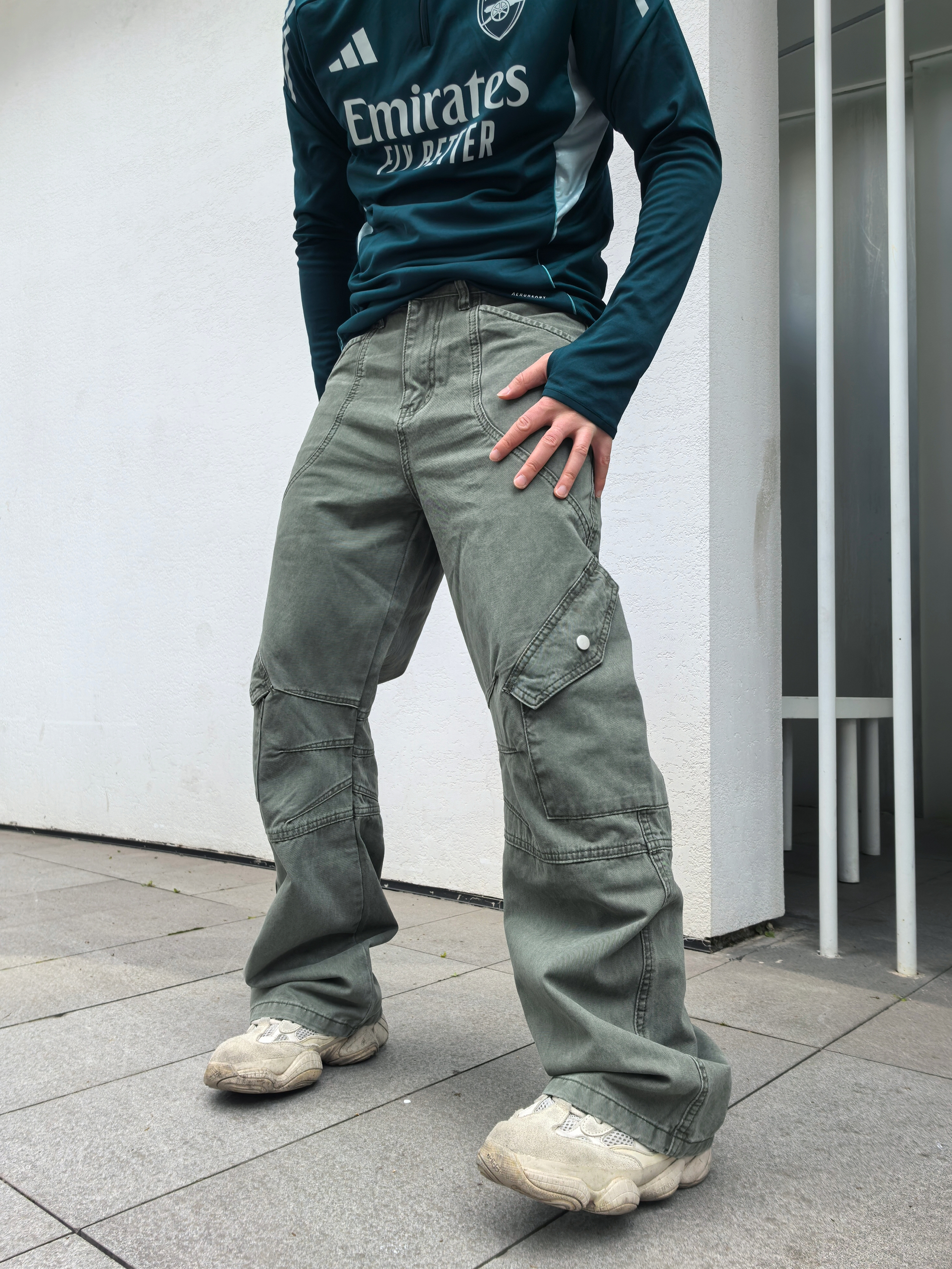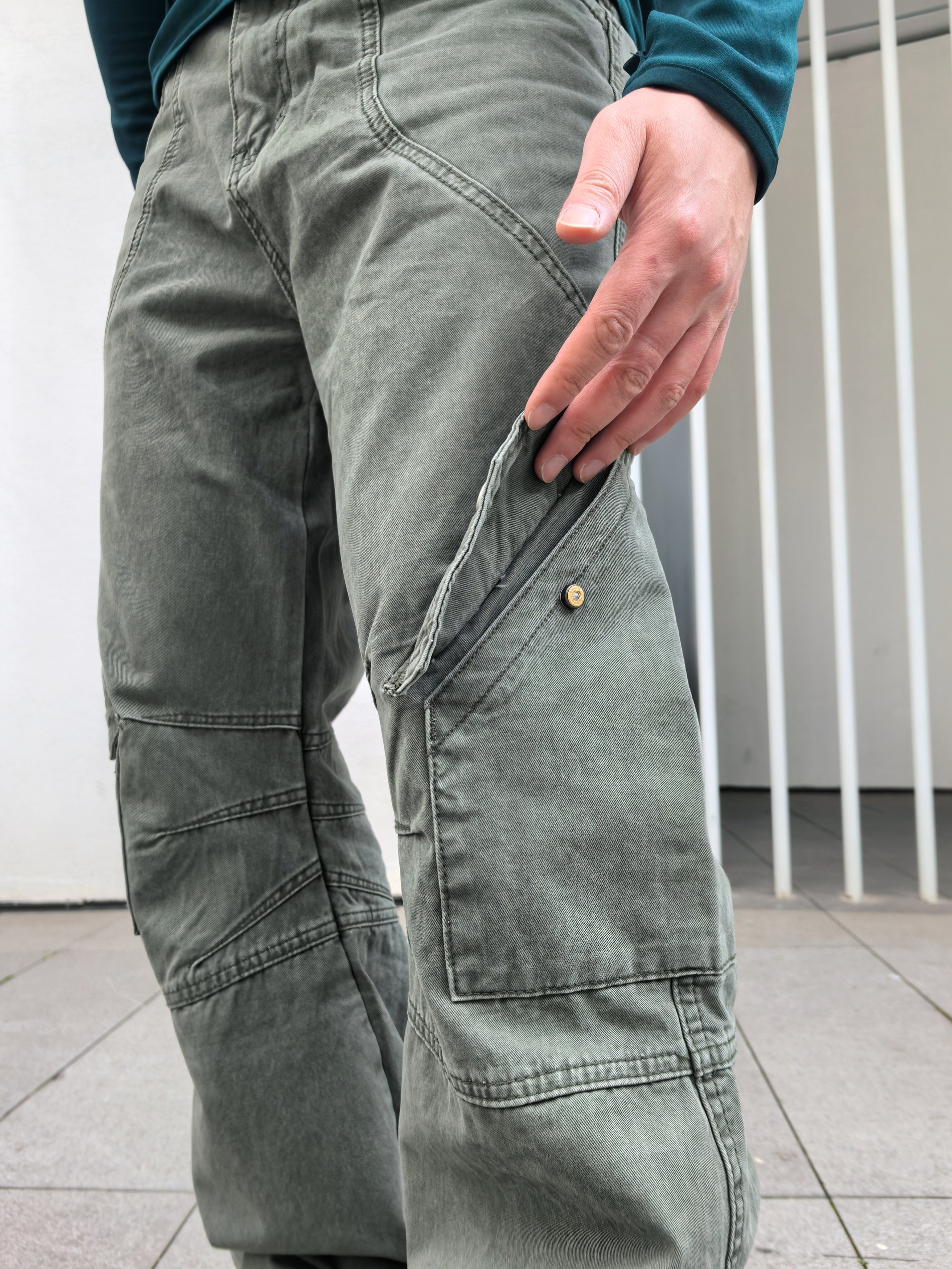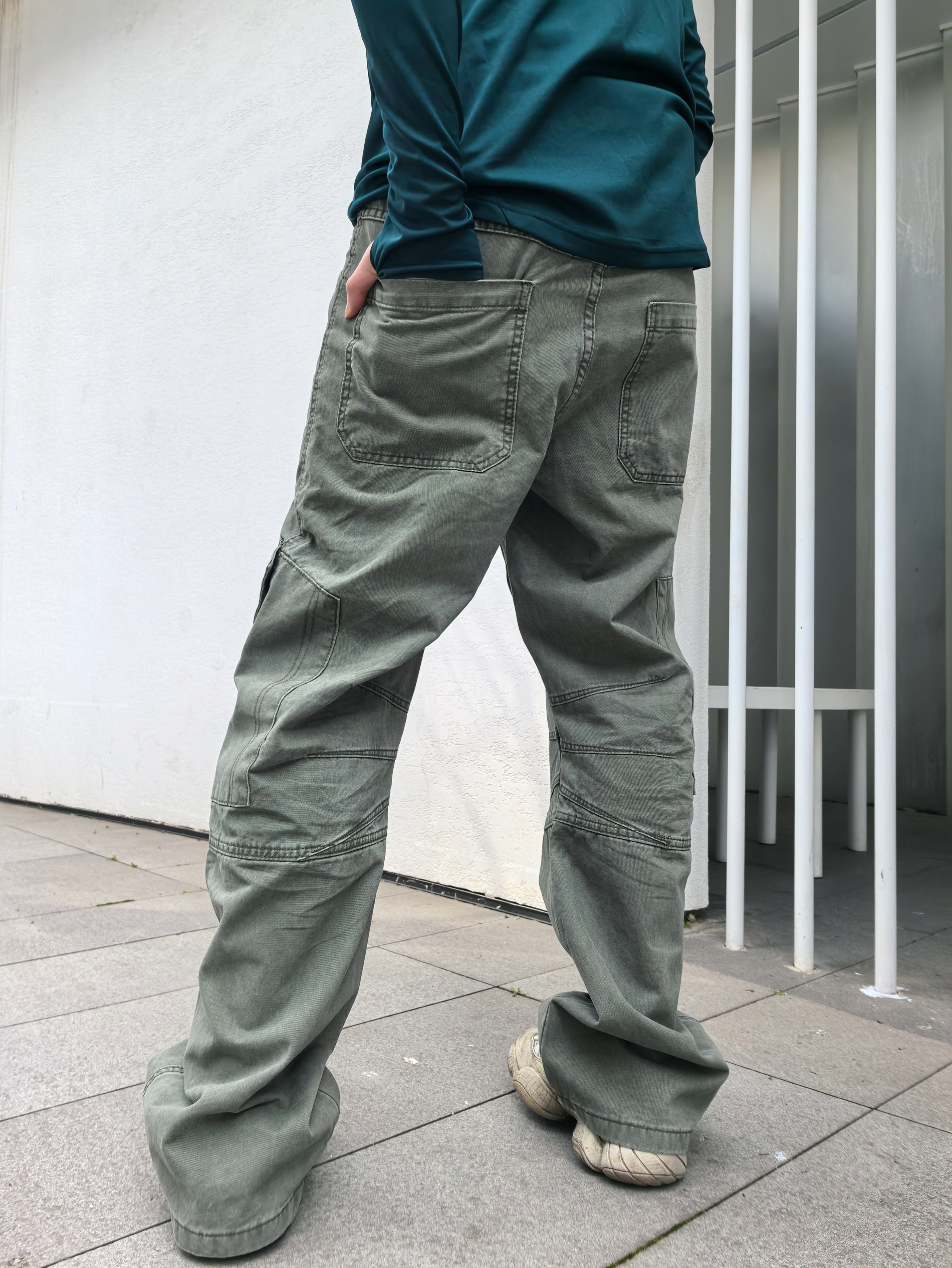 感觉今年春天绿色和我杠上了! 🏃今天上身这条FIVE CM的工装裤,版型是微喇阔腿的,不用担心小腿粗,它的版型刚好能够遮住 美式复古感挺到位的,近看会有一点点做旧水洗感,但不是特别明显,挺括有型,侧边大口袋+按扣设计,自带街头痞帅感 👾我随便搭了个运动长袖以及老爹鞋就很出片,如果是搭复古风的短T效果会更好些 🏷️我的身高175体重135,穿的XL码,宽松