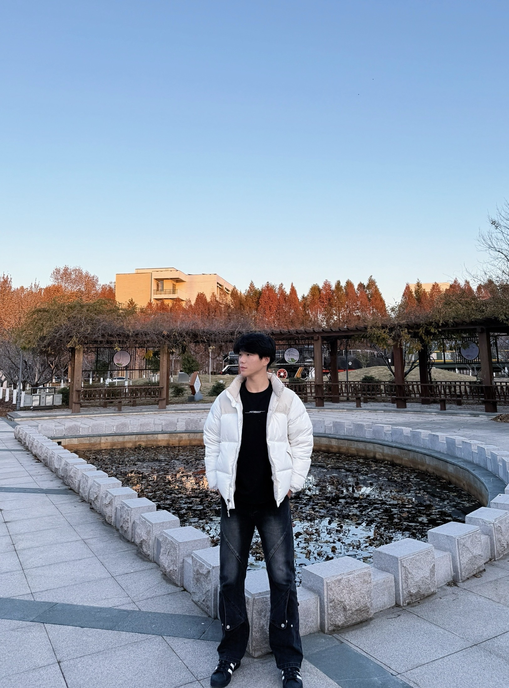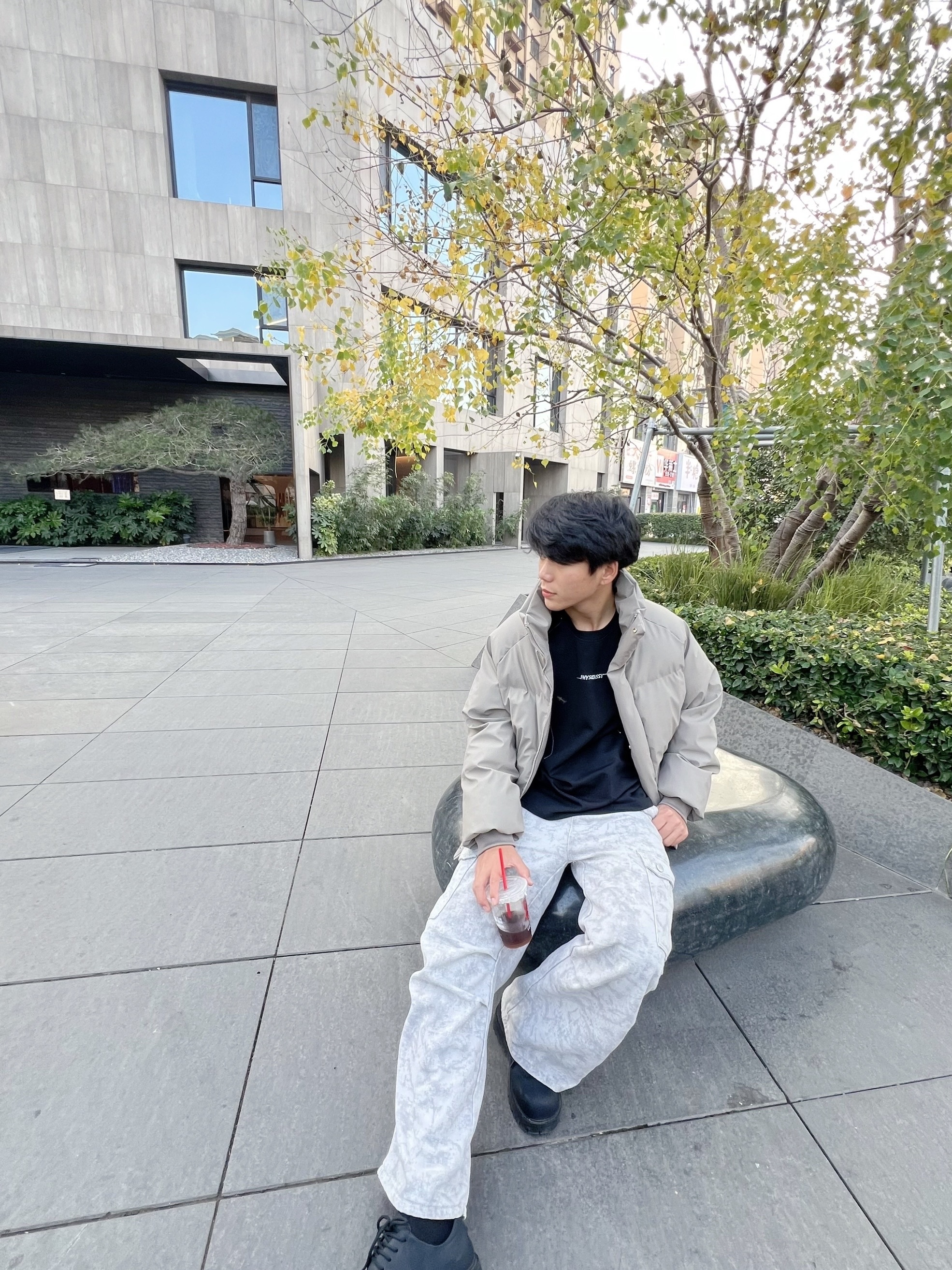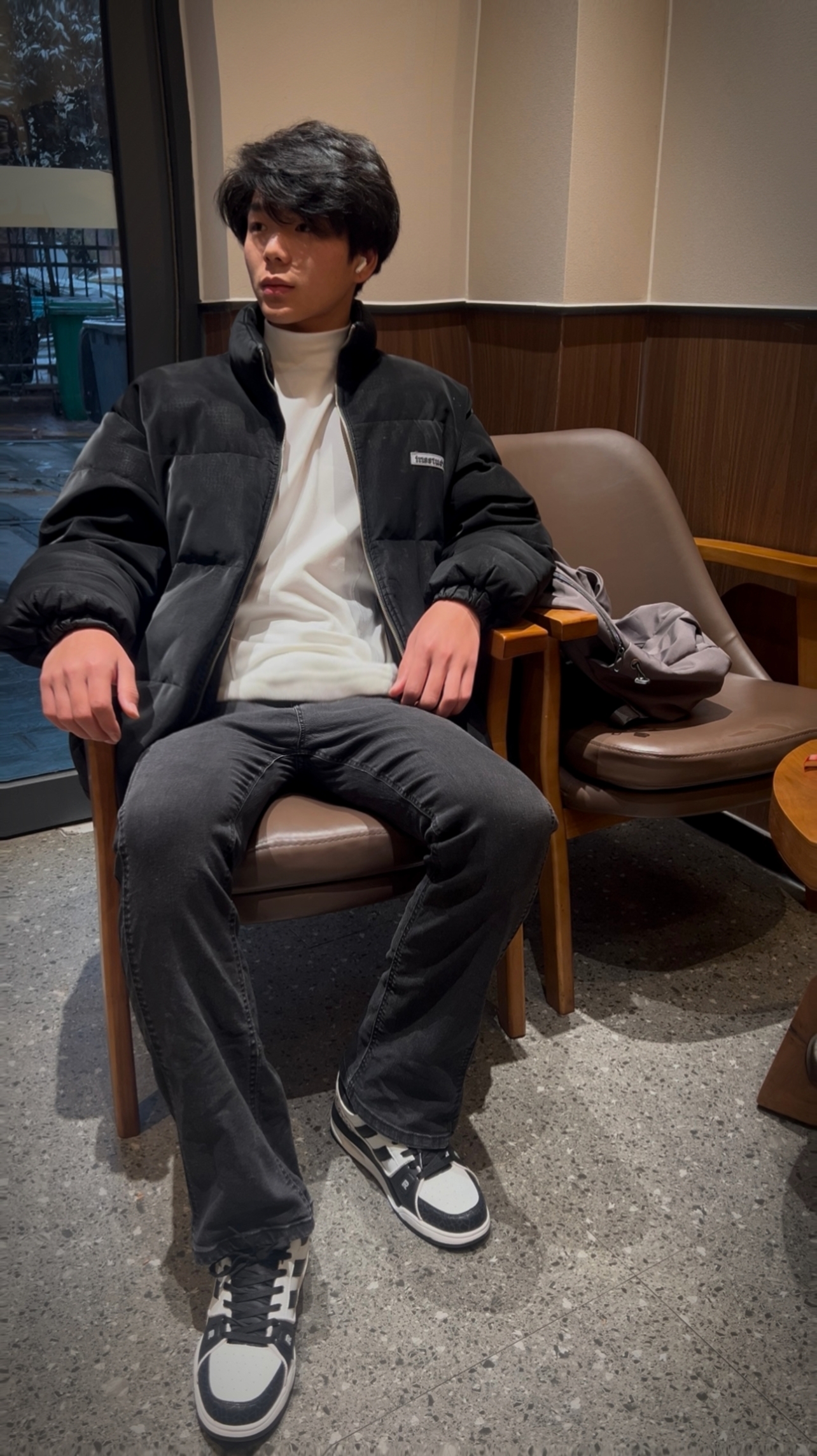 上身这件深灰色加绒夹克,面料厚实又有质感,内里的绒毛软乎乎的,贴身穿很暖和,完全不臃肿。连帽的设计休闲又随性,宽松的版型不挑身材,日常穿自在又舒服。