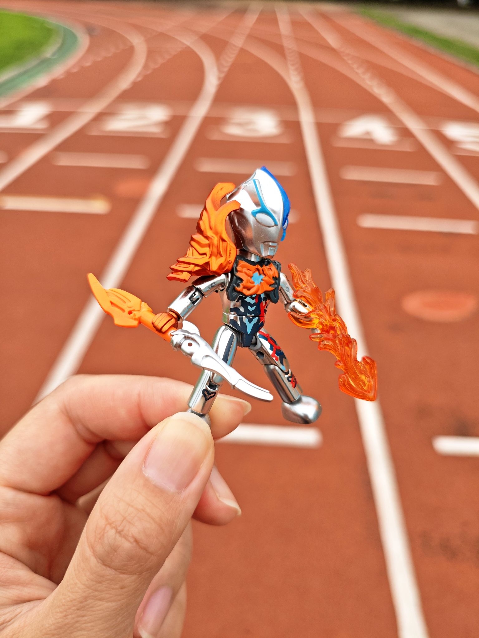 哇塞!随手拍的这几张也太有感觉了吧🥹 阳光、跑道,还有手里这只布莱泽,直接把次元壁给戳穿了! 火焰特效一搭,感觉下一秒就要在跑道上开大招了,校园限定奥特曼打卡get✅