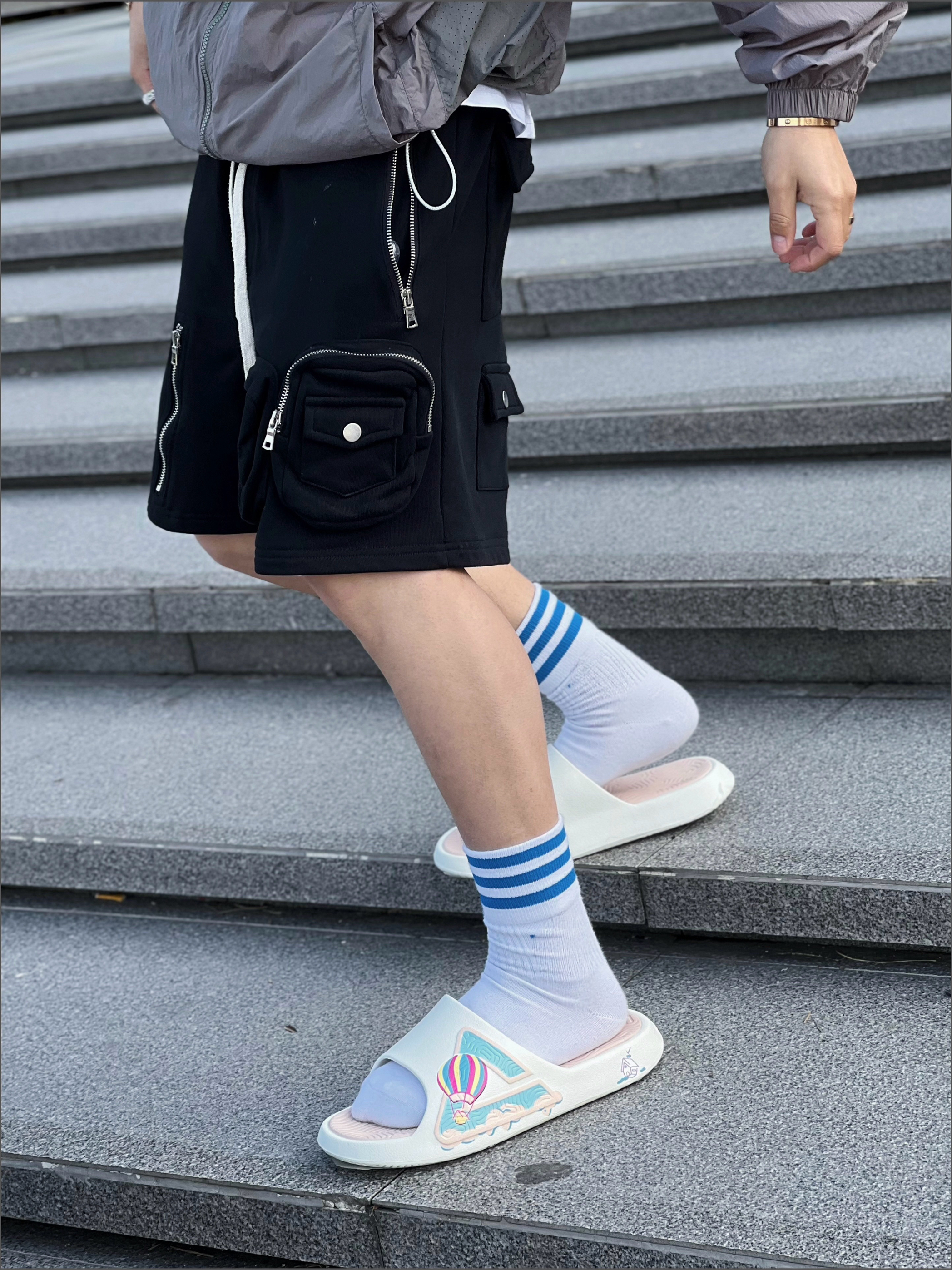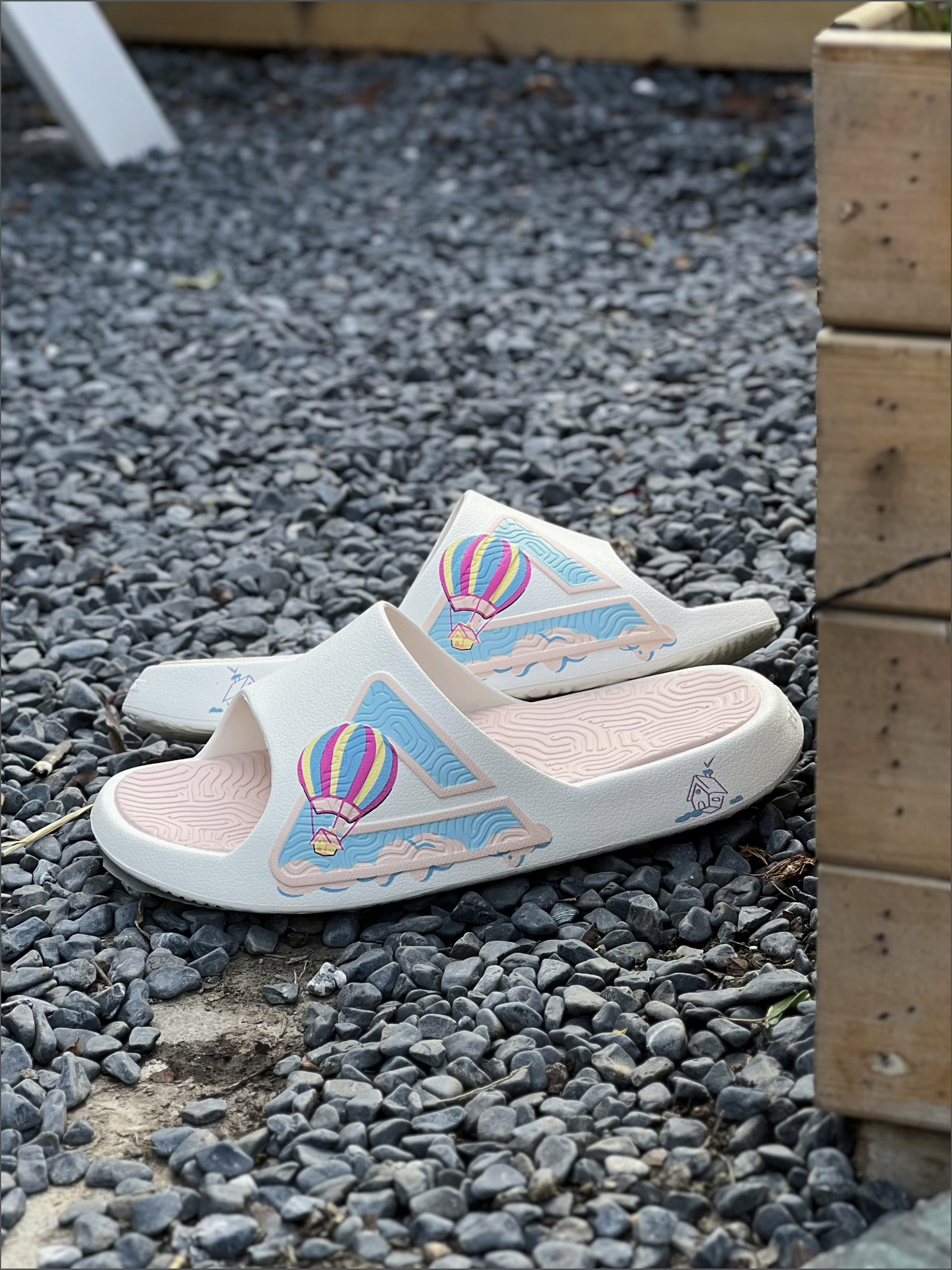 ‼️拒绝束缚!春天就要穿得又潮又舒服✅ 这双匹克 告白气球🎈 拖鞋太会了!态极科技脚感软弹,卡通印花童趣拉满,厚底还能悄悄增高✨〽️ ⁉️ 灰拼色防晒衣+工装短裤,随性又显比例,配条纹长袜,街头氛围感直接拉满 不管是探店还是遛弯,这双拖鞋都能hold住,舒服到想焊在脚上! 🎈松弛别忘了穿上你的舒适度🩴