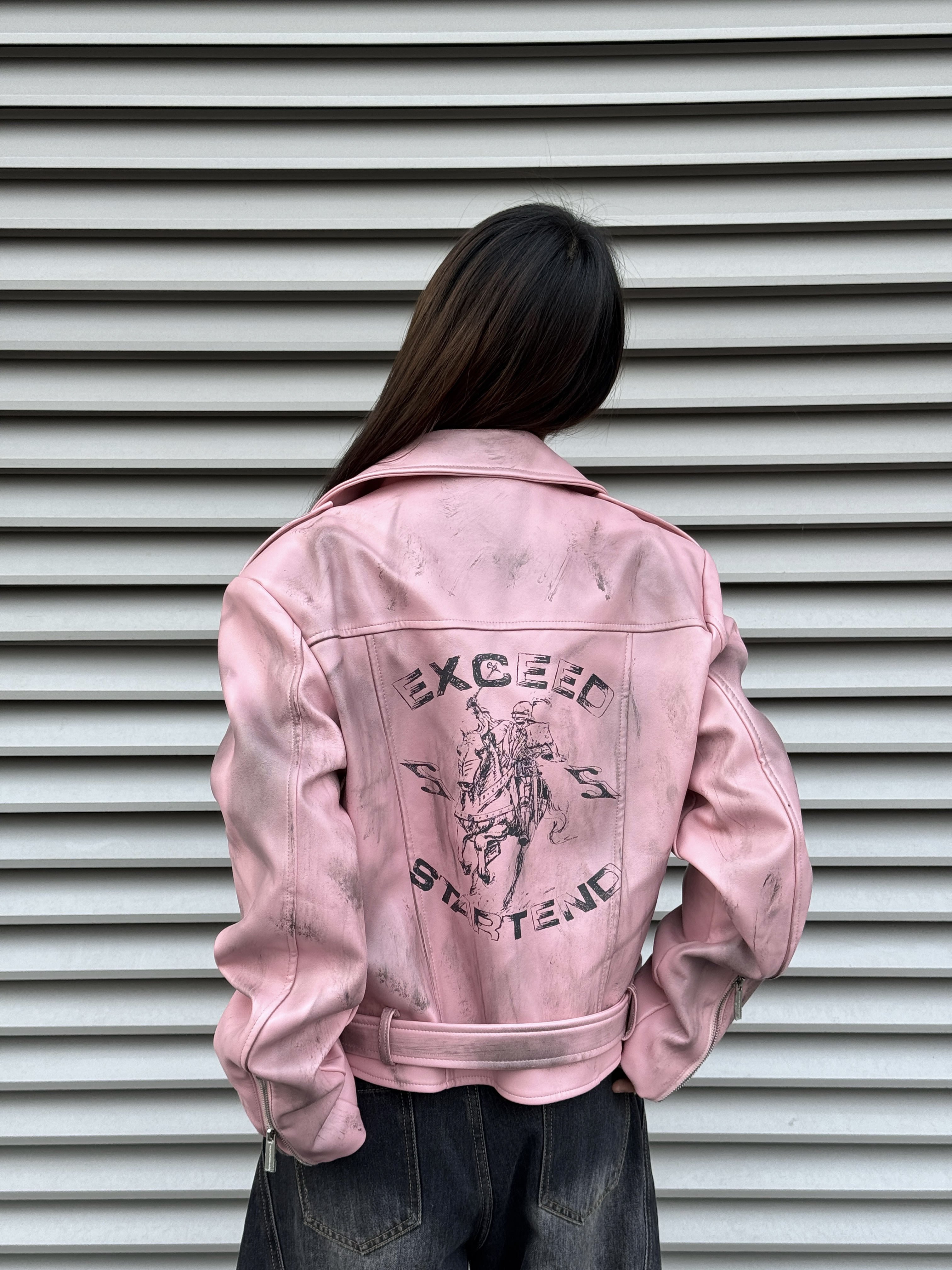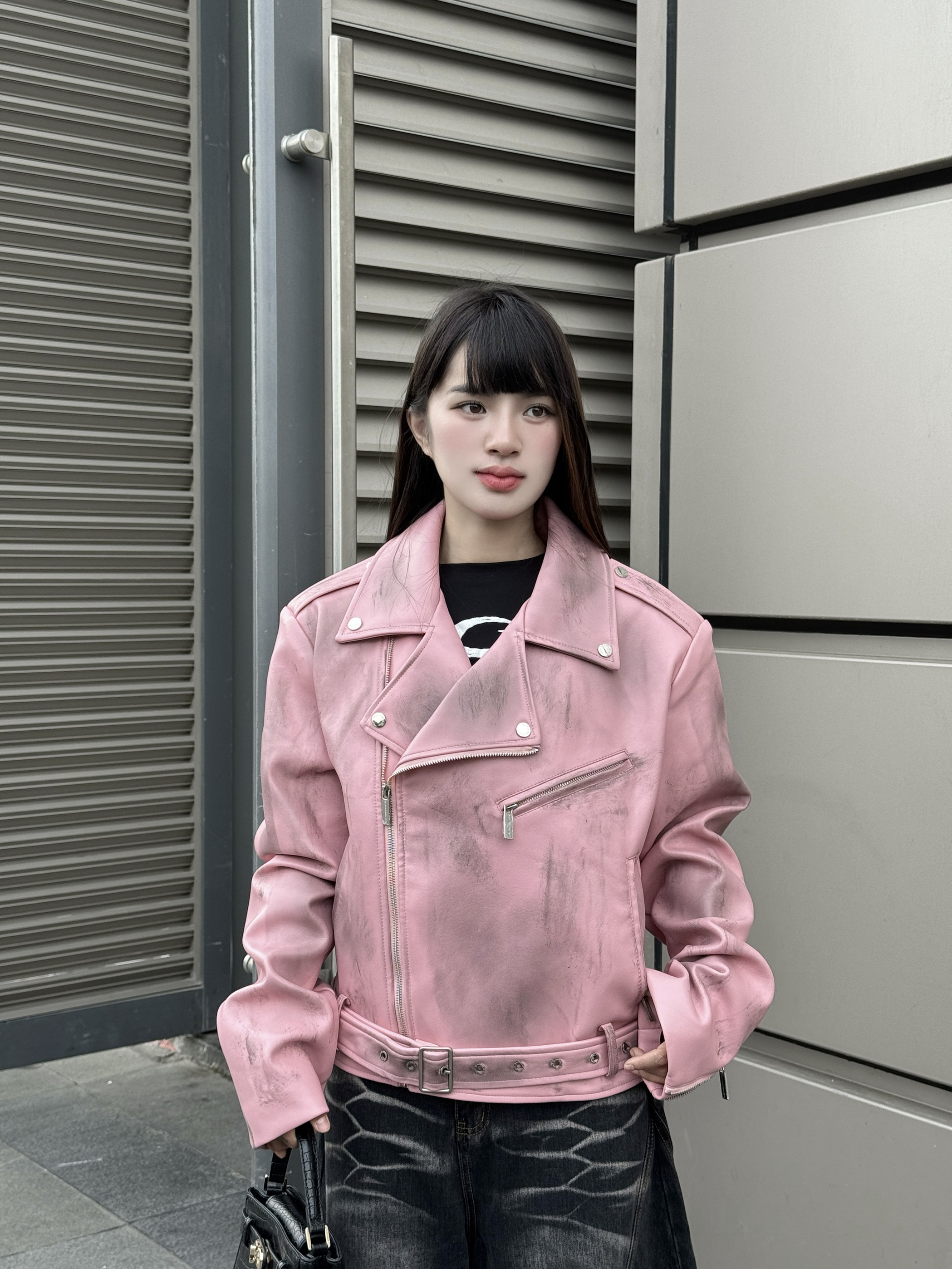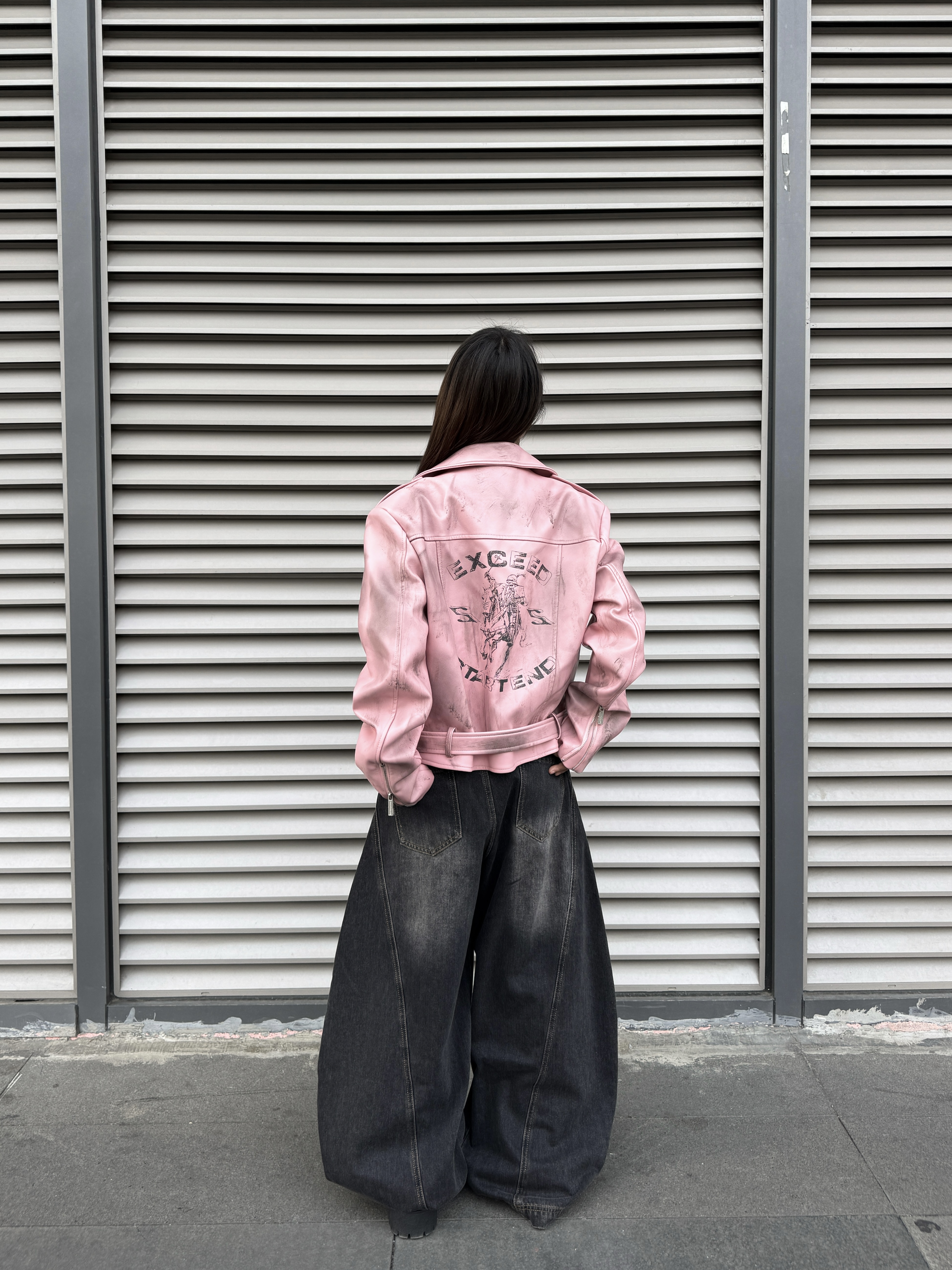 开春第一件本命穿搭🌸 这件粉色做旧皮衣真的绝了✨ 做旧纹理自带复古氛围 👖搭做旧阔腿牛仔裤 甜妹也能轻松驾驭的美式辣妹风 日常穿又酷又随性 春天的氛围感穿搭这不就来了嘛🍃
