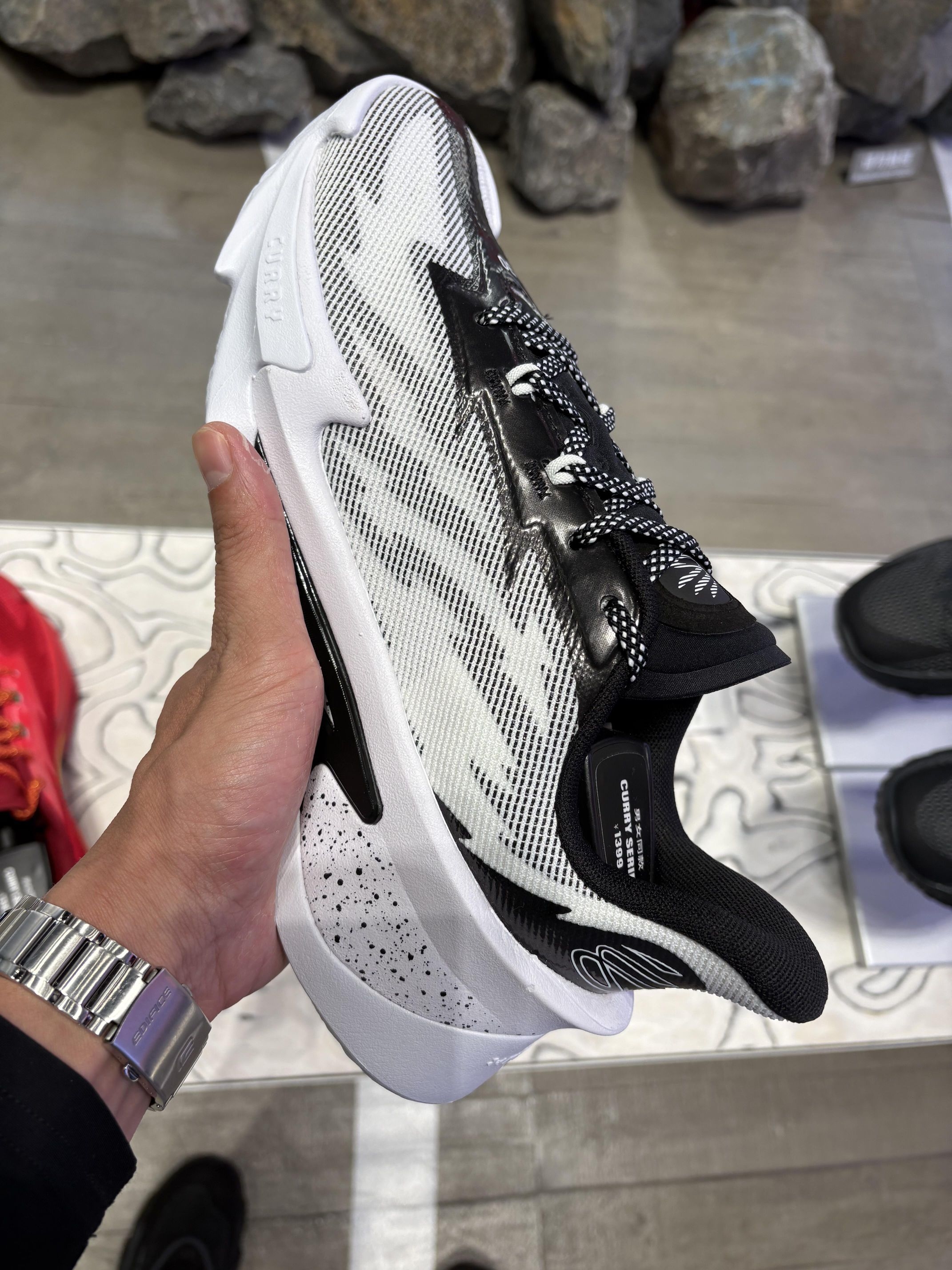 🏀库里13代篮球鞋,黑白配色超百搭,网面材质透气又轻便,长时间运动也不闷脚!鞋底防滑耐磨,抓地力强,适合高强度实战场景⚡。中底缓震回弹,减震效果好,青少年和学生党都能轻松驾驭