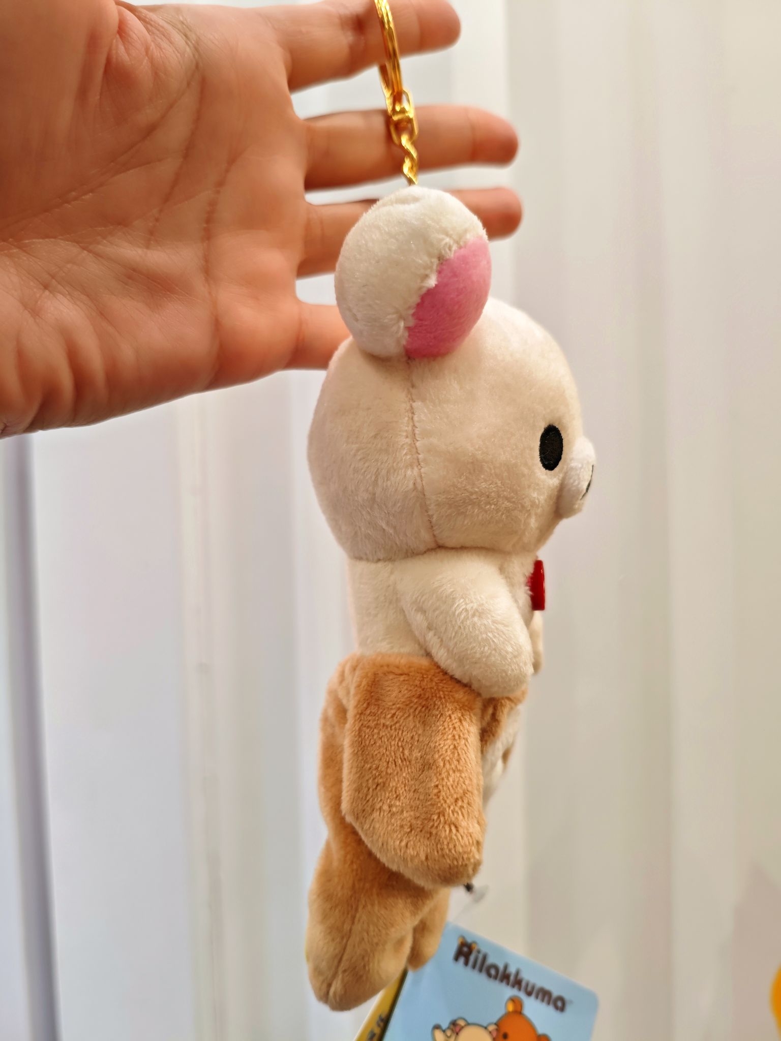 新入手的轻松熊挂件也太戏精了~ 小白熊 Korilakkuma 偷偷套上了棕熊 Rilakkuma 的连体裤, 结果没穿稳直接“半滑落”, 圆滚滚的肚子都露出来了, 又憨又治愈!✨ 挂在包上每天看一次笑一次