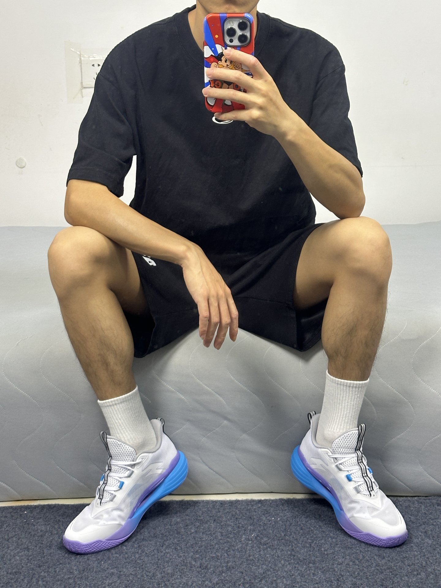 多色融合确实帅 即视感马上就来了 鞋底橡胶材质 抓地力拉满 鞋型很贴合脚型 包裹精致不挤脚 跑跑跳跳脚在鞋里不晃 日常搭配也很好看