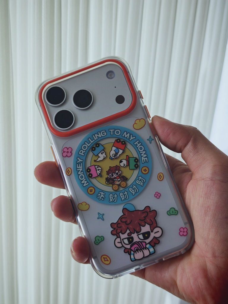 给iPhone17 Pro换了个手感非常好的手机壳,这款魅族 PANDAER 超级马力妙磁抗菌手机壳做工真精致啊,和手机严丝合缝的贴合度挺高,而且边框还是软的,套上取下来都很方便,防滑效果也挺好。 还有把拍照按键也专门包进去了,拍照触控的时候也非常灵敏,开车的时候放支架上磁吸也非常强,当然最喜欢这个手机壳的图案,来财来财我要发财