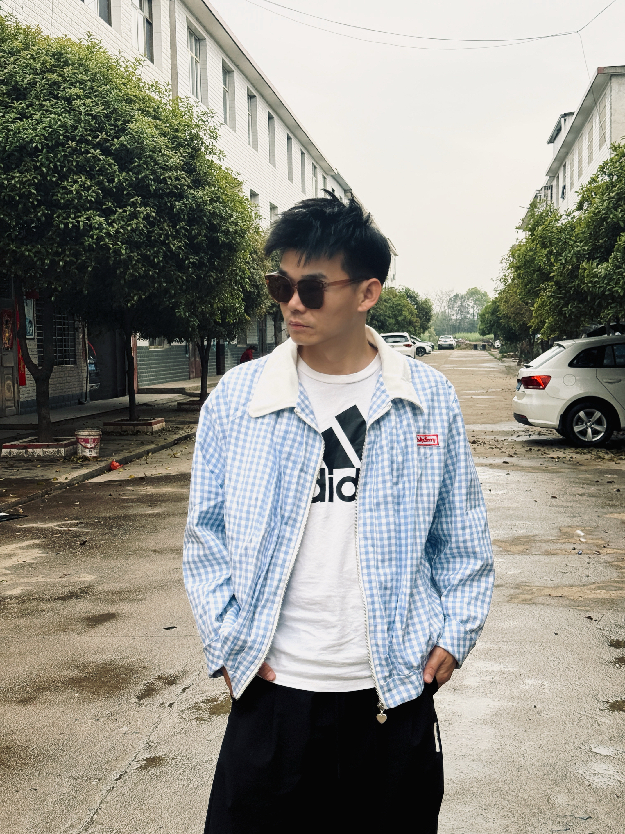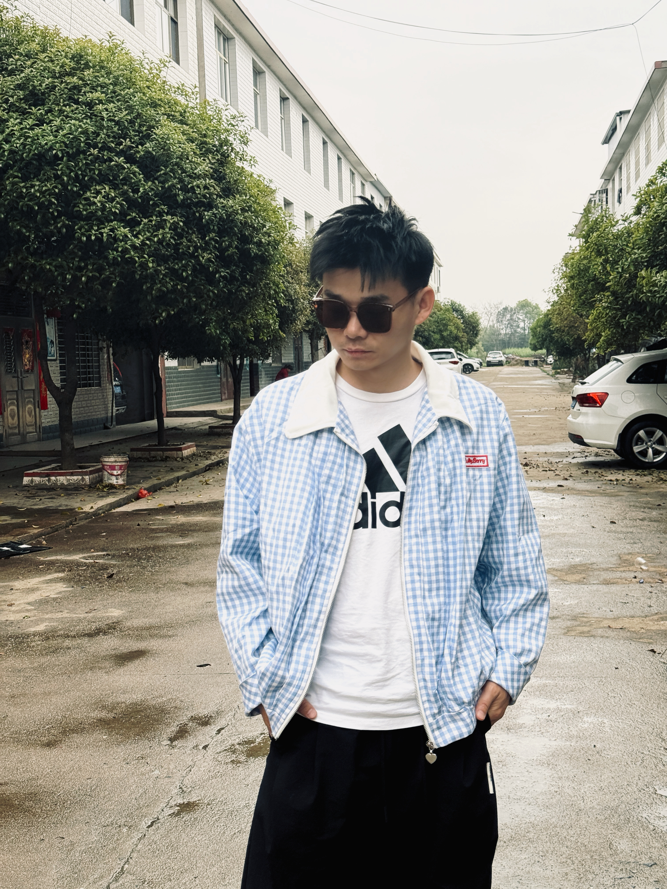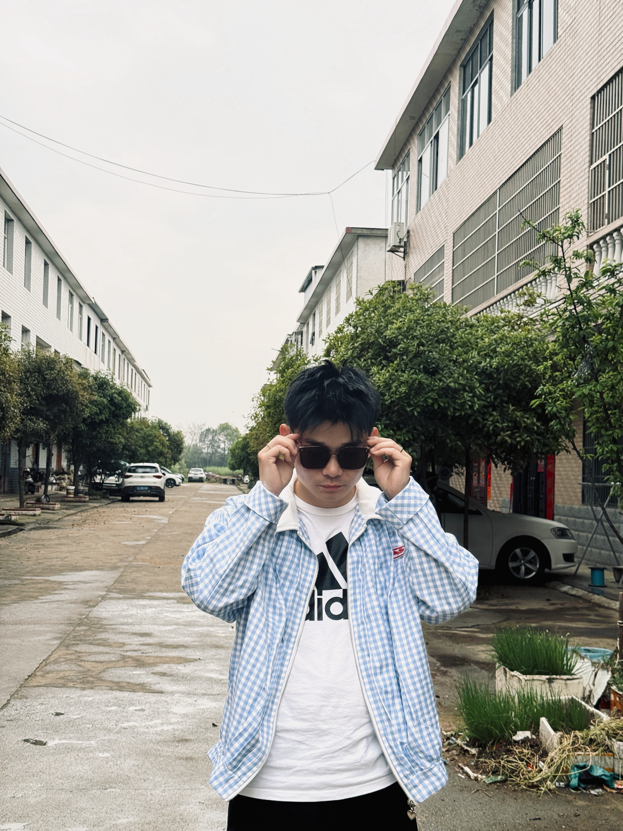 阴雨天的乡村小巷,也能穿出松弛感穿搭✨ 蓝白格纹夹克自带清爽少年气,内搭阿迪达斯经典白T,复古与运动感完美碰撞。 墨镜一戴,氛围感直接拉满,日常出街、通勤都适配,把随性时髦焊在身上,简单搭配也能穿出专属风格。 谁懂啊!格纹夹克+阿迪达斯真的太绝了📸 蓝白棋盘格自带复古滤镜,内搭经典大logo白T,运动休闲感拉满。 阴雨天的乡村小巷当背景,墨镜加持下,少年感与酷感并存,一套搞定所有日常场景,穿搭的...