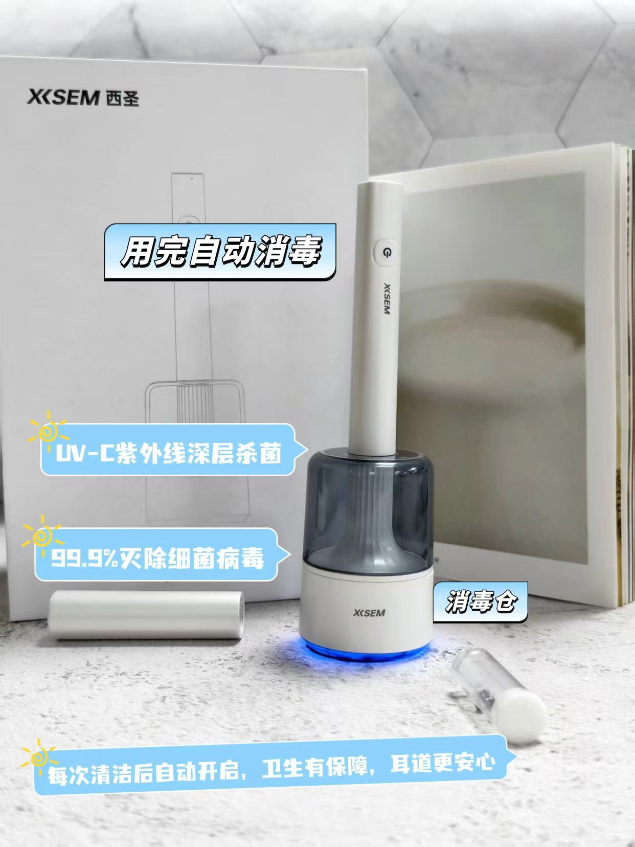 用完会自动UV紫外线消菌