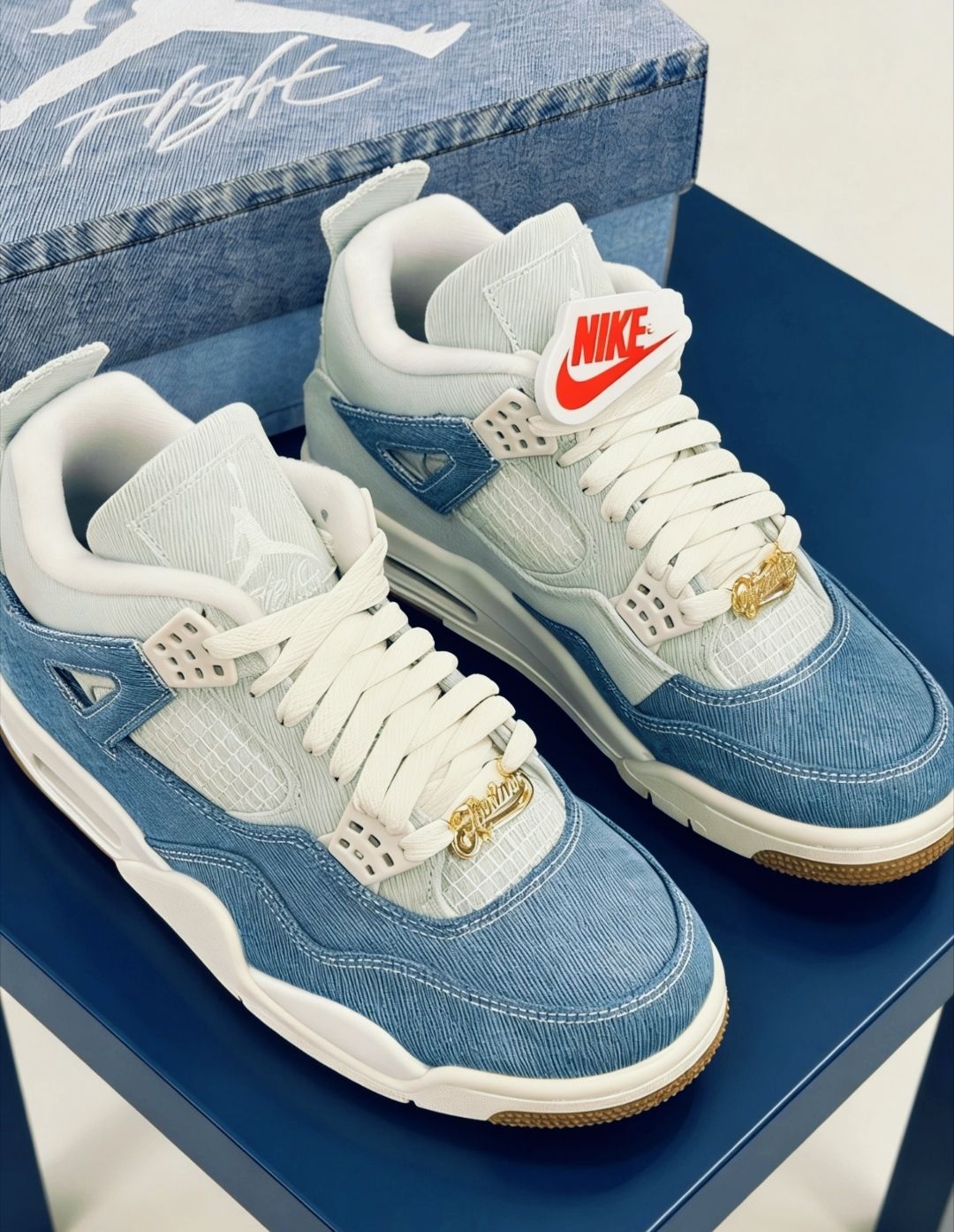 浅蓝牛仔×奶白基底 金色鞋扣点缀,低调又显贵 经典AJ4鞋型,上脚显腿长 日常通勤、出街穿搭都能打 鞋盒同色系牛仔设计,细节感拉满 属于闭眼入不踩雷的颜值款 #AJ #AJ4 #球鞋 #潮鞋 #男生穿搭 #夏日穿搭 #牛仔AJ4 #AirJordan #球鞋控 #好物分享