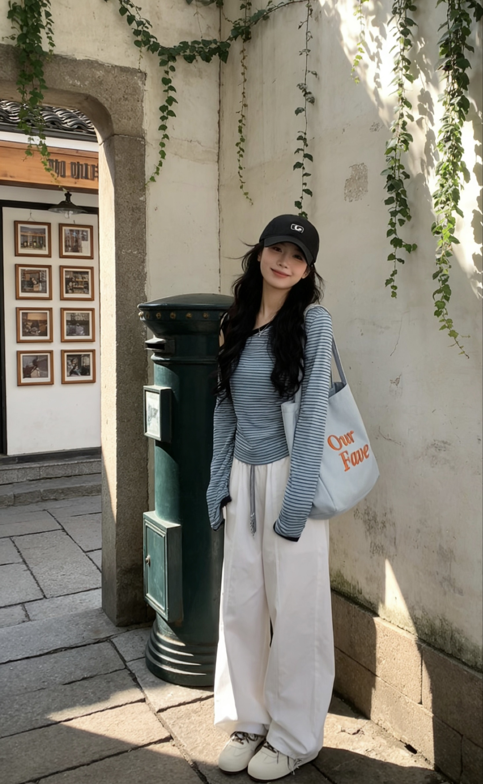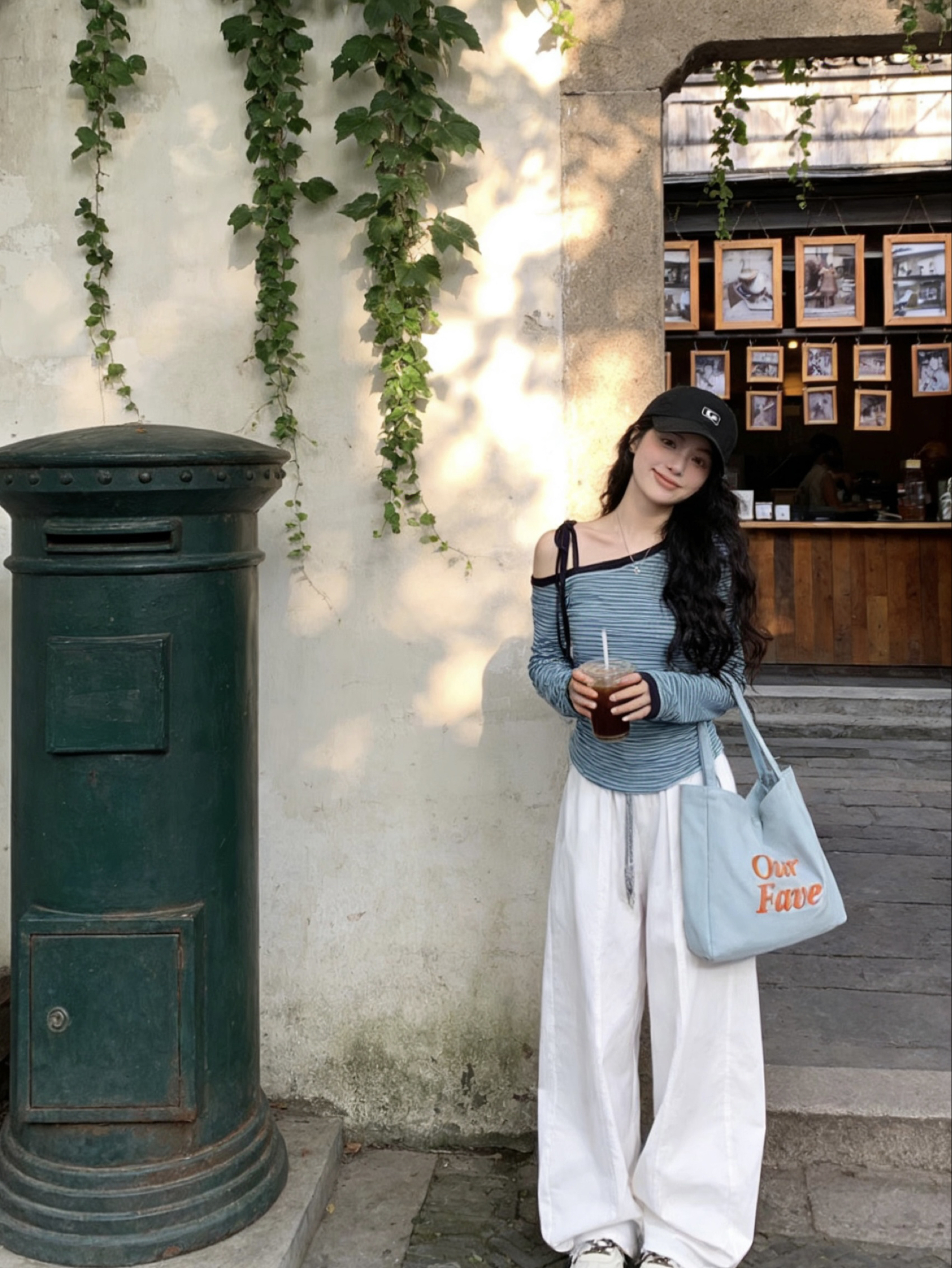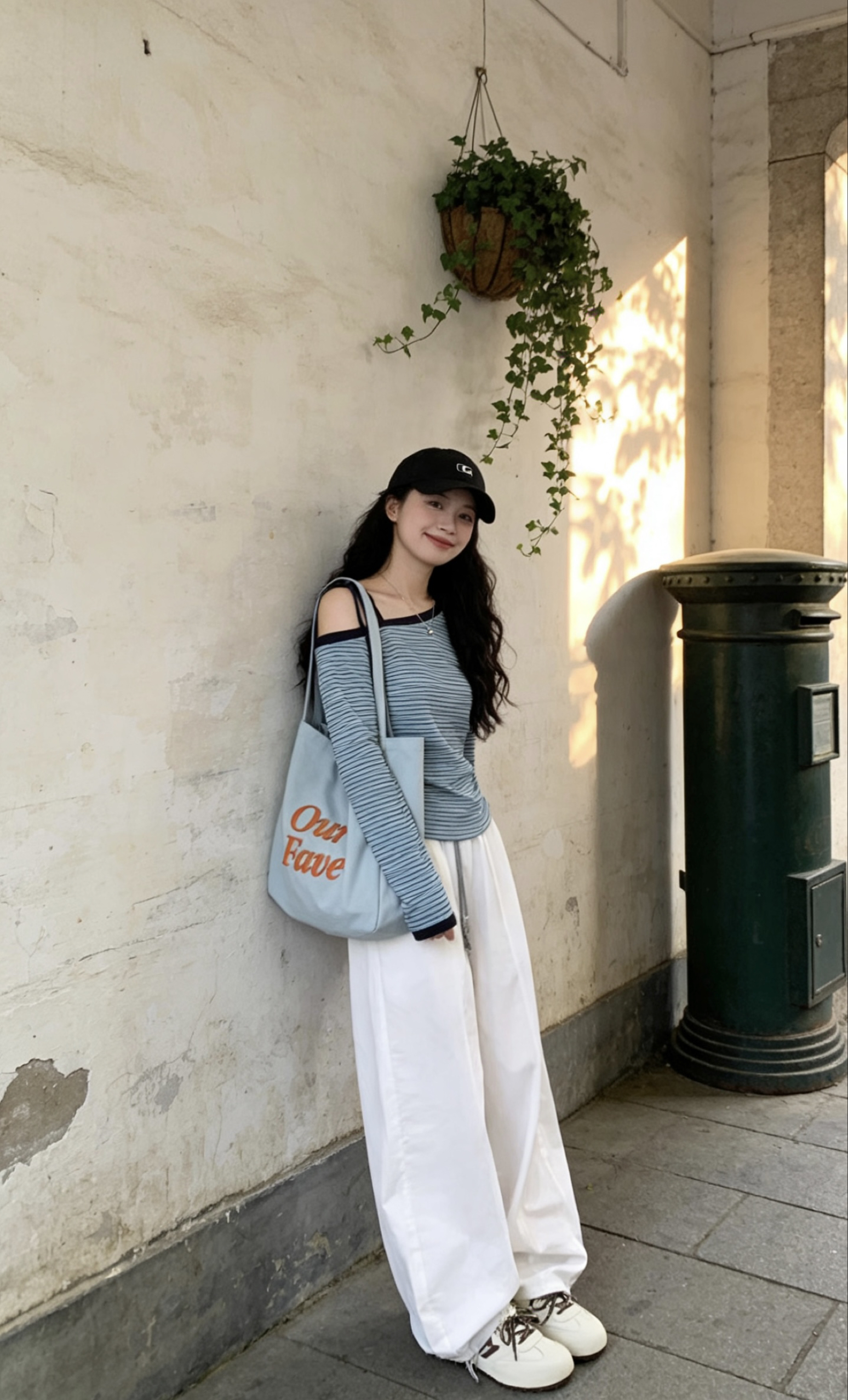 谁的早春穿搭还没被这套韩系松弛感狠狠拿捏住! 蓝白条纹斜肩上衣真的太会了!斜肩设计小露香肩,绑带细节又甜又辣,修身款把腰臀曲线完美勾勒,蓝白条纹清爽到骨子里,单穿就很有氛围感~ 搭配这条白色阔腿工装裤直接封神!垂坠感拉满,腰头抽绳设计随性又显瘦,梨形身材直接焊在身上,藏肉又显腿长,走路带风的松弛感直接拉满! 👟鞋子选了米白拼棕德训鞋,复古感拉满,上脚软乎乎的,暴走一天都不累,和整套穿搭适配度10...