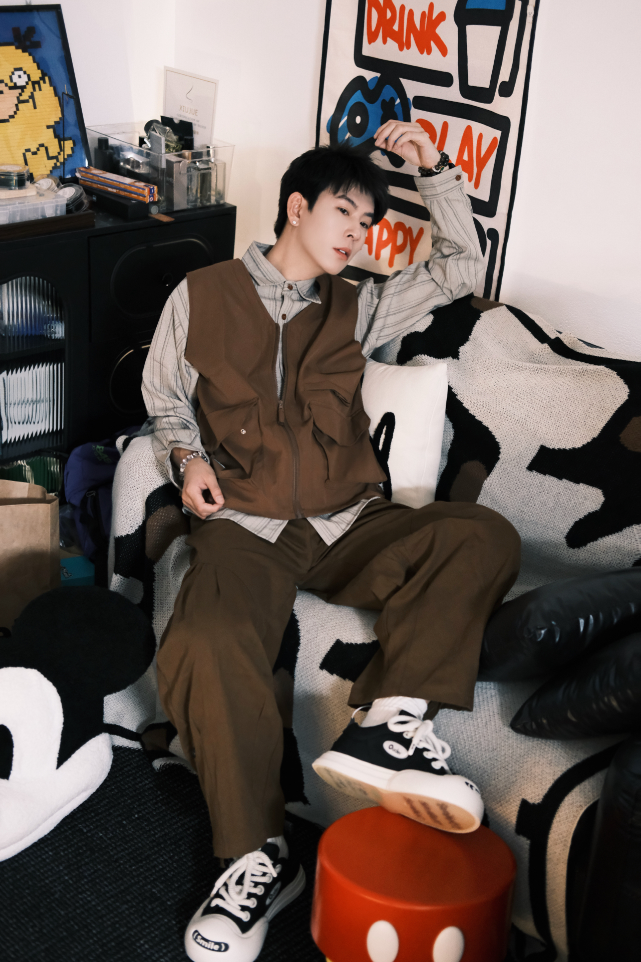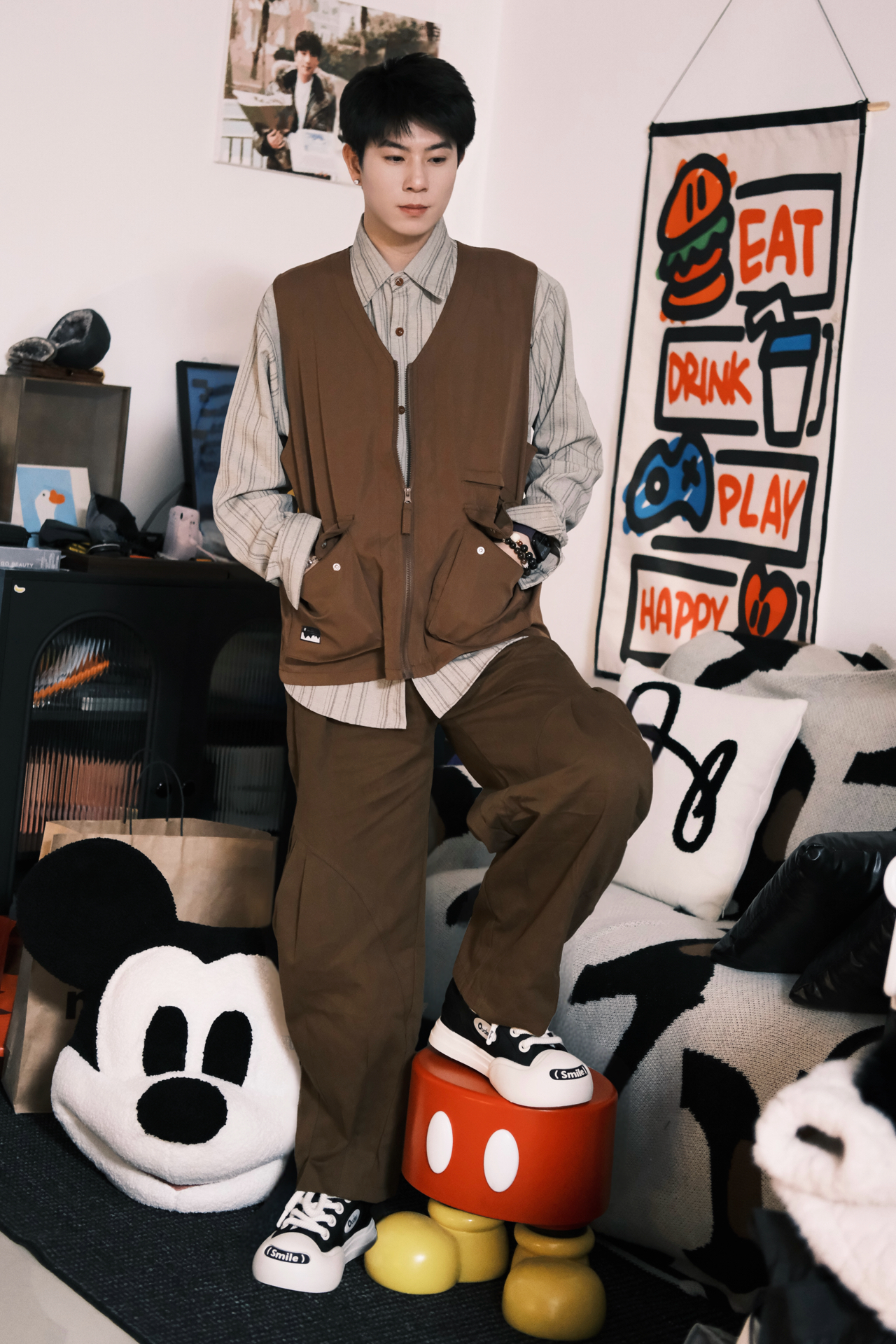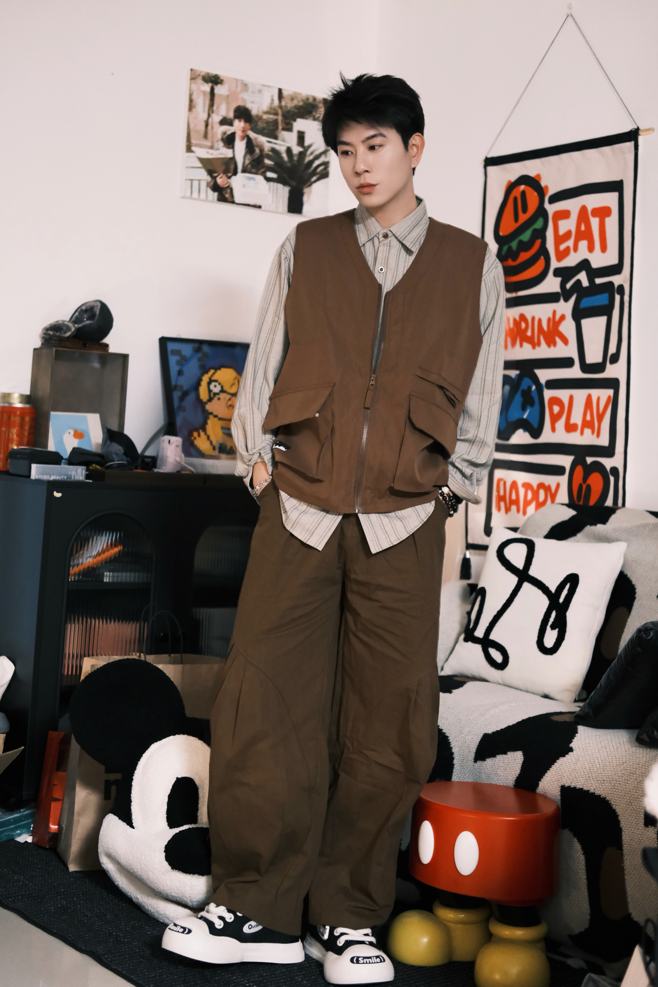 这套真的是我近期的本命穿搭了 完全是懒人福音,不用费脑就能穿出松弛感 条纹衬衫+同色系工装马甲,叠穿层次感直接拉满 同色系阔腿裤一穿,腿型不完美直接藏住 视觉上直接拉长比例,显高显瘦绝了 重点夸夸这双ouder开口笑 黑白配色经典又百搭,厚底设计悄悄增高 鞋头的smile标超可爱,上脚软乎乎的 日常通勤、早八上课穿都超合适 完全不磨脚,暴走一天都没问题 整个look就是那种不费力的时髦感 男生穿清...
