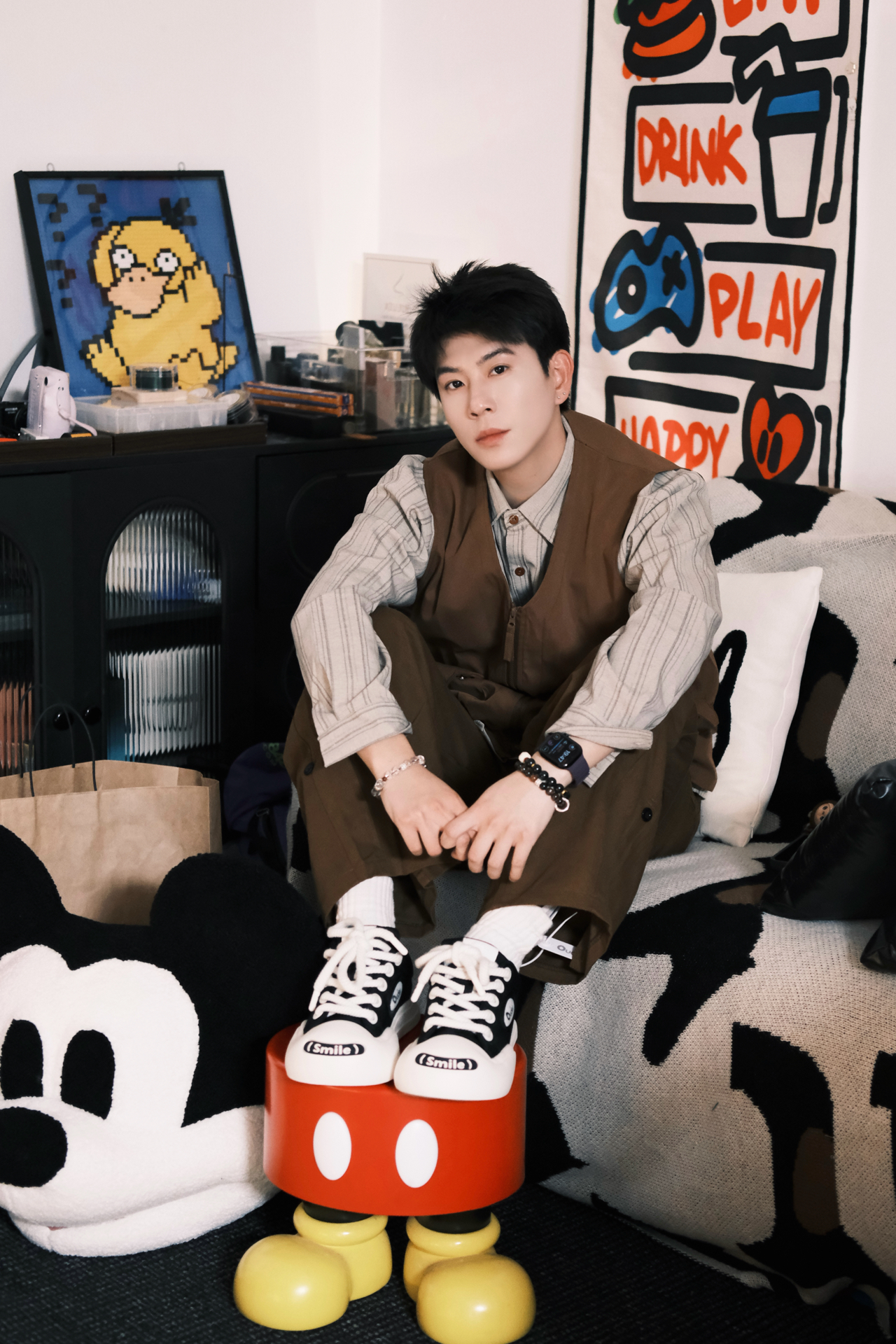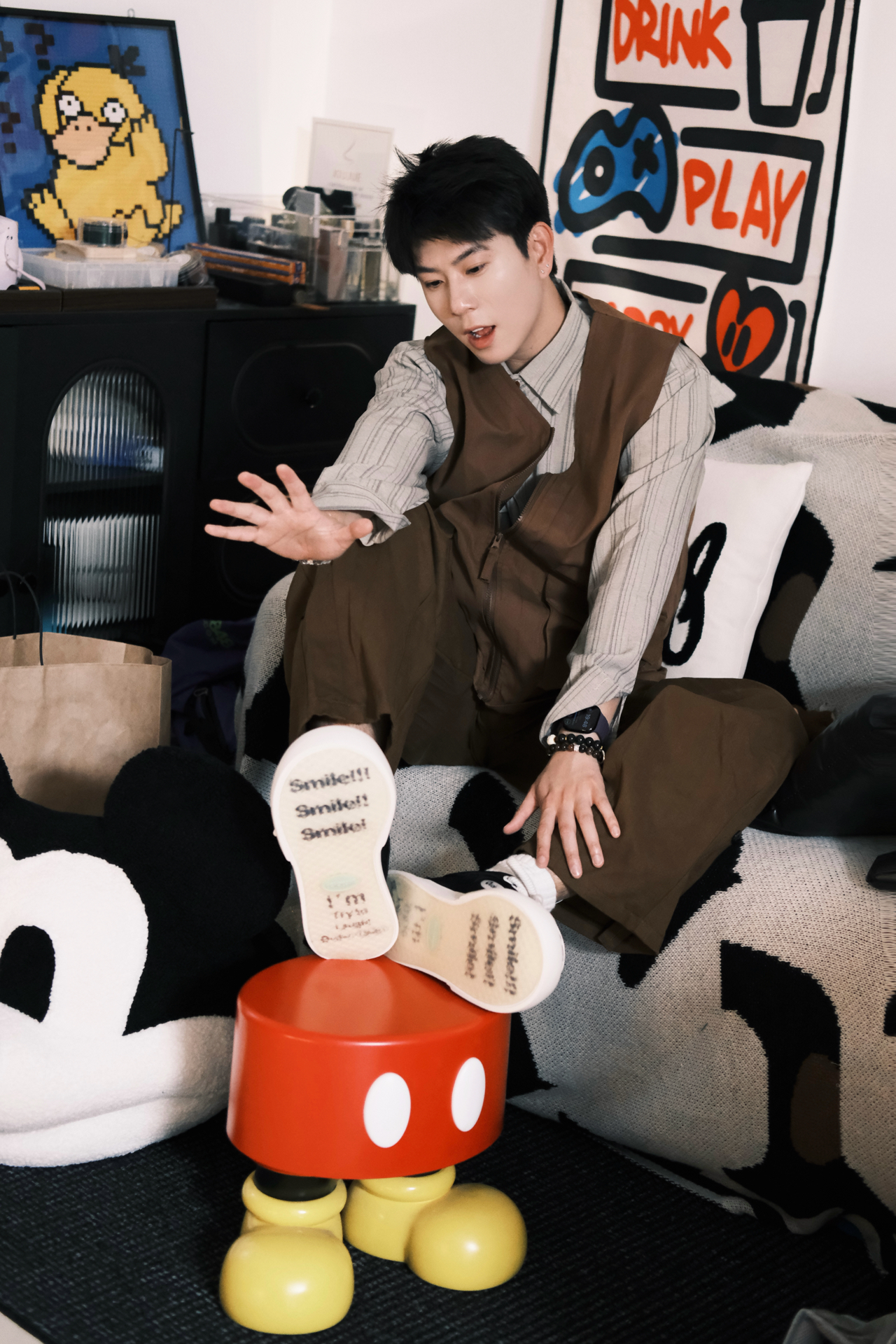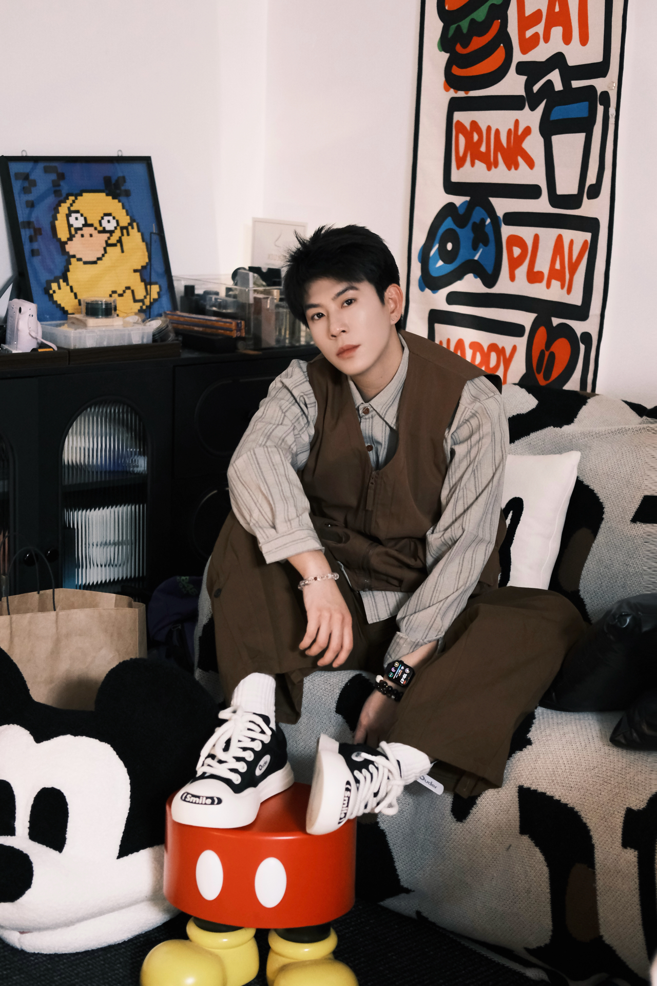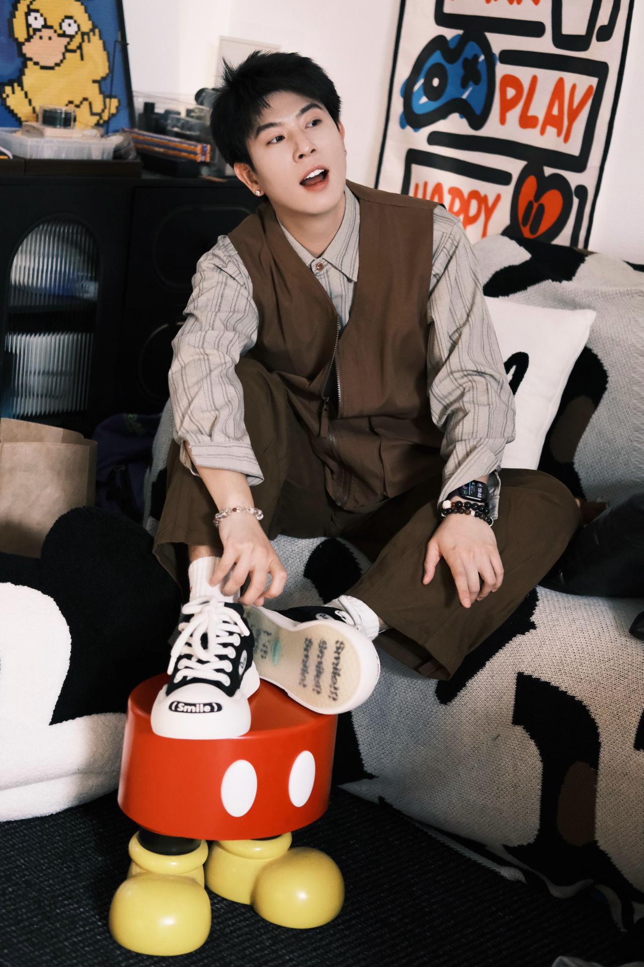 这套真的是我近期的本命穿搭了 完全是懒人福音,不用费脑就能穿出松弛感 条纹衬衫+同色系工装马甲,叠穿层次感直接拉满 同色系阔腿裤一穿,腿型不完美直接藏住 视觉上直接拉长比例,显高显瘦绝了 重点夸夸这双ouder开口笑 黑白配色经典又百搭,厚底设计悄悄增高 鞋头的smile标超可爱,上脚软乎乎的 日常通勤、早八上课穿都超合适 完全不磨脚,暴走一天都没问题 整个look就是那种不费力的时髦感 男生穿清...