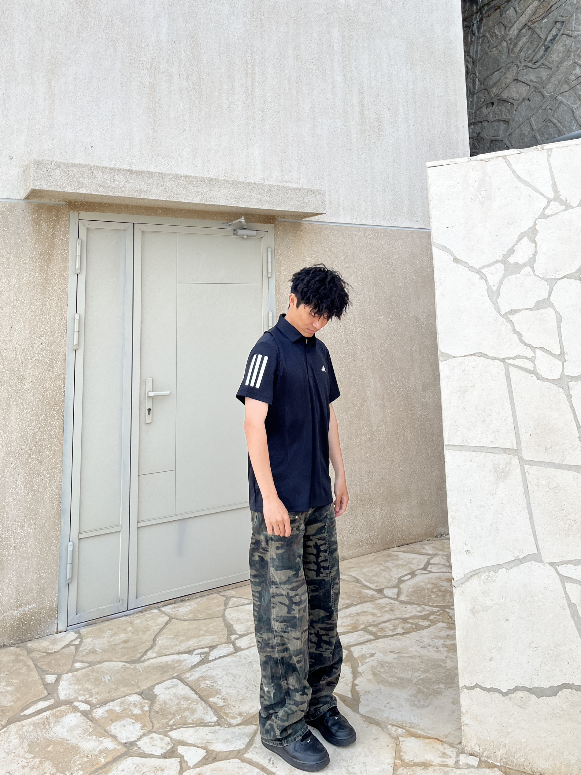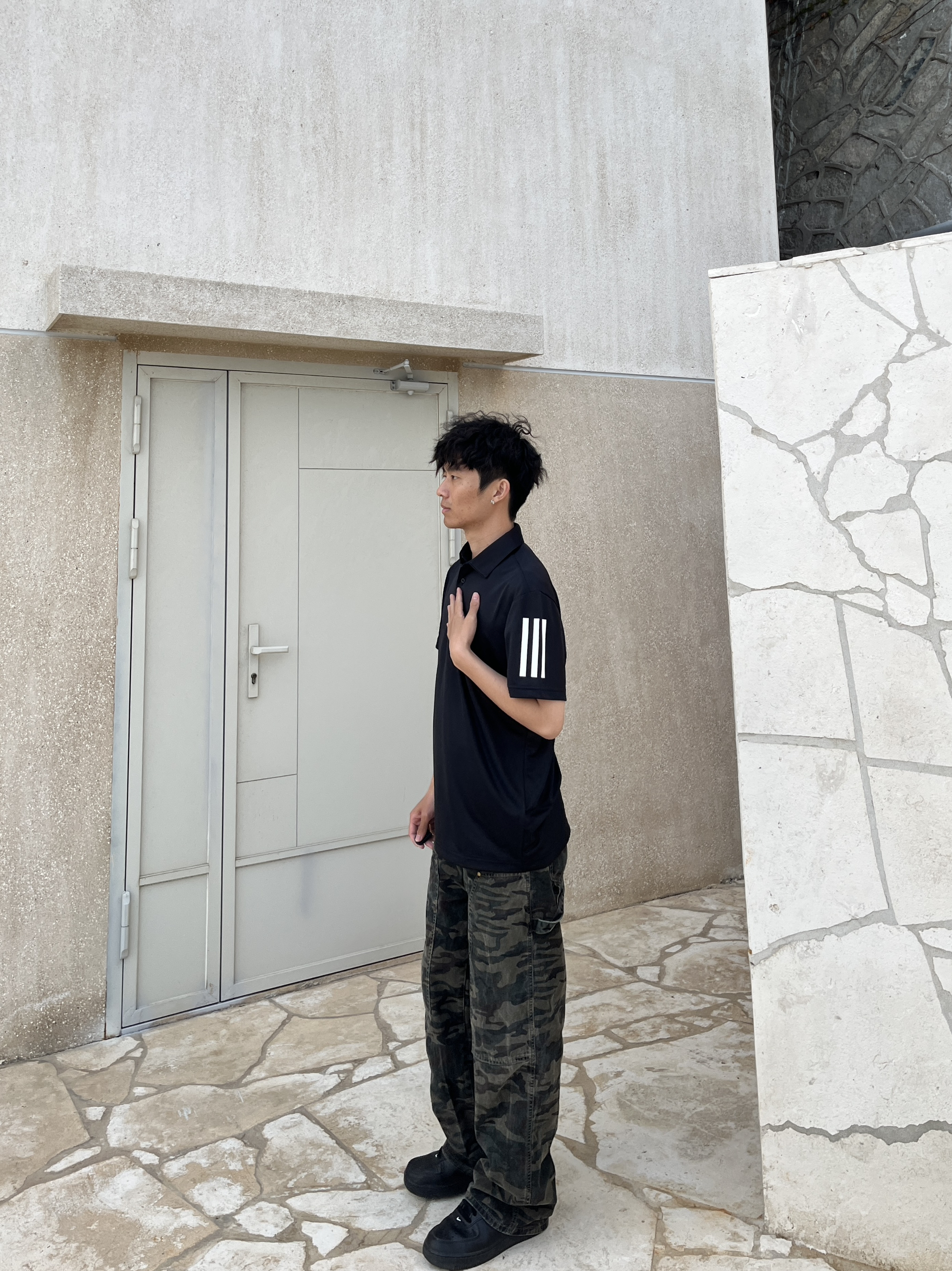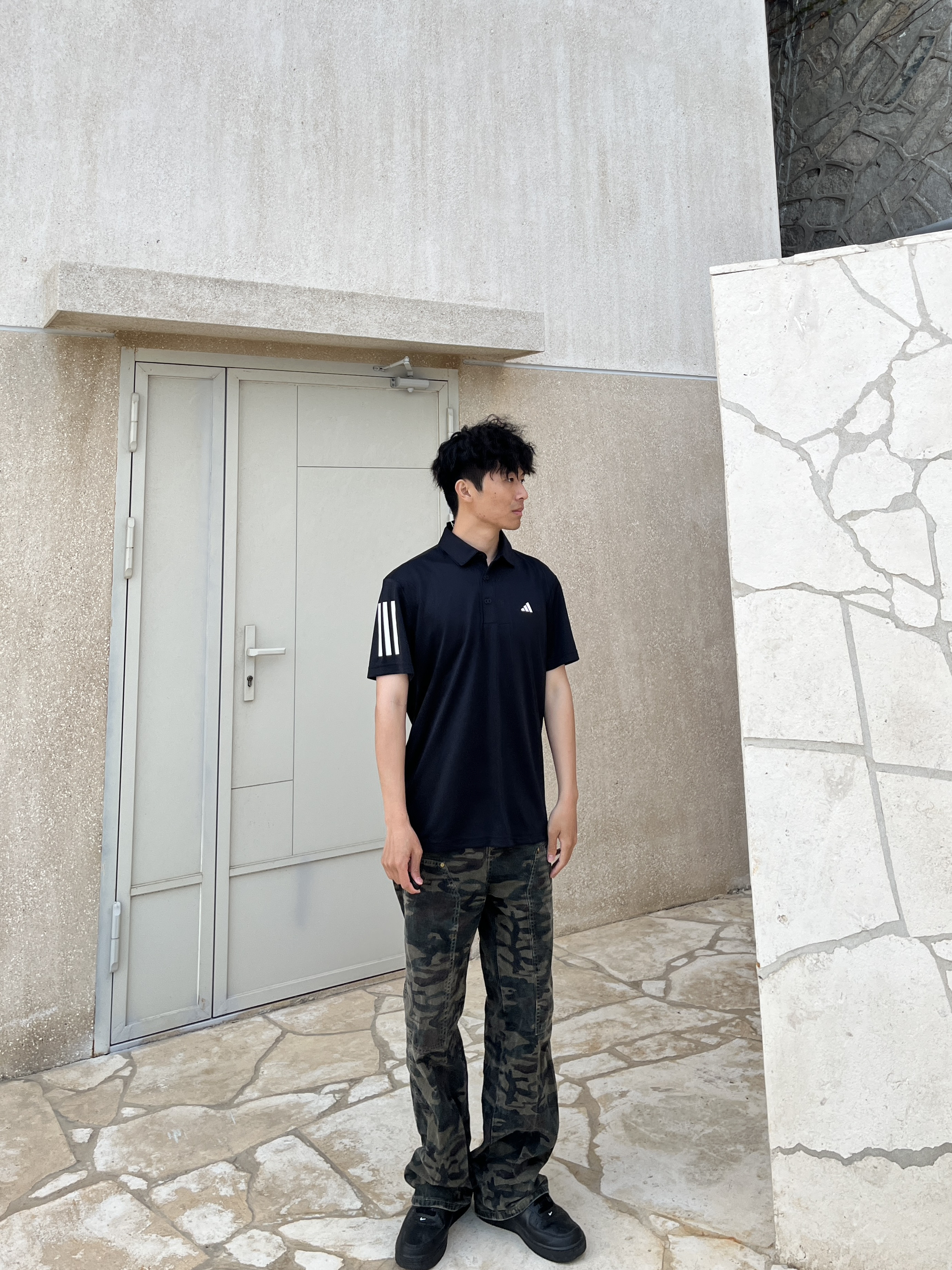 最近有点迷上POLO衫 今天买了阿迪达斯的POLO衫 短袖的然后手臂两侧有三条纹设计 胸前也有经典的阿迪达斯小标志 黑白配色真的很典又好搭配