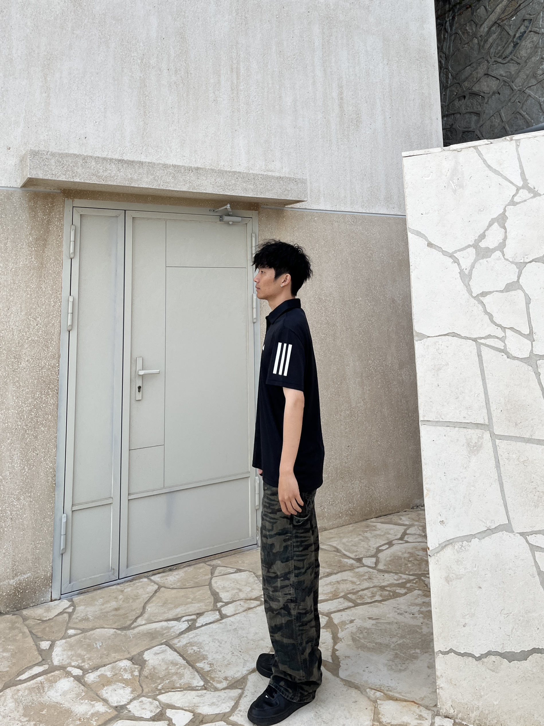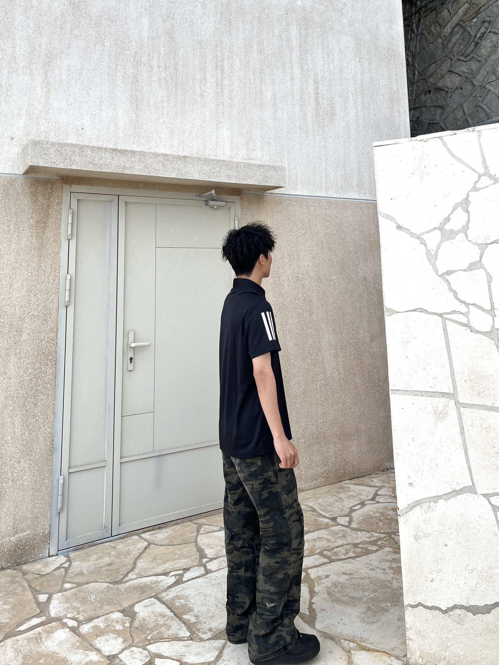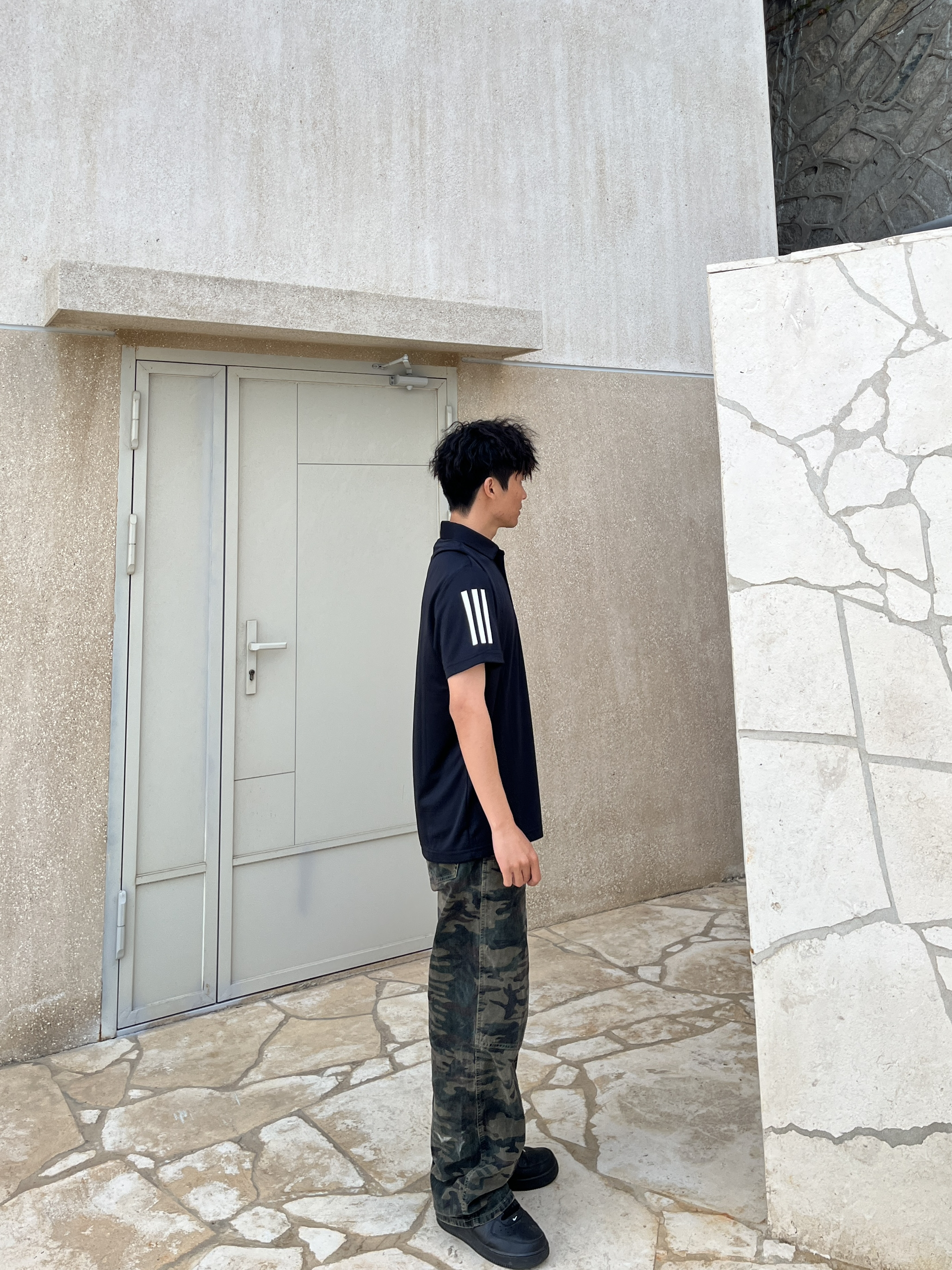 最近有点迷上POLO衫 今天买了阿迪达斯的POLO衫 短袖的然后手臂两侧有三条纹设计 胸前也有经典的阿迪达斯小标志 黑白配色真的很典又好搭配