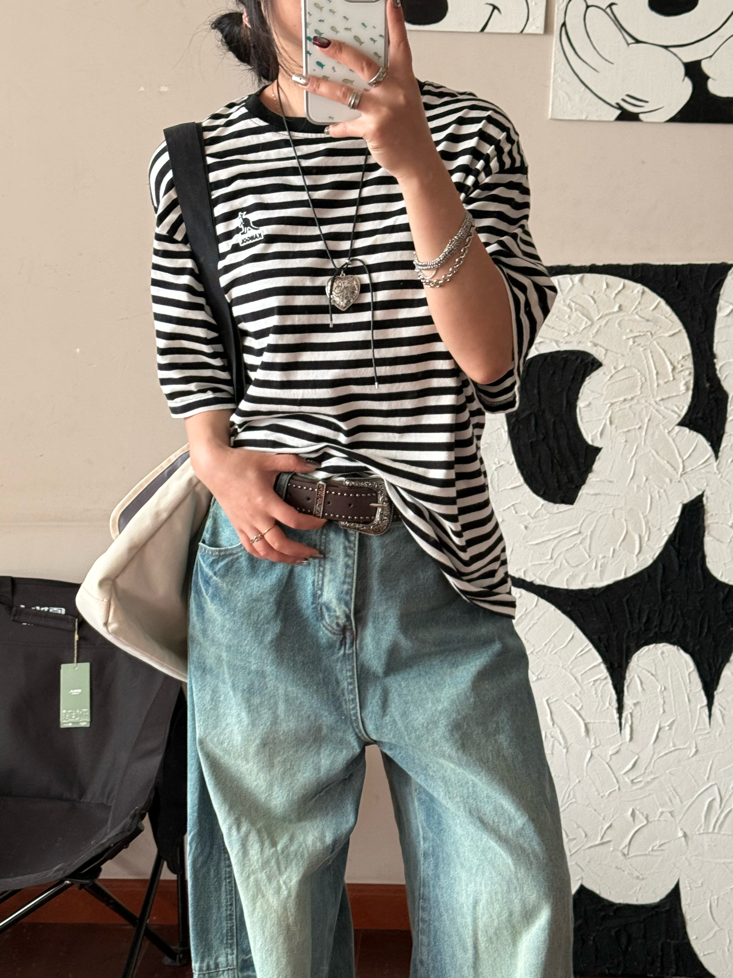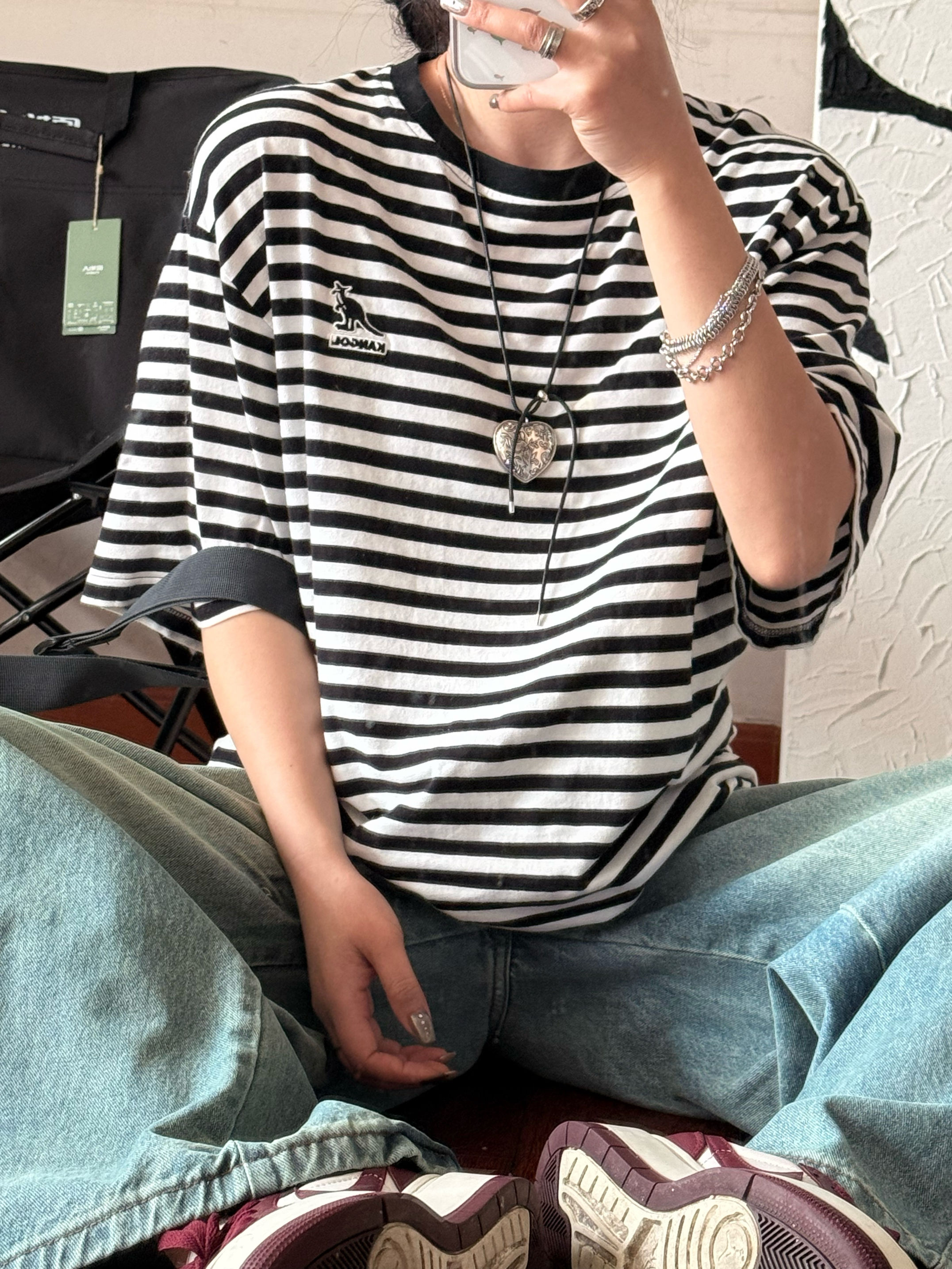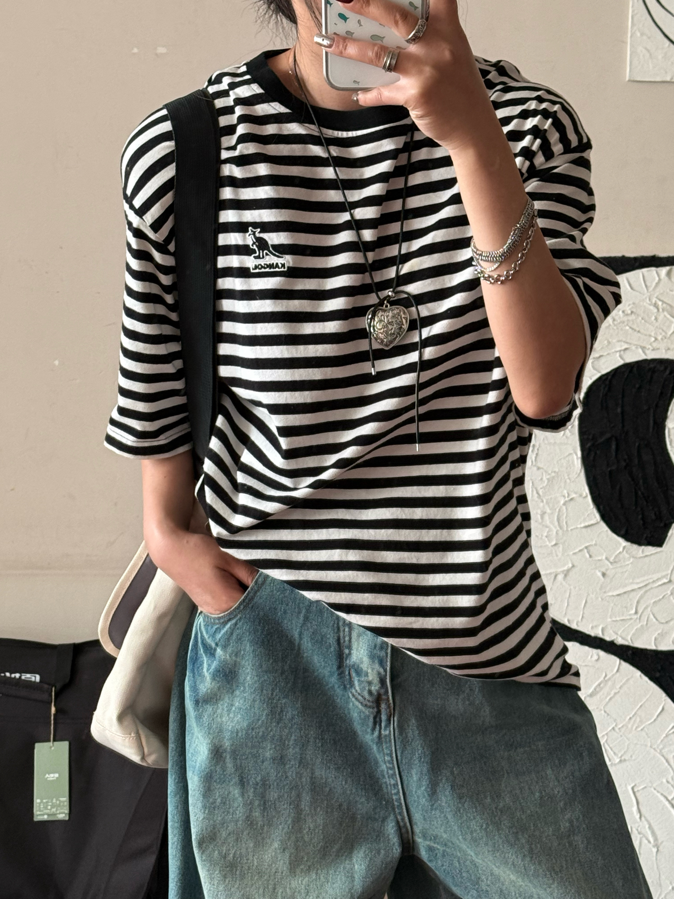 条纹短袖应该是每个衣柜的单品,遮肉显瘦,上班通勤一件搞定。