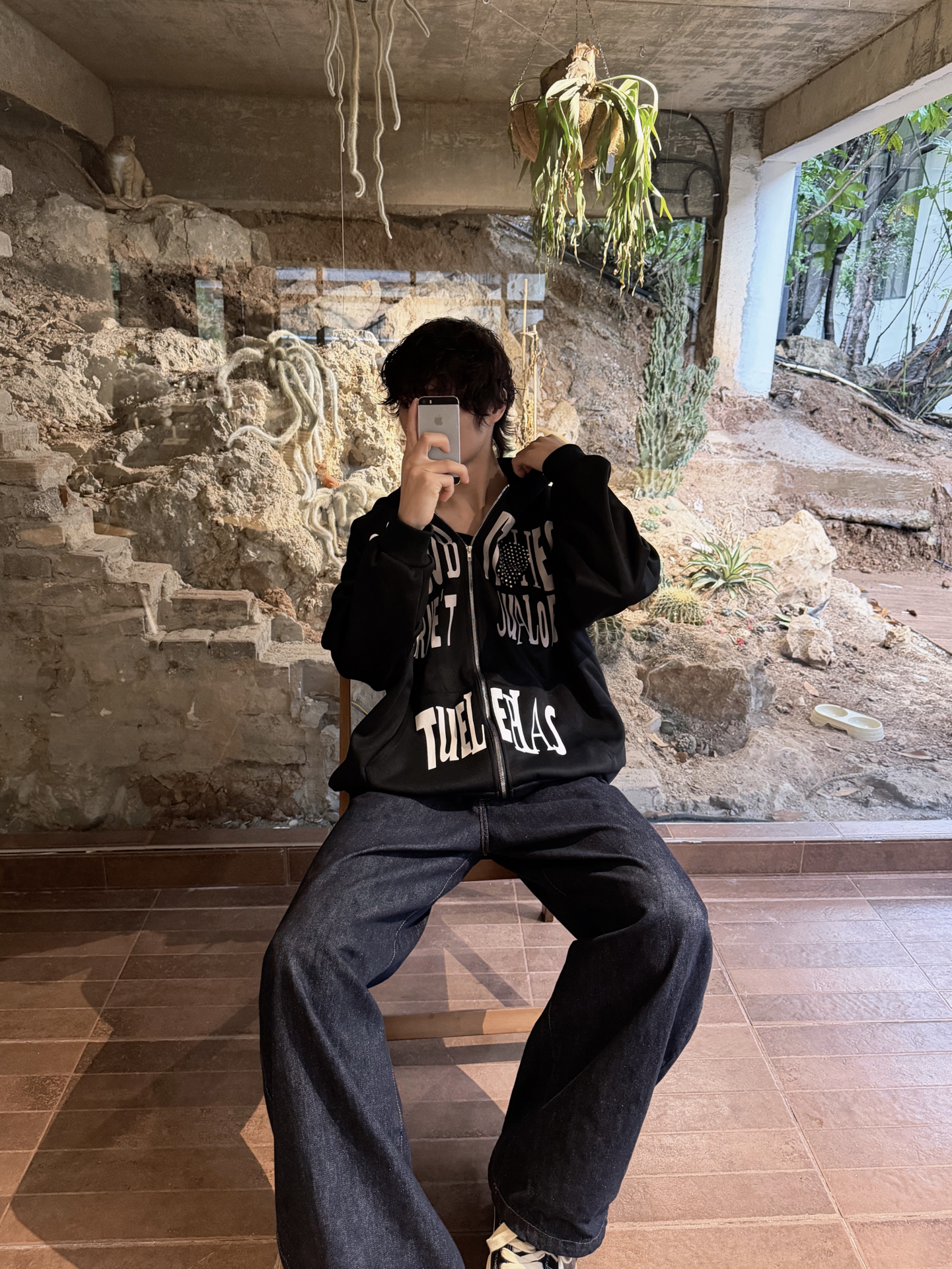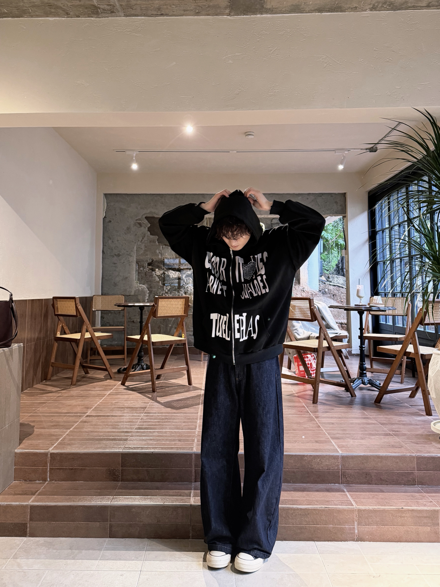 想要酷酷的感觉穿Black就完事了📸 这件格子先生家的开衫卫衣真的太百搭了🖤 美式复古印花,自带街头氛围感 宽松廓形不挑身材,随性又显瘦 搭配原色阔腿牛仔裤,酷飒感满满~ 日常出街/约会都合适,懒人必备 简单干净的穿搭,越看越耐看~
