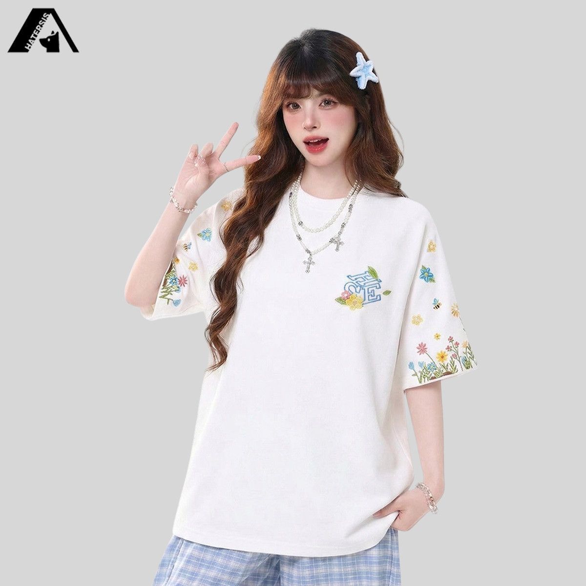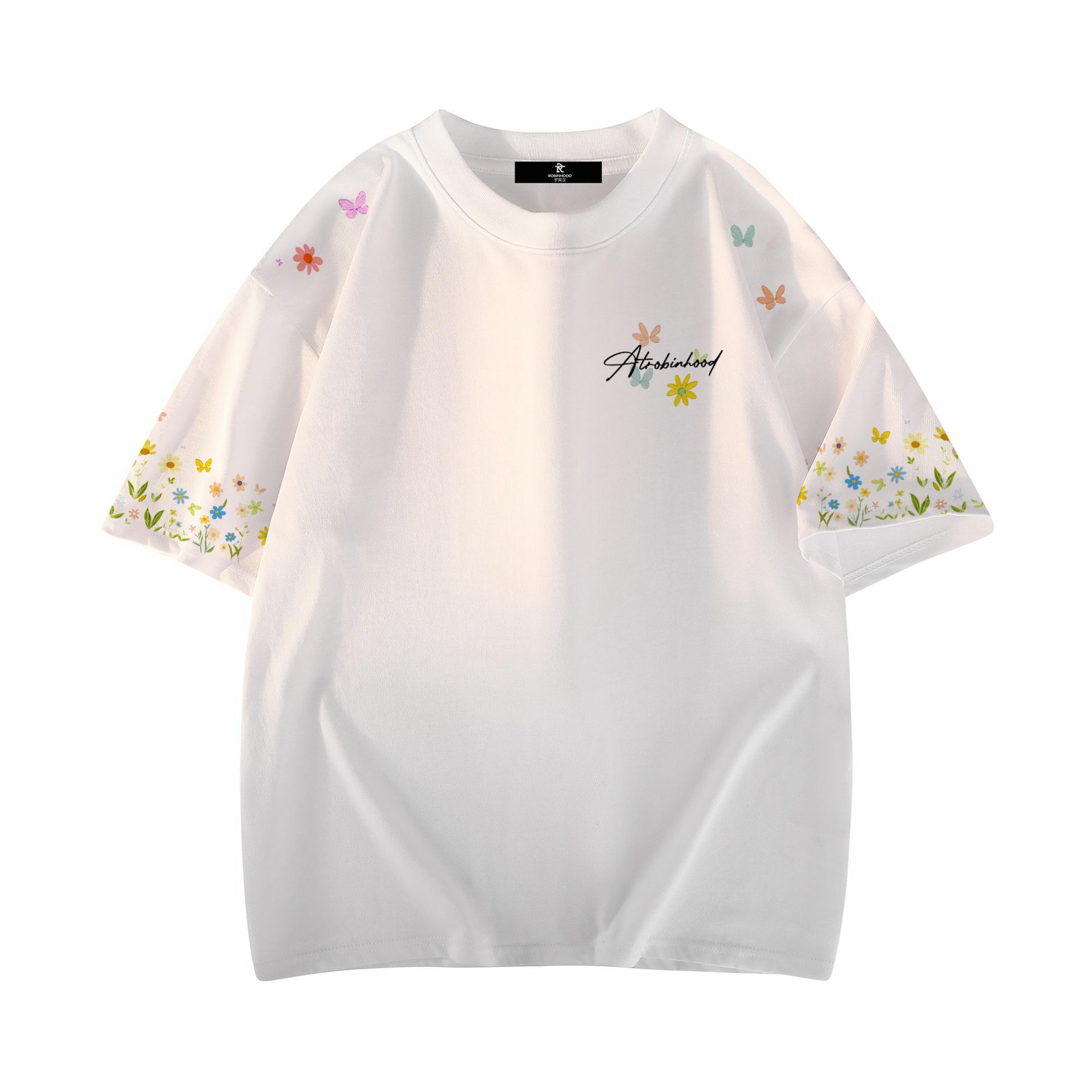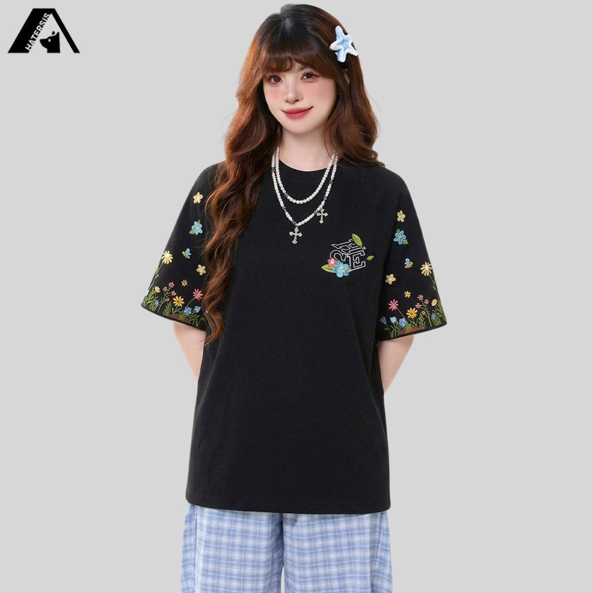 【万针刺绣】美式花卉刺绣短袖t恤男女夏季情侣设计感宽松半袖,透气,夏季必备神衣,你的夏季少不了它,百搭,好看