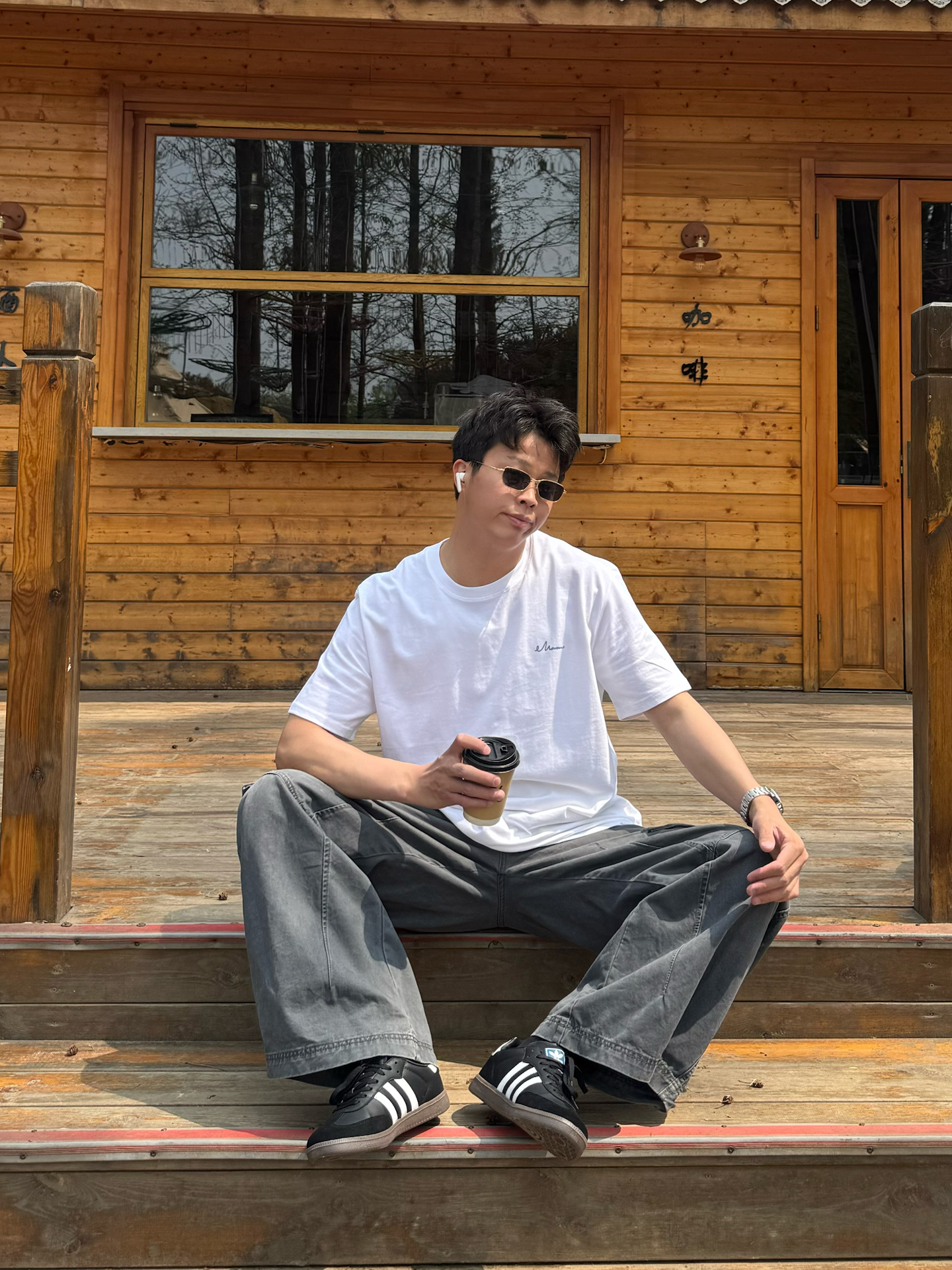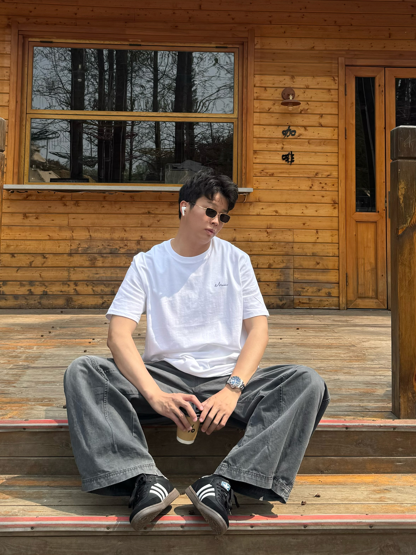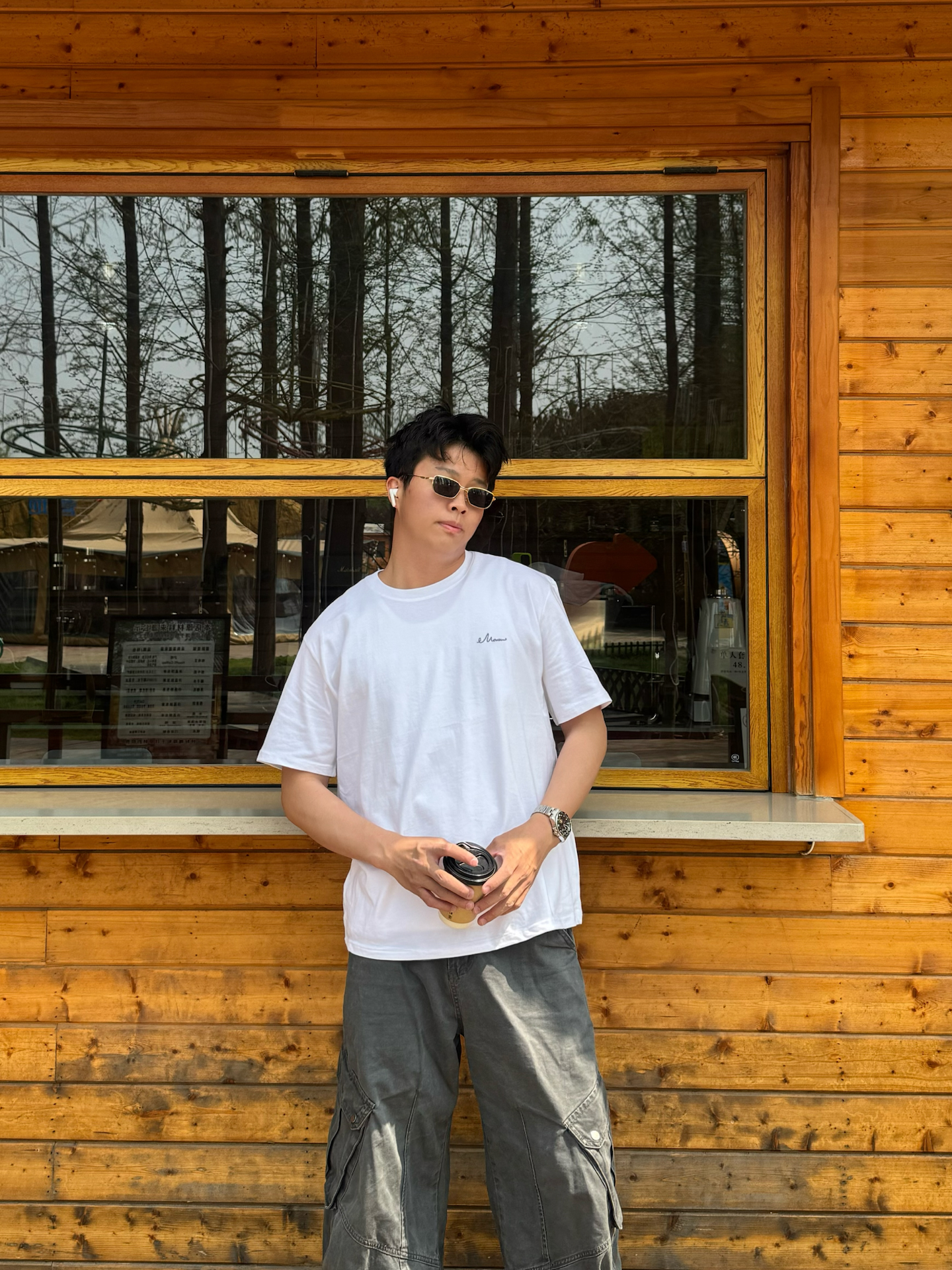 夏天真的就爱穿这种简单不出错的搭配 一件基础款白T版型宽松点藏肉又舒服 随便穿穿都有少年感 搭配这条深灰色工装裤口袋设计挺有质感 裤型宽松不贴腿夏天穿不闷腿 鞋子配了双百搭的运动鞋整体走的是松弛感路线 出门逛逛这套穿搭舒适度和颜值都在线