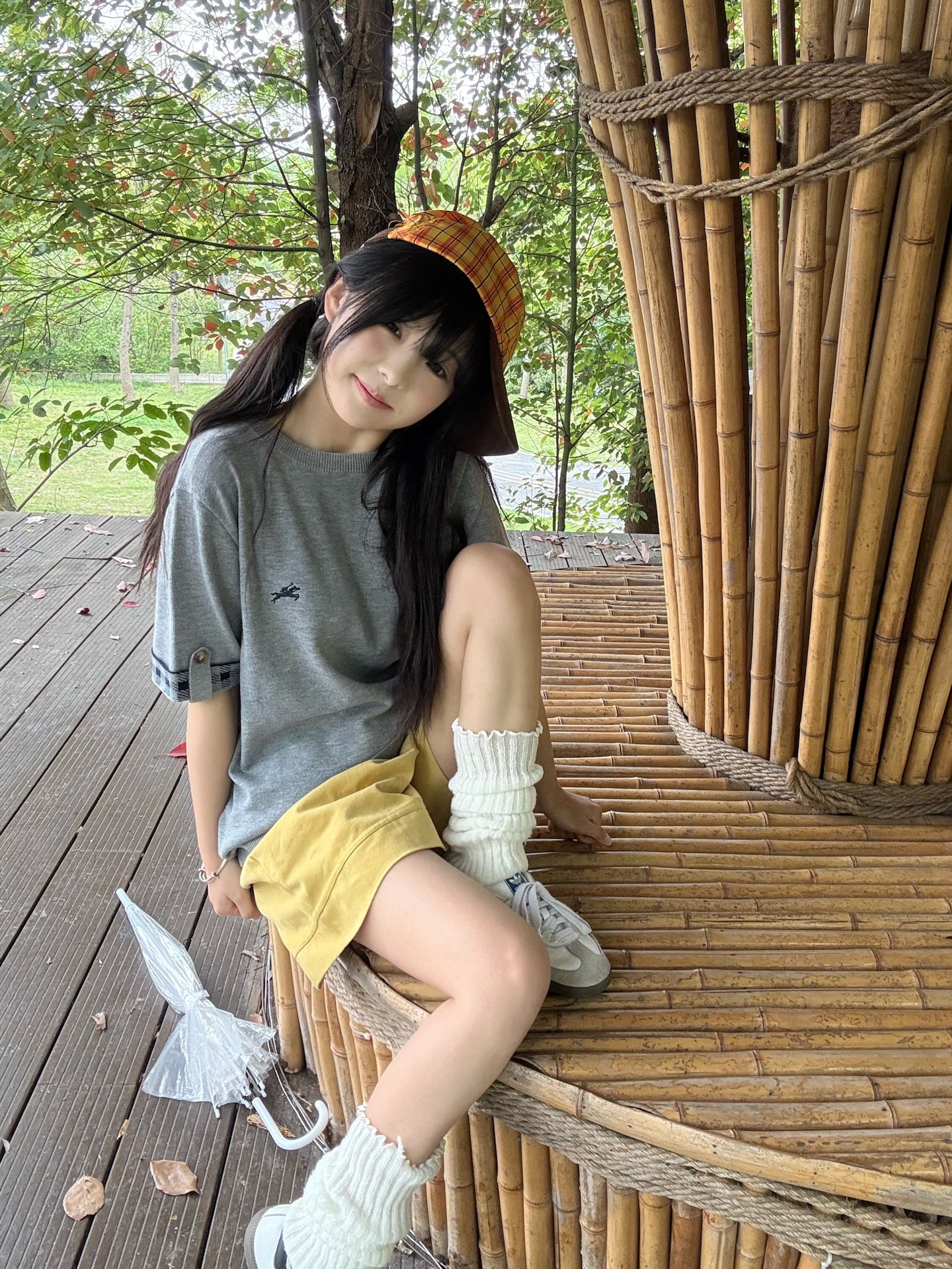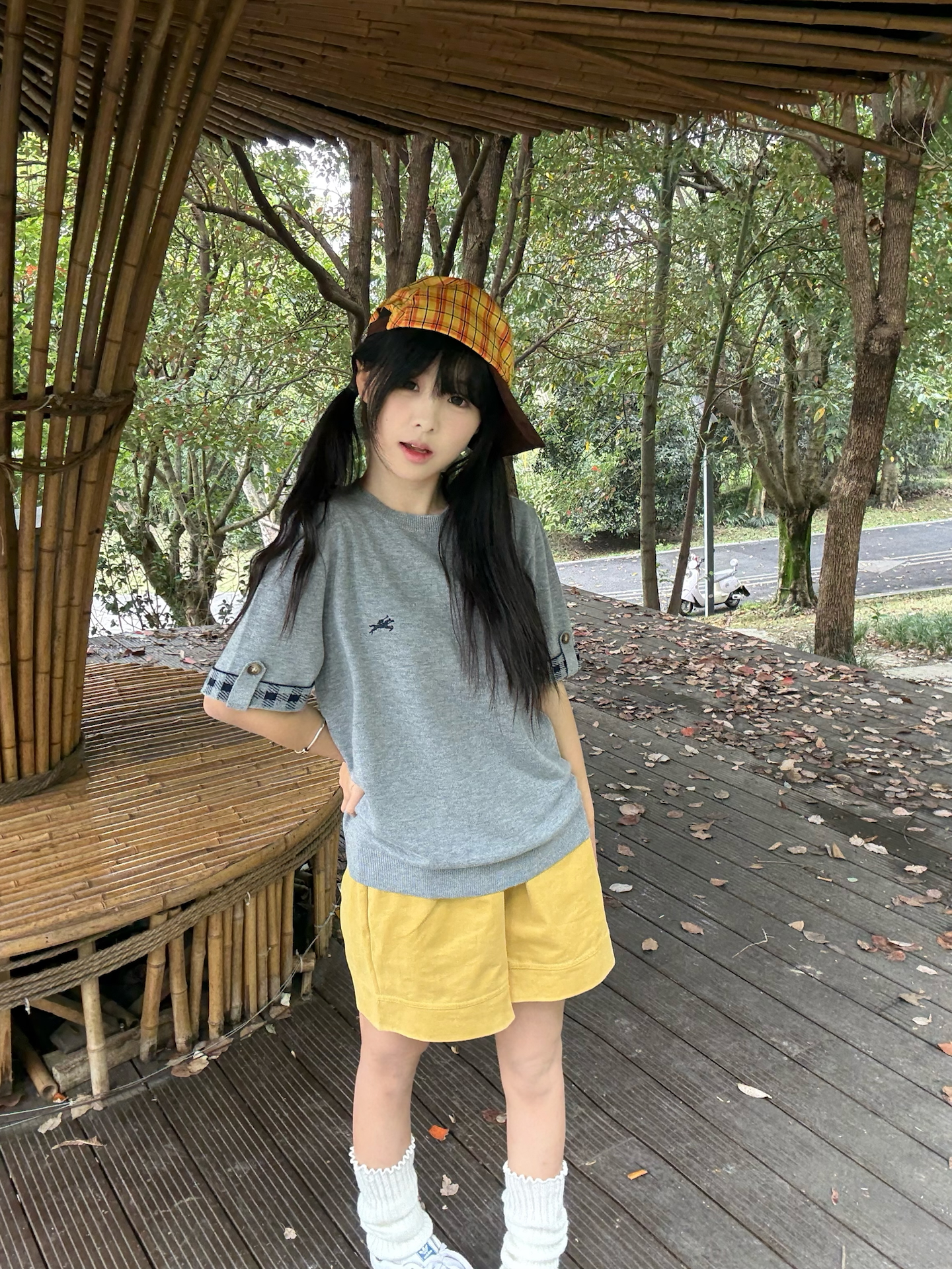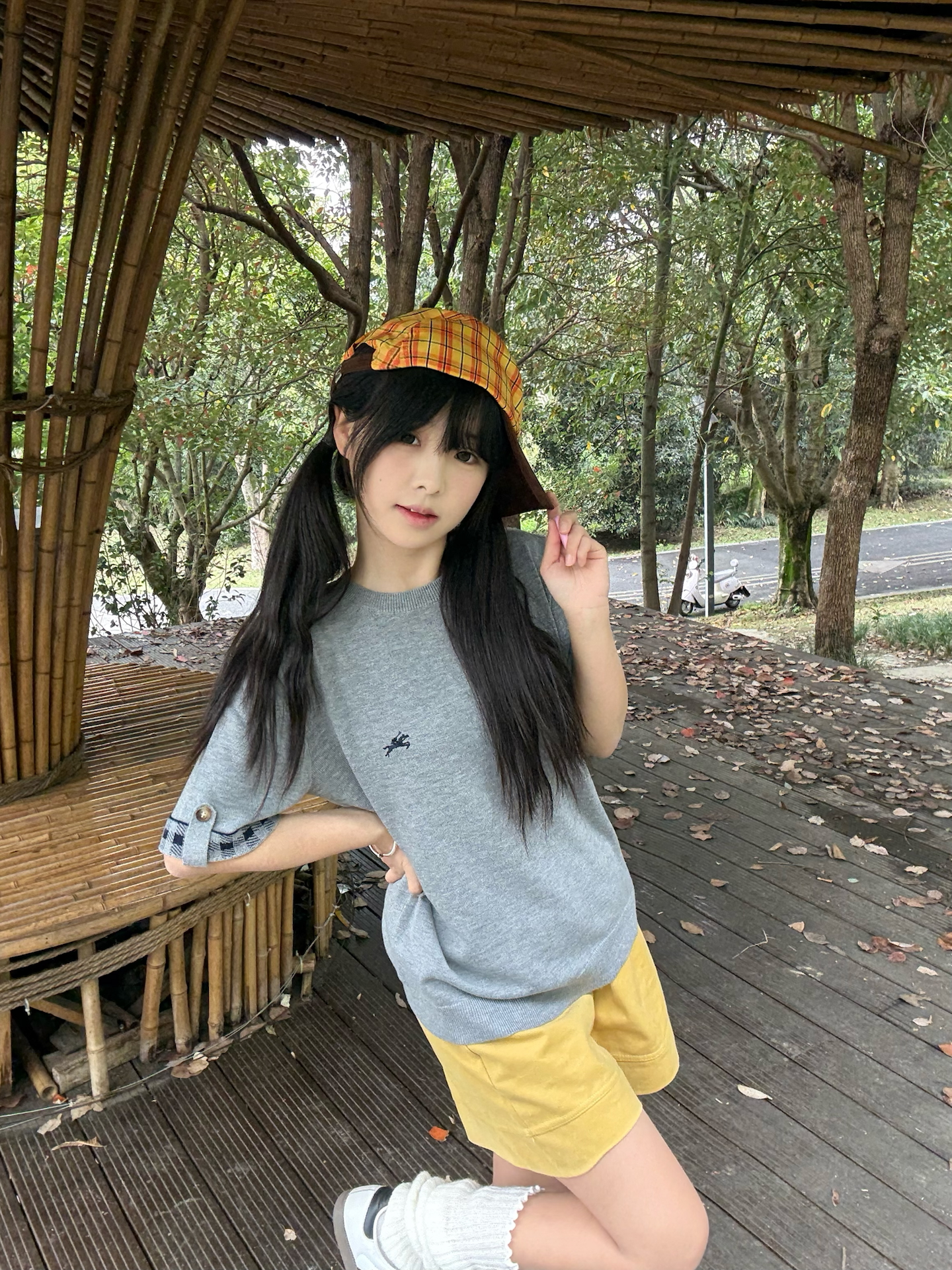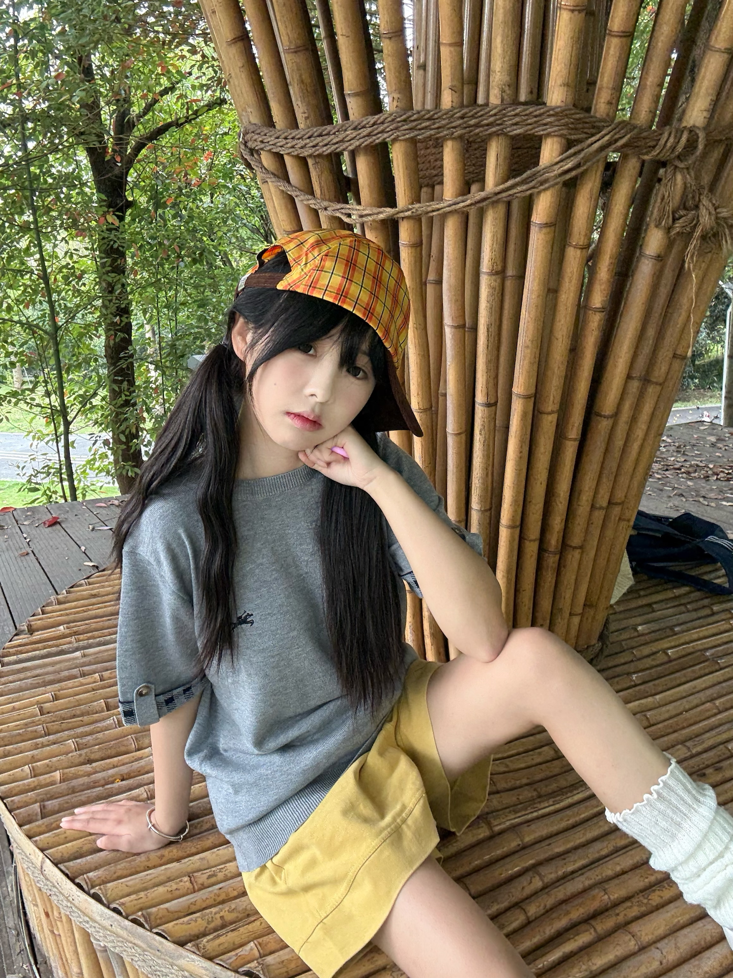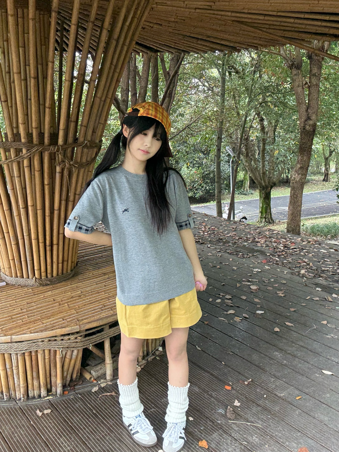 灰色针织短袖太乖了 糯叽叽面料超舒服 贴身穿不扎肉!! 不压个子还显比例~藏肉又显瘦😌 单穿好有少年感 日常出门特别特别特别喜欢!