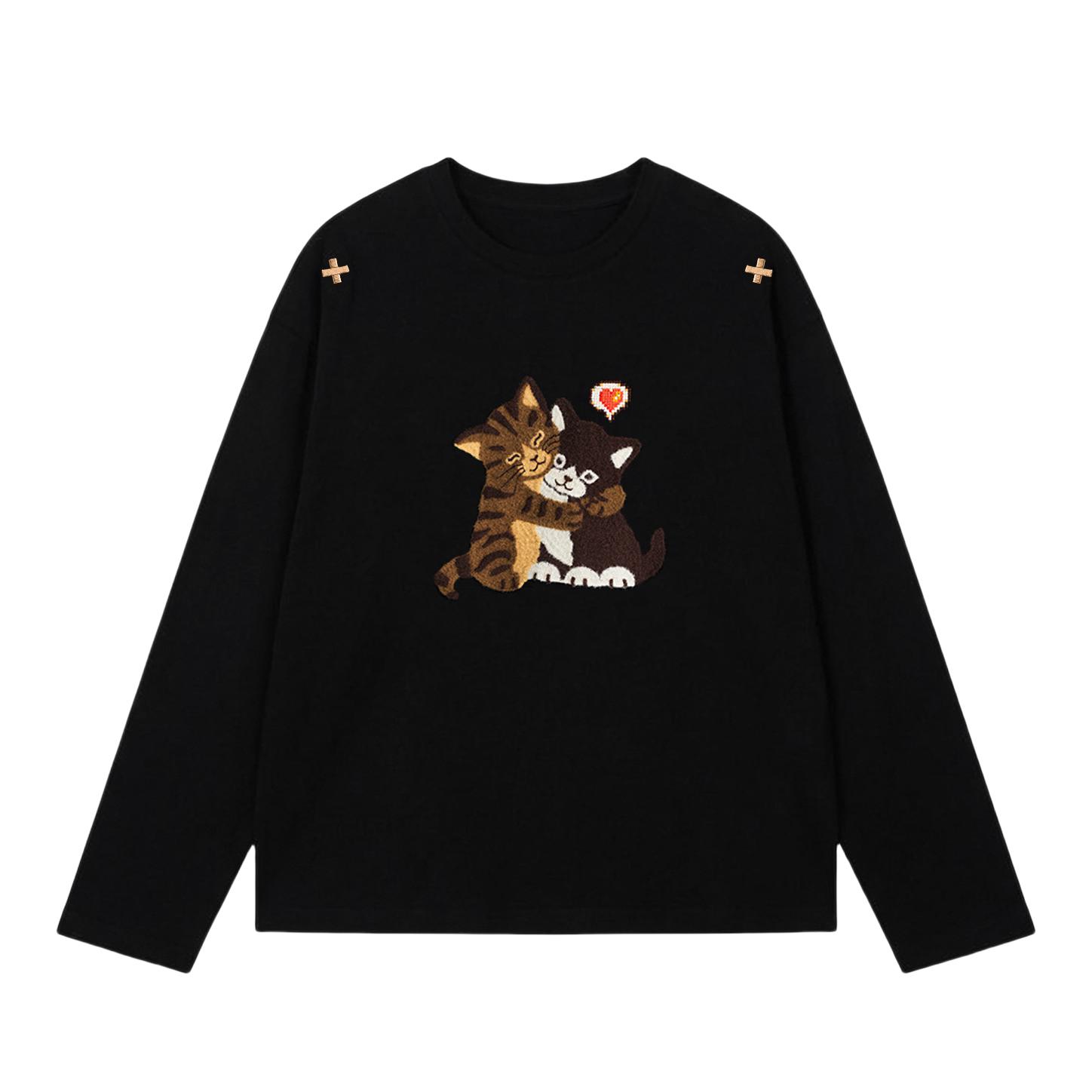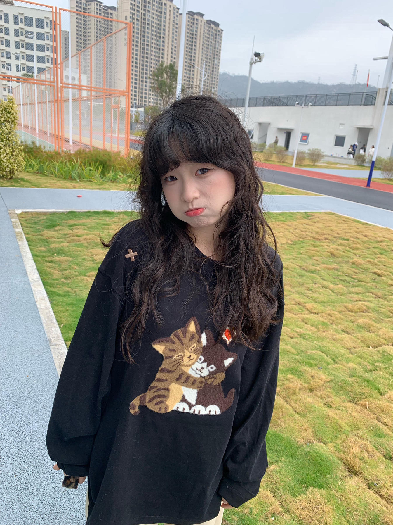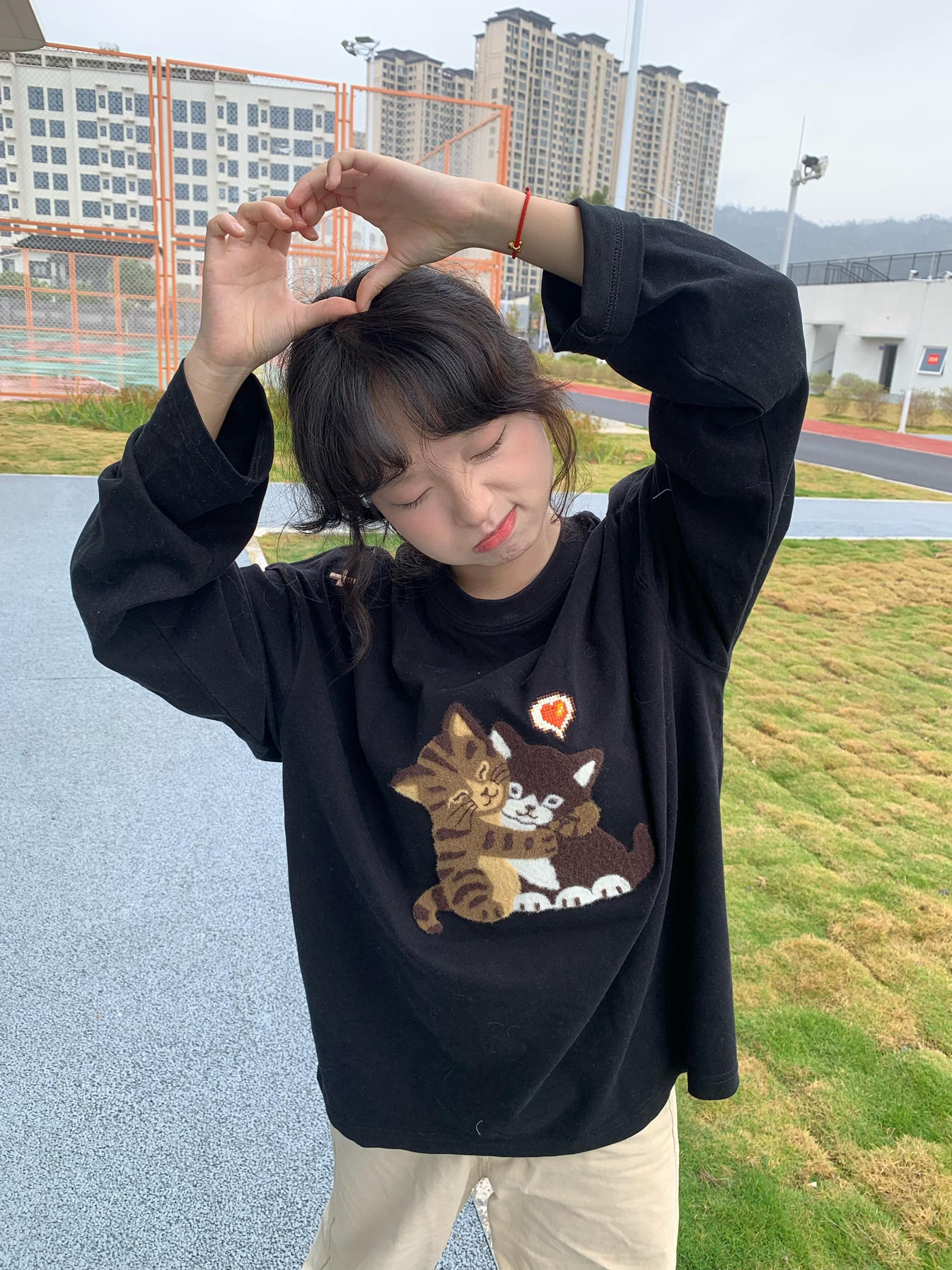 谁懂啊!这件猫咪卫衣真的把我可爱晕了🥹 黑底+两只抱抱小猫的提花图案 软乎乎的也太治愈了吧! 宽松版型对身材超友好 藏肉显瘦一绝 面料软软糯糯的,贴身穿也完全不扎 早秋单穿、冬天内搭都超合适 随便搭条休闲裤就很有松弛感,甜妹感直接拉满✨