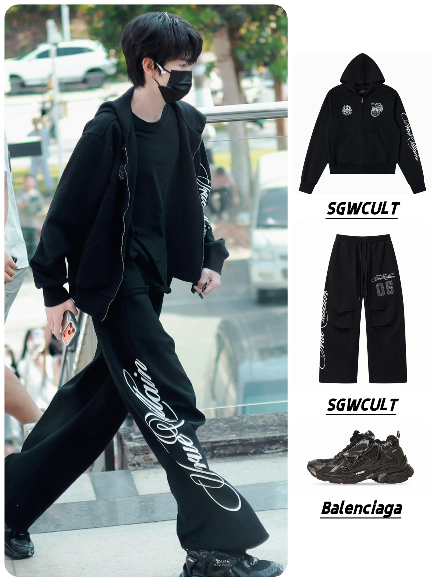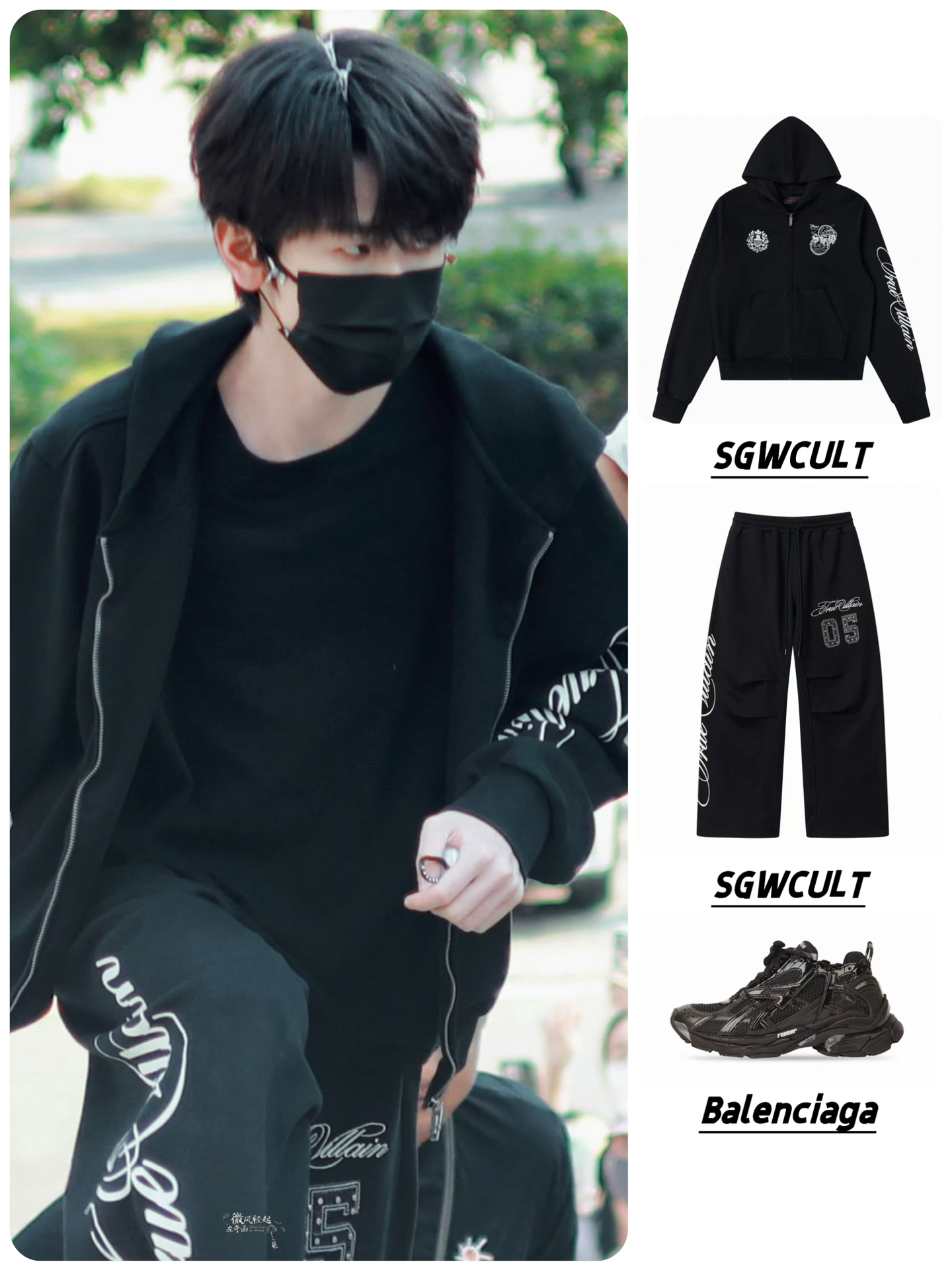 👔👖SGWCULT「True Villain」重工铆钉贴皮刺绣印花卫衣外套长裤套装 👟Balenciaga巴黎世家 Runner 合成革 尼龙 网眼材质 低帮 运动休闲鞋