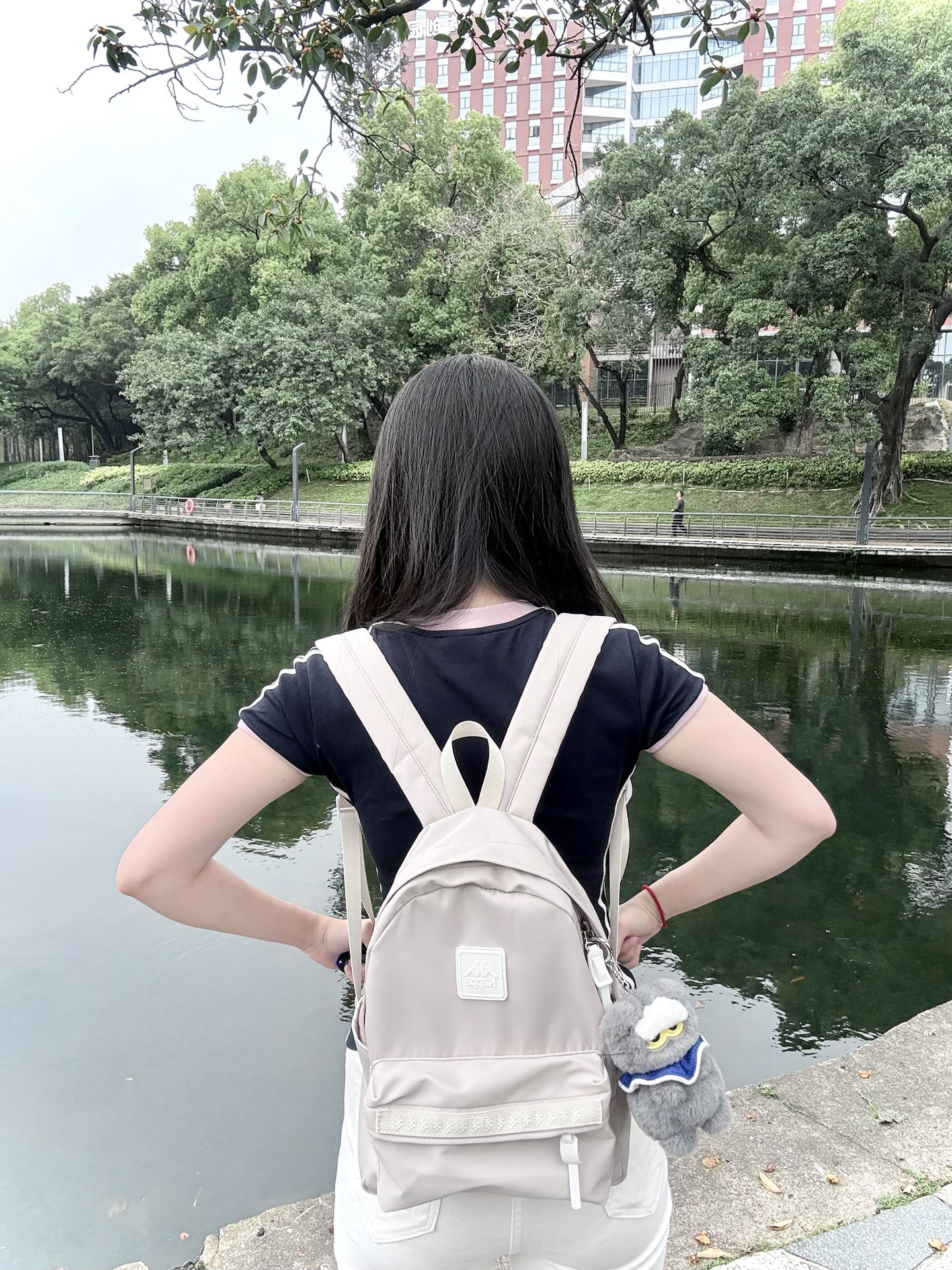 好喜欢来公园走走~ 真的松弛感满满 再背上 双肩包🎒 新出的浅石头色和zoa包挂特别搭! 低饱和度很适合春夏 有点文艺范哈哈 容量也蛮大的 而且背着也不会累 平时上学or上班背都很不错~