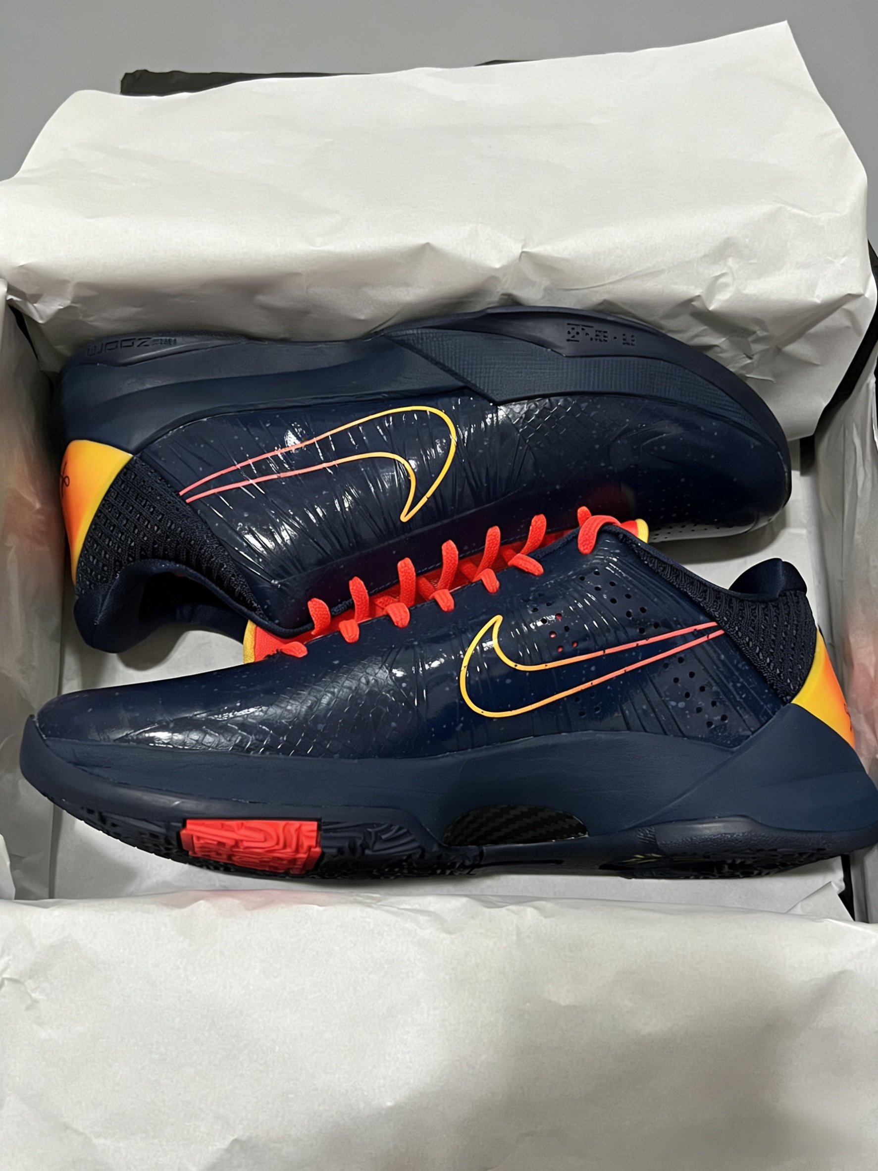 沉浸式开箱这双Caitlin Clark x Nike Zoom Kobe 5 Protro! ✅ 设计亮点: • 鞋身主体印第安纳狂热队藏蓝色,呼应克拉克主队,辨识度拉满 • 橙红渐变Swoosh+亮橙鞋带,撞色设计颜值炸裂 • 后跟橙黄渐变+科比手写签名,情怀拉满 • 鞋舌黑曼巴Logo+碳板中底,经典ZK5配置拉满 ✅ 上脚体验: 低帮设计不卡脚踝,前掌Zoom气垫回弹迅猛,适合突...