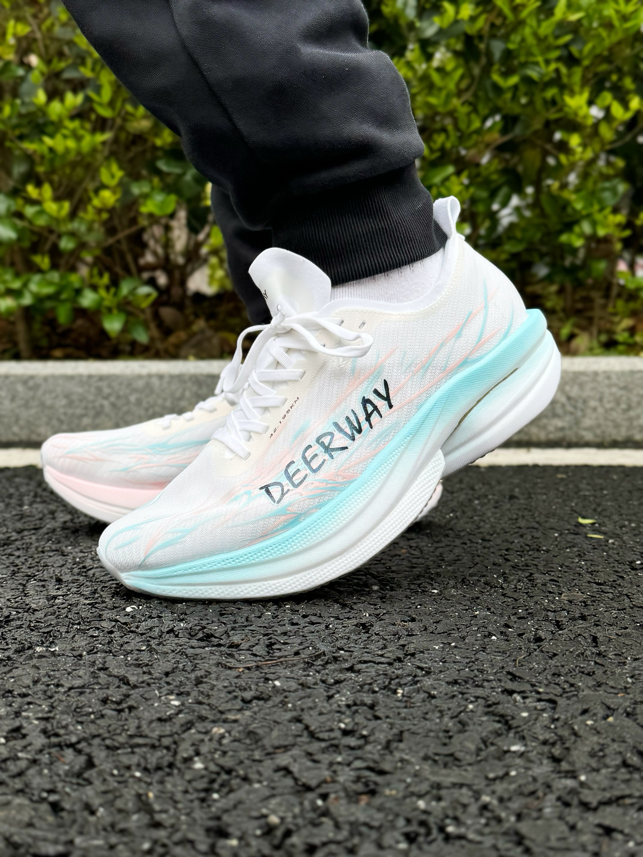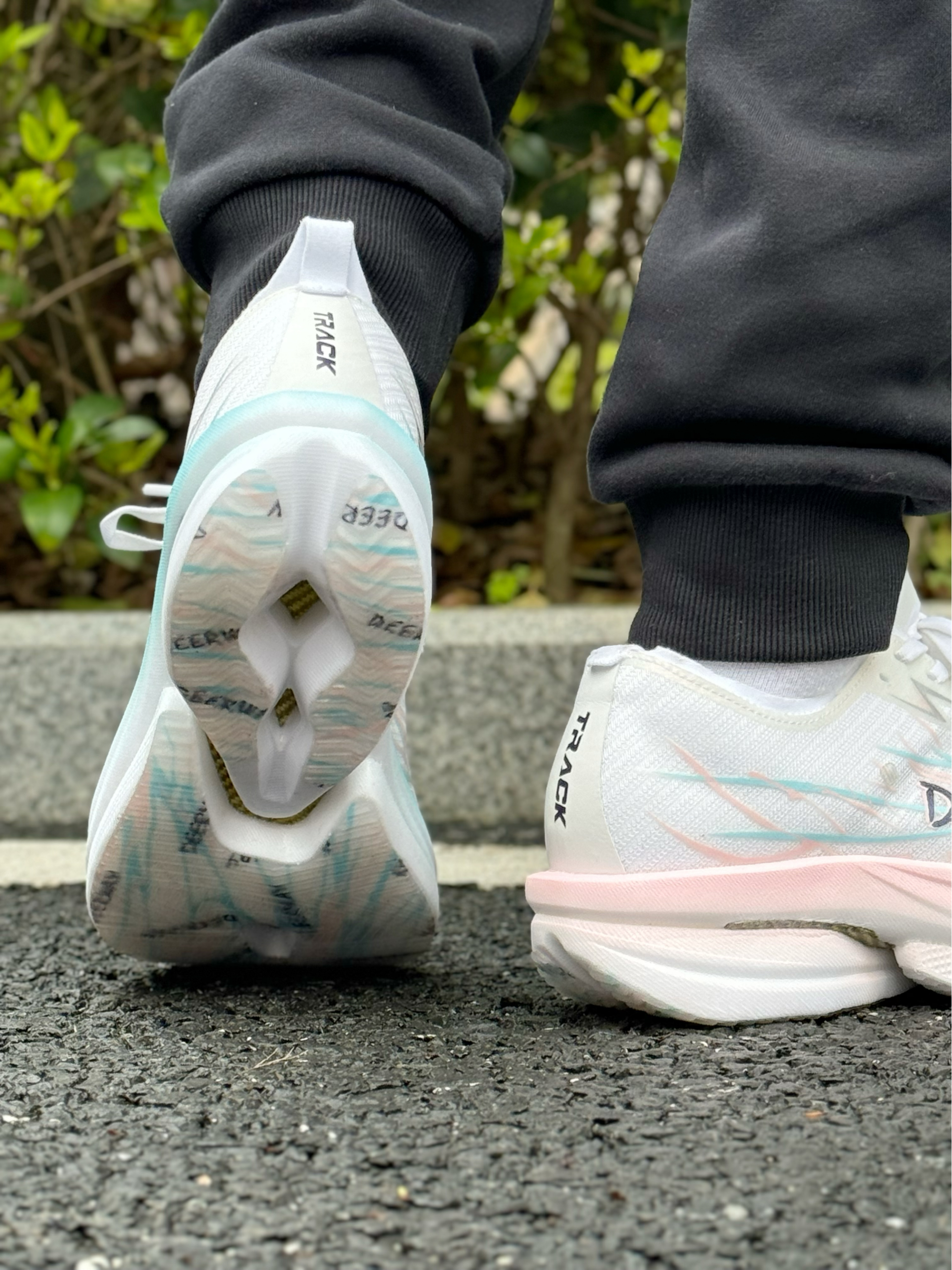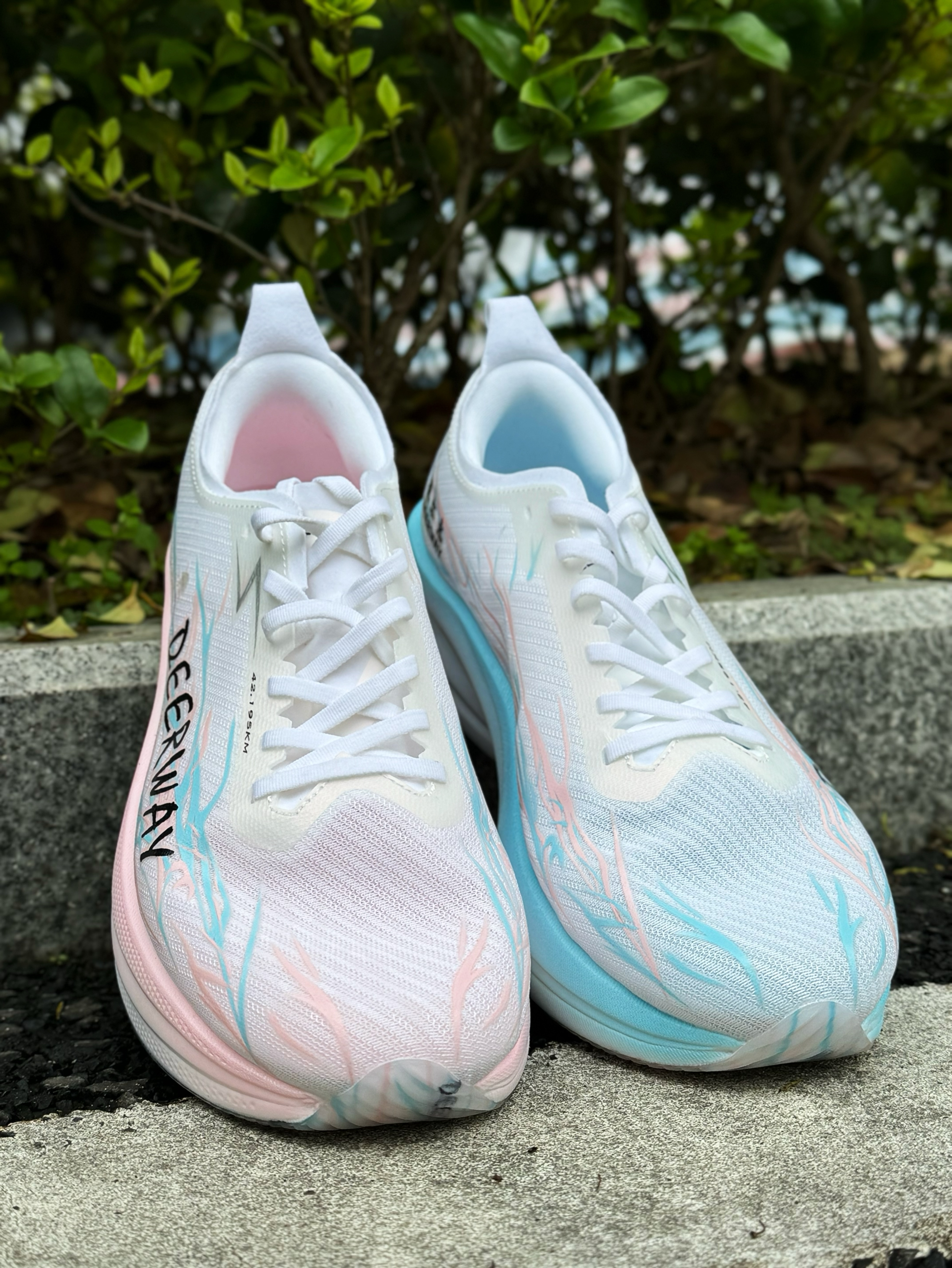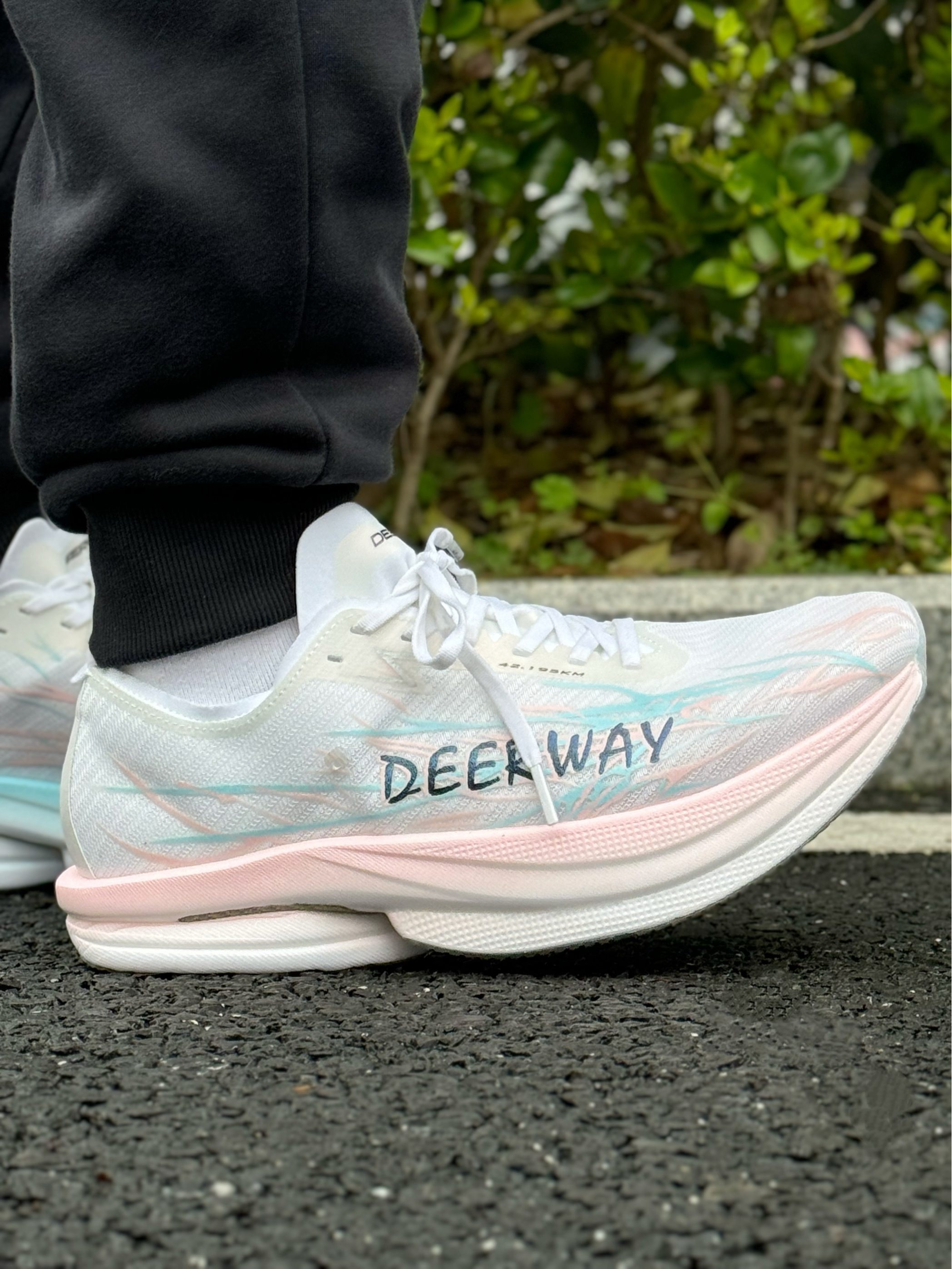 halo 阿迪来了,本期的跑鞋分享带来的是“老朋友”德尔惠🏠的这双闪电4X4全掌黄金碳板跑鞋! 这次我选择了一双“蓝粉鸳鸯”的配色!整双鞋采用涤纶鱼丝加金边绒拉毛布搭配上同色鞋带!颜值还是挺高的! 中底,全掌黄金碳纤维板+EVA超临界材料!让起跑时推进力十足! CPU果冻大底!耐磨防滑性都在线!湿地止滑系数高! 日常应对中长跑训练体考体测也是没有问题! 以我上脚这双41码为例,单只重量240g 最...