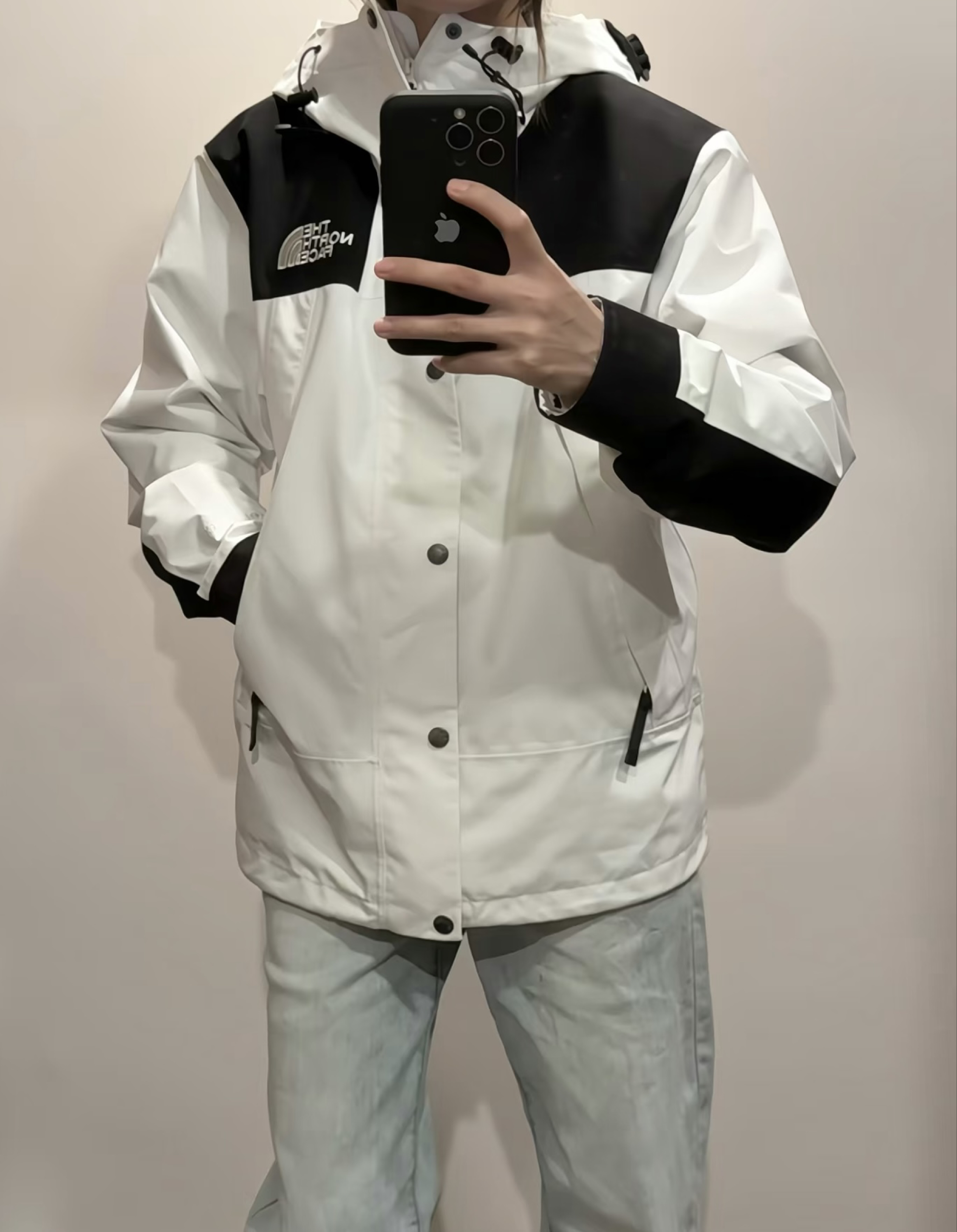 最近入手了北面这款MARTIS系列冲锋衣 实物真的比图片还耐看🏆经典黑白撞色设计 不管搭牛仔裤还是休闲裤都巨和谐☘️完全不挑穿搭风格~是我最近穿的最多的一件了🧥 ✅面料是正经的防水防风材质 遇到突然下的小雨完全不用慌🎧水珠直接在表面滑落 透气性也不错 日常通勤或者去近郊徒步 都不会觉得闷得慌📷连帽设计还能调节松紧 刮风天也能护住脑袋 细节做工也很在线 刺绣logo很精致 袖口和下摆的抽绳设计能自...