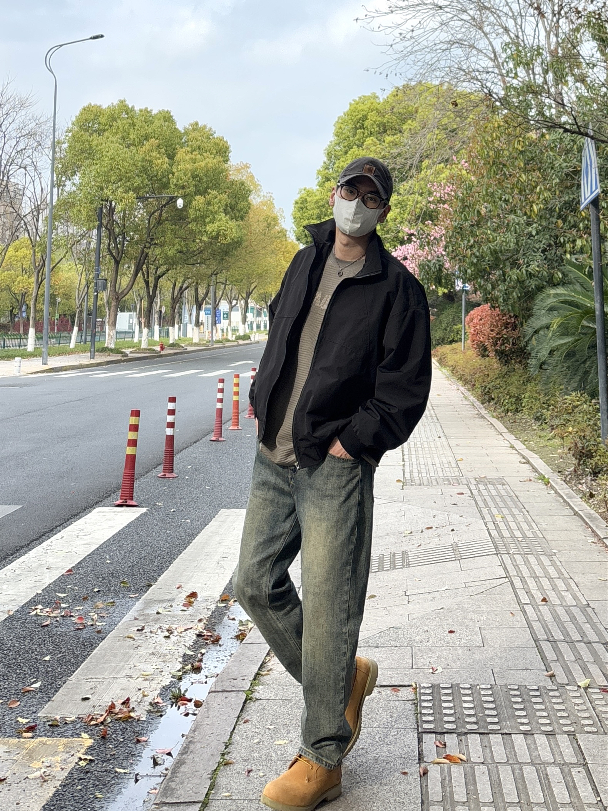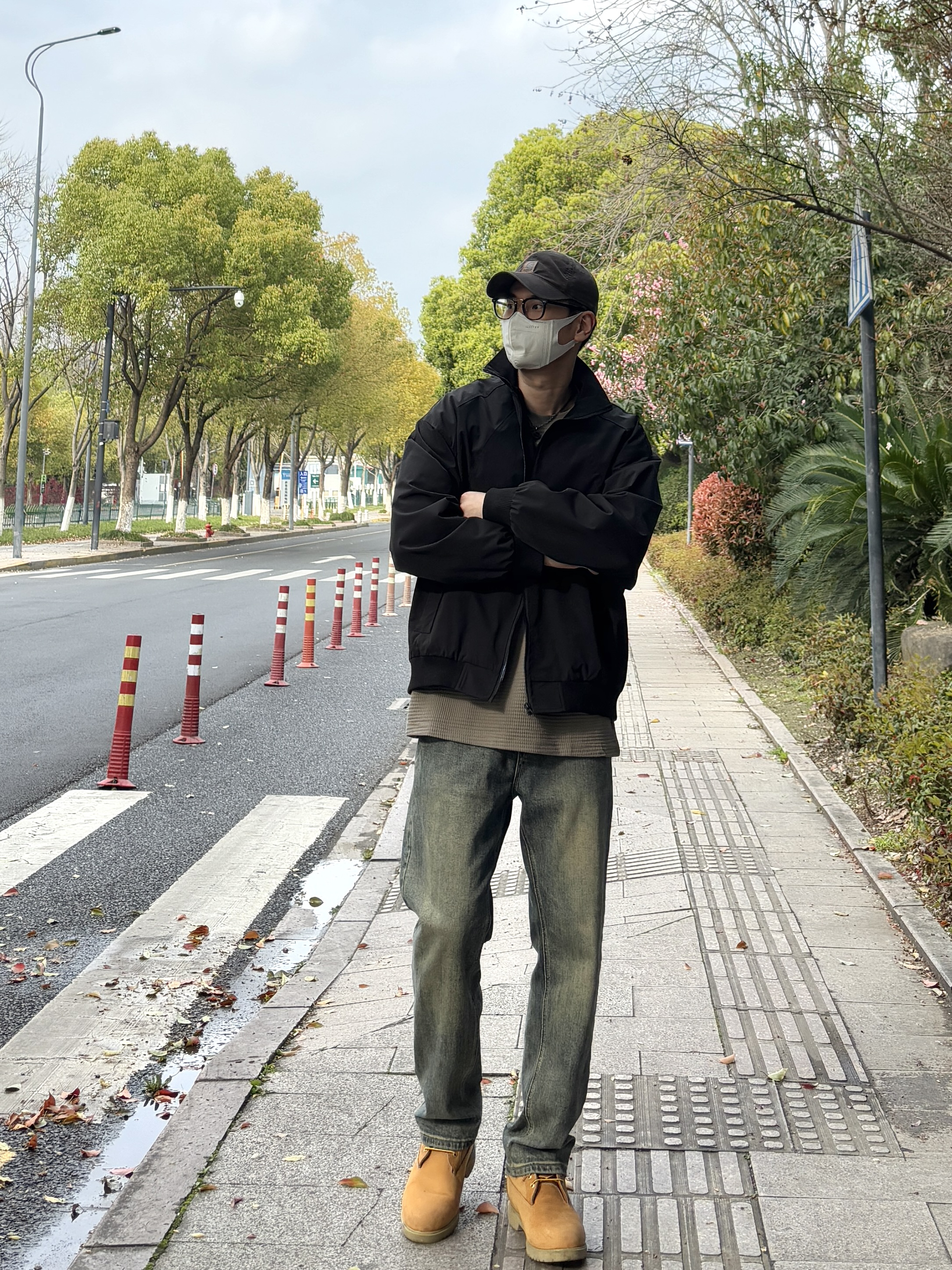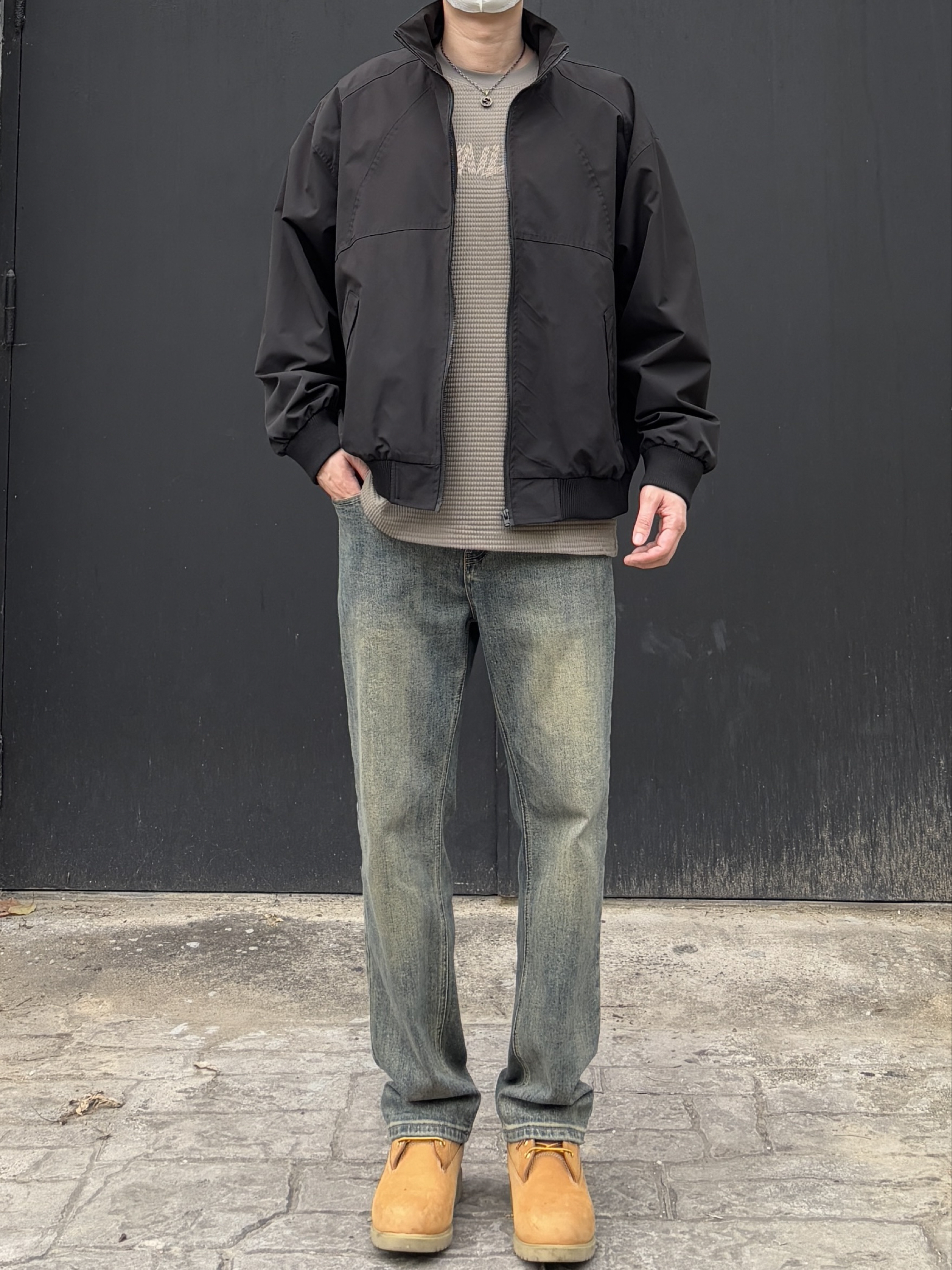 日常出门最省心的搭配,莫过于一身利落工装风🤩 外套黑色宽松廓形立领工装夹克自带气场,版型挺括不挑身材,随性一穿就很有腔调😎 内搭卡其绿圆领字母刺绣华夫格长袖,细腻纹理提升质感,温柔色调中和黑色的酷感 下装搭配蓝色直筒水洗牛仔裤,经典版型修饰腿型,休闲又耐看 脚上踩一双沙漠黄复古中帮工装靴,提亮整体造型,硬朗与休闲平衡得恰到好处,平时出街简约又有型🙋♂️ - 今日搭配 衣服裤子:NICE L...