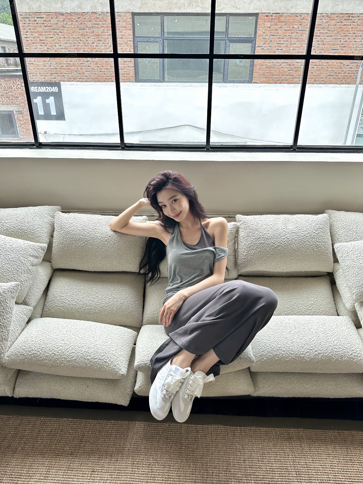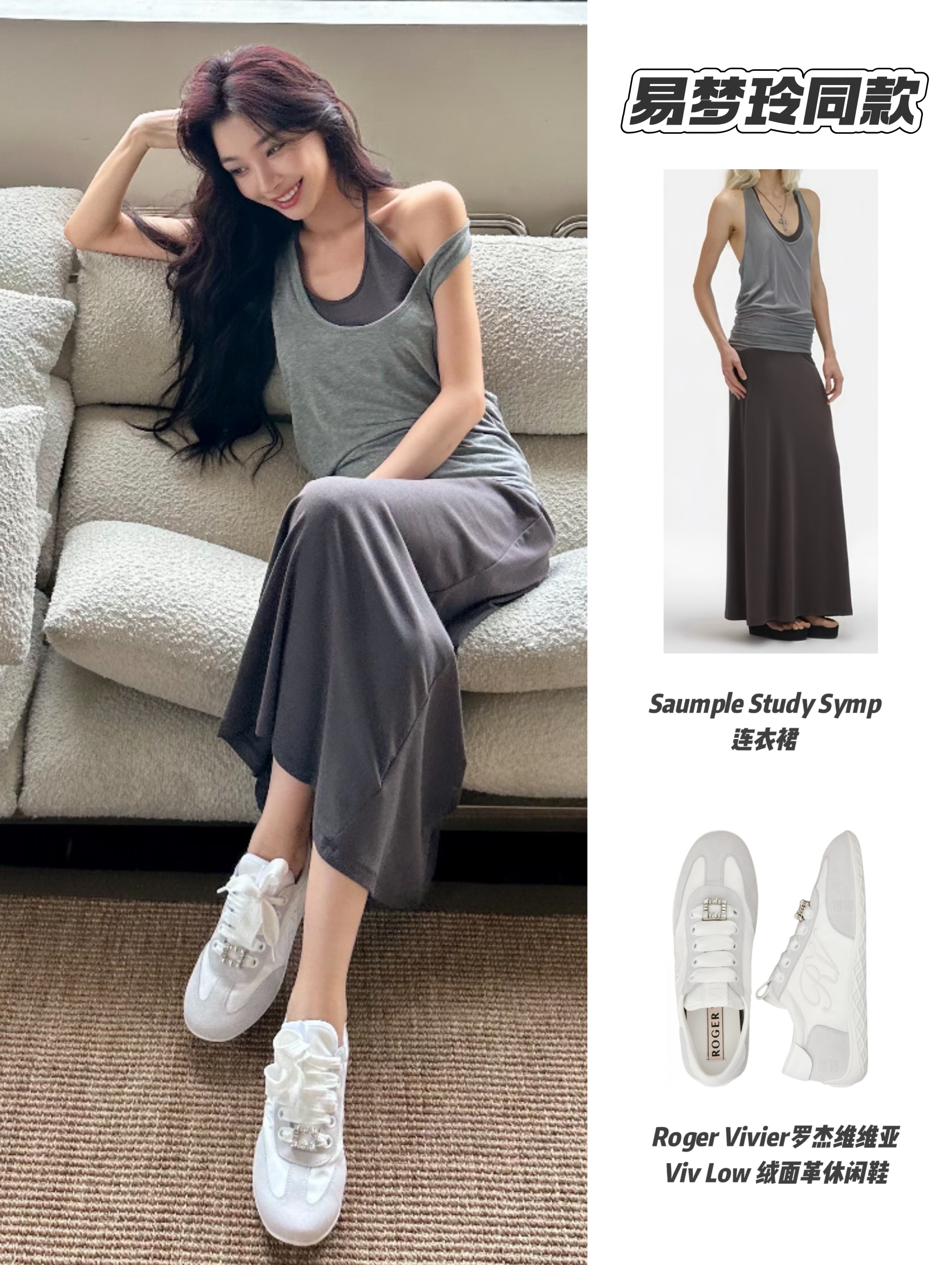 易梦玲这套松弛感穿搭太绝了! 灰调假两件挂脖上衣+同色系阔腿裤,慵懒又显身材,重点是这双Roger Vivier德训鞋直接点睛!奶白拼绒面质感拉满,钻扣设计精致又不浮夸,上脚显脚小,休闲感里藏着贵气,日常通勤、出街都适配,把松弛感和精致感平衡得刚刚好✨